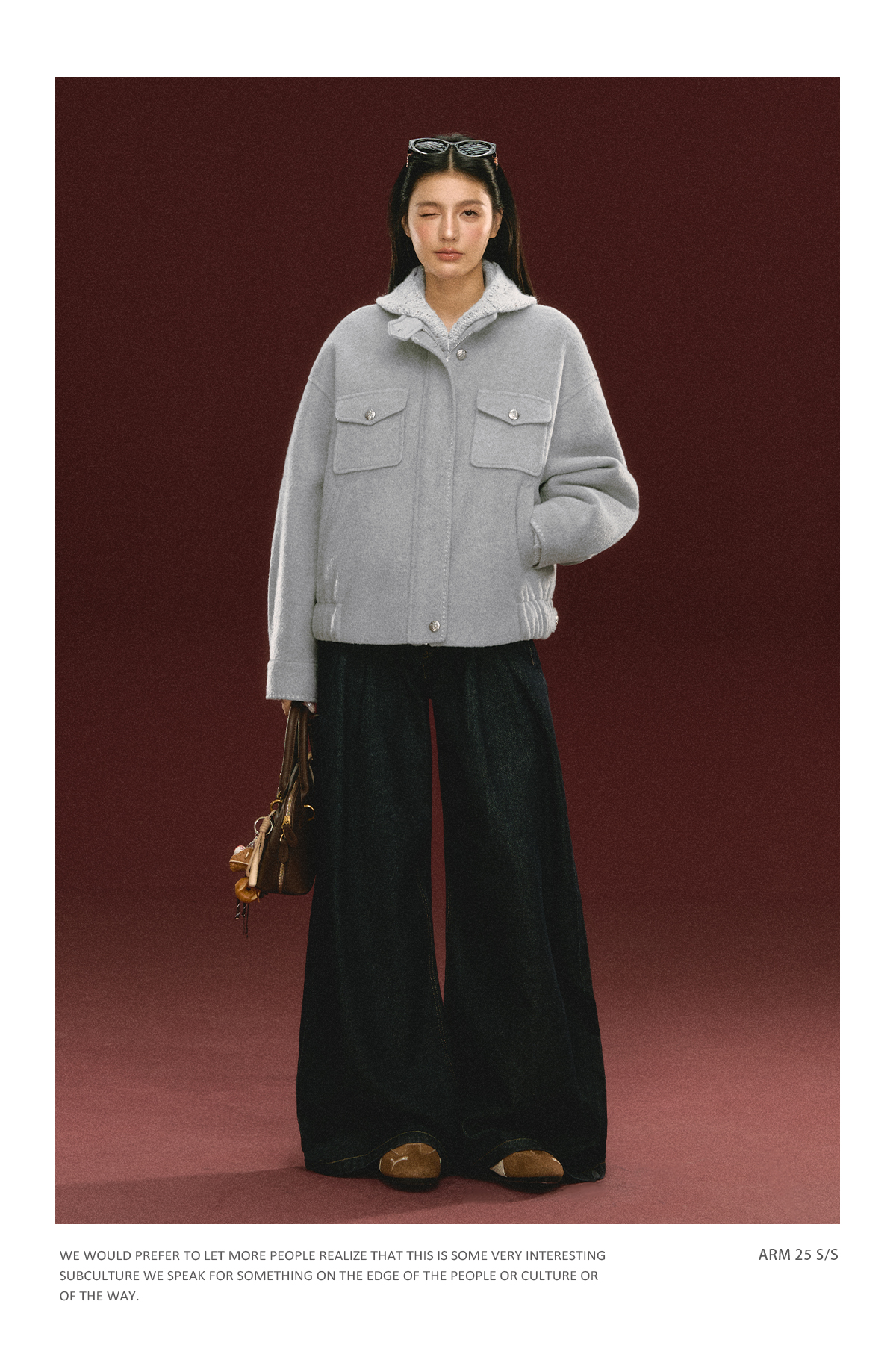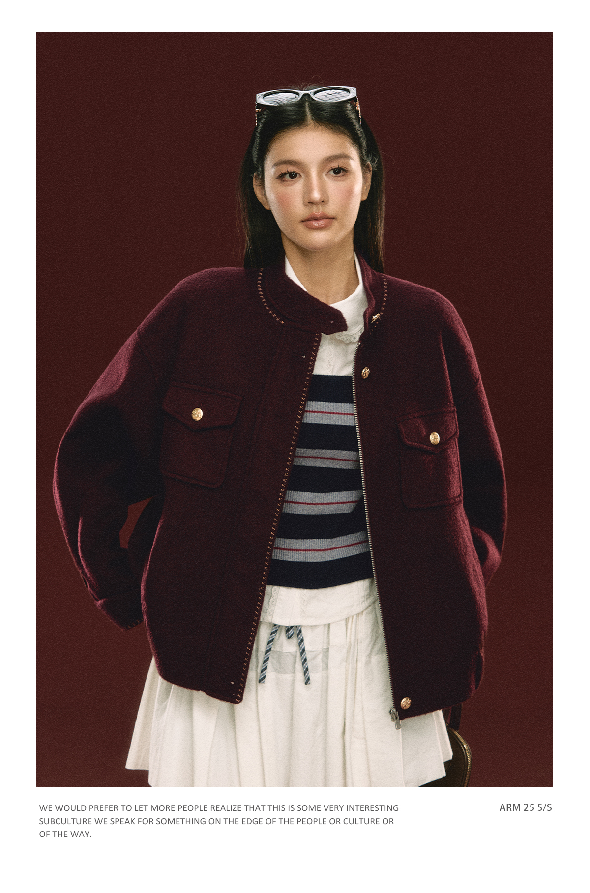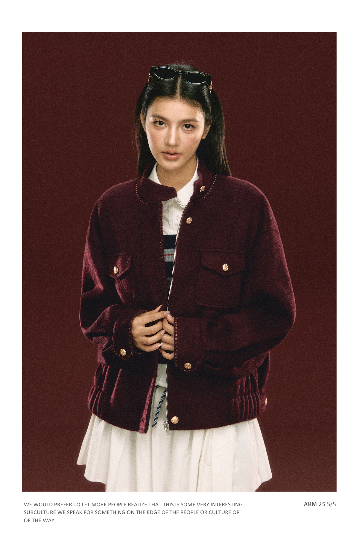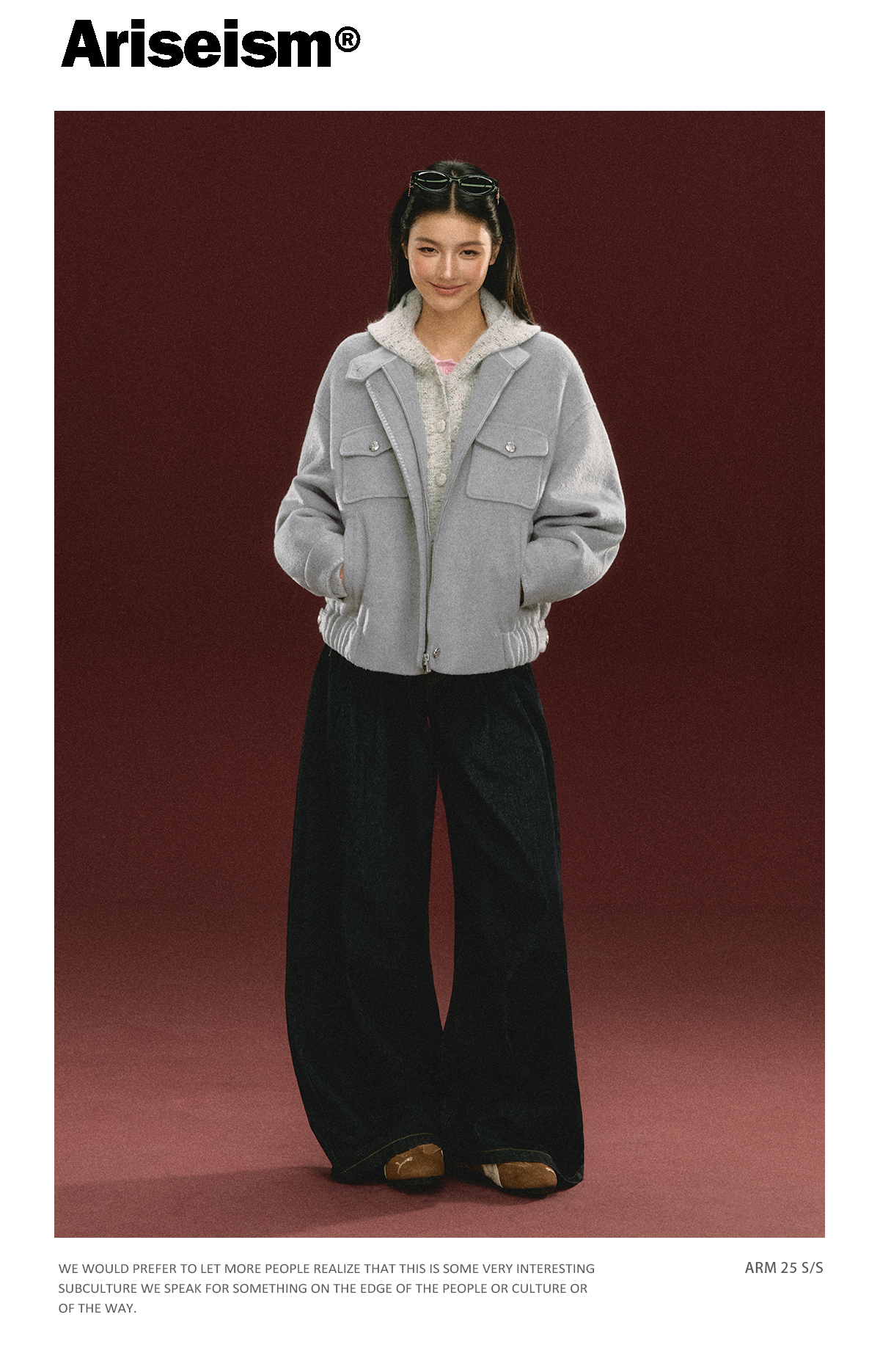 Ariseism 美式复古立领外套女秋冬新款保暖上衣