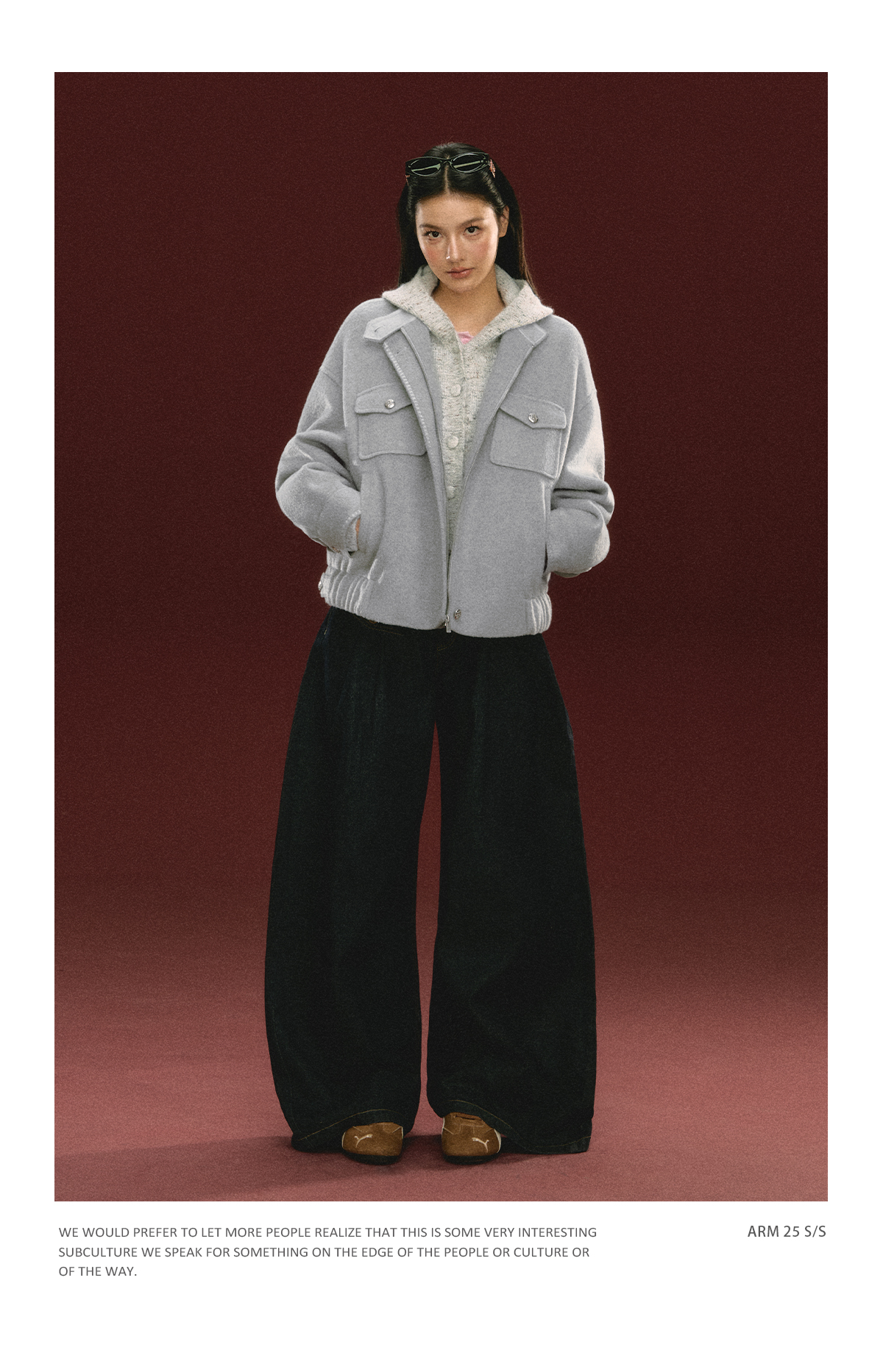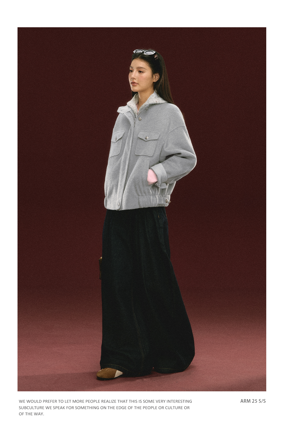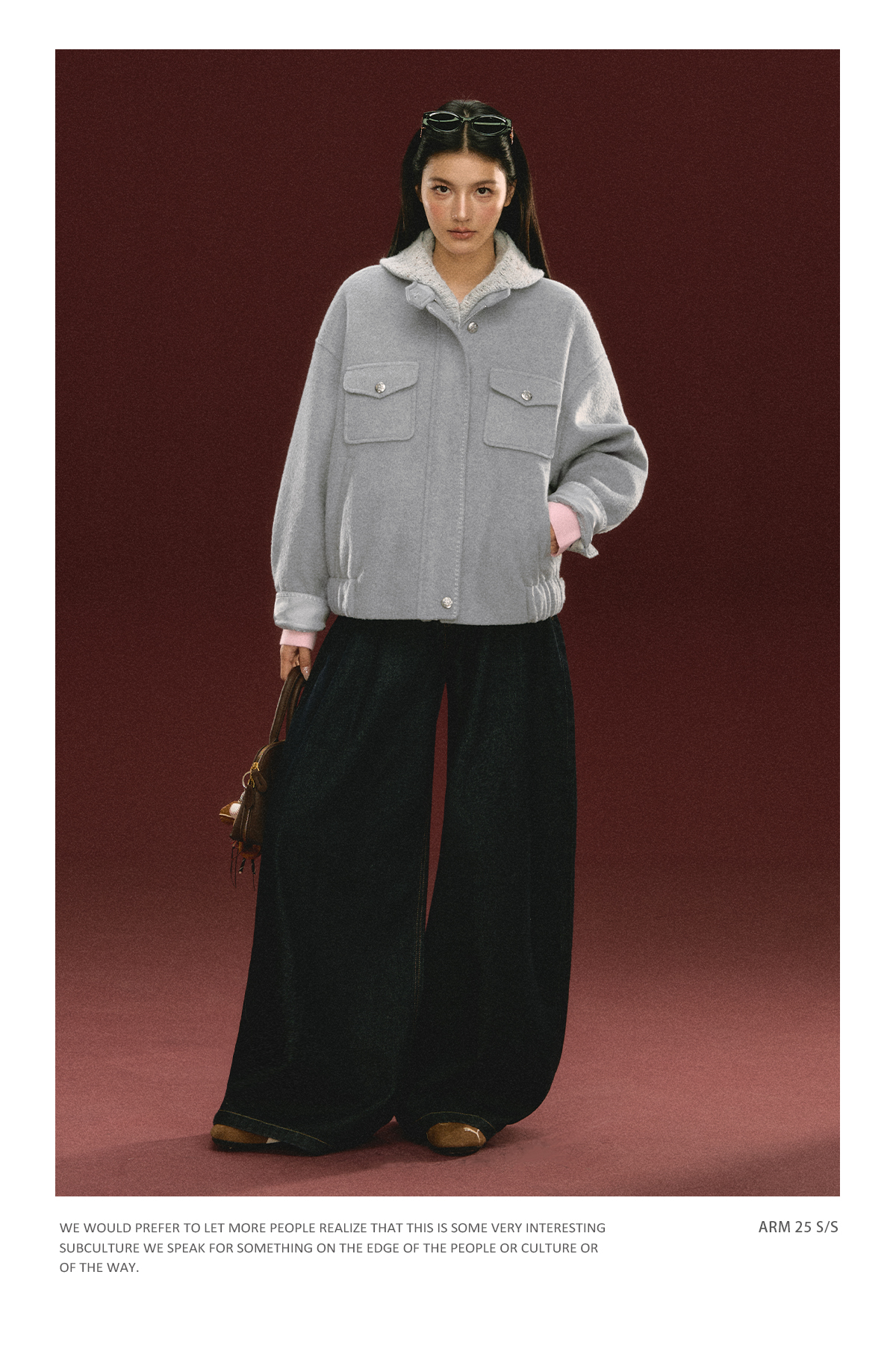 Ariseism 美式复古立领外套女秋冬新款保暖上衣