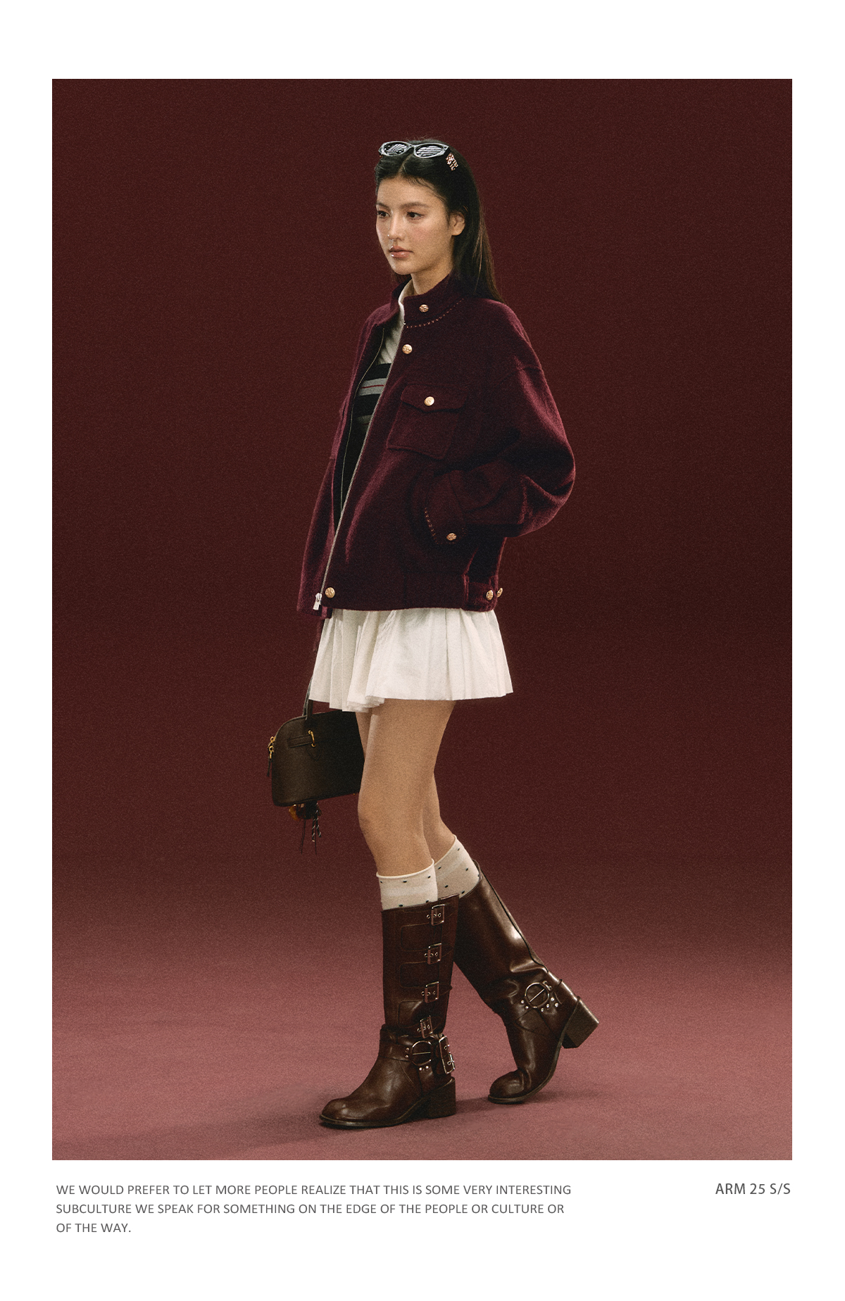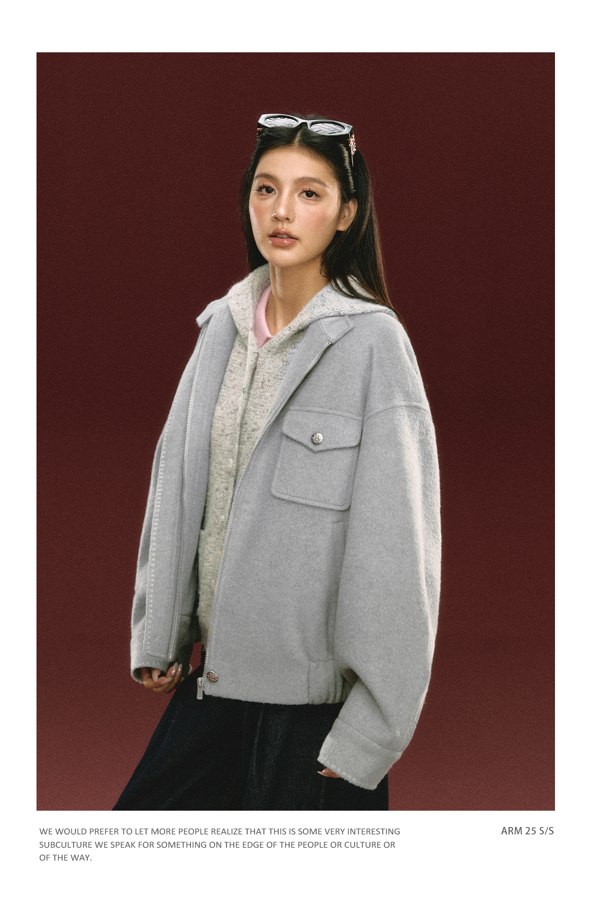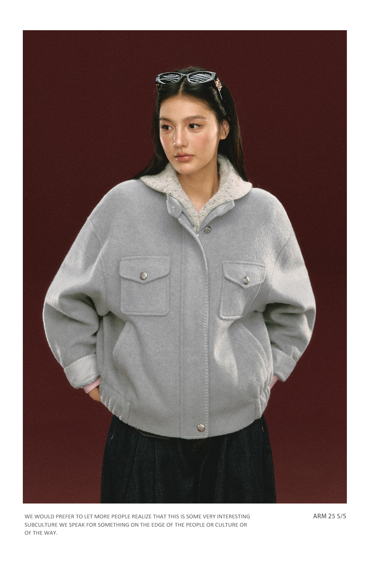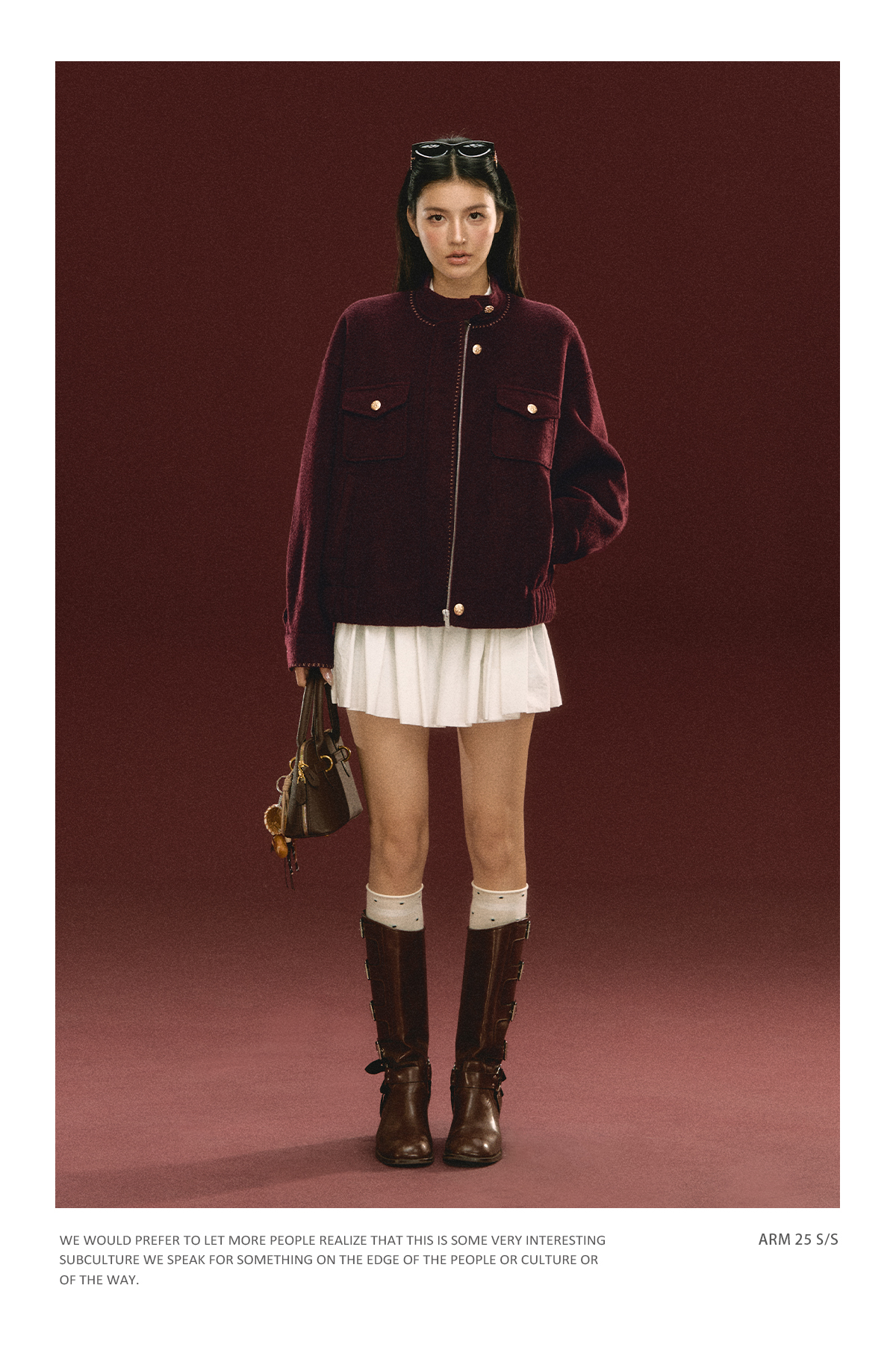 Ariseism 美式复古立领外套女秋冬新款保暖上衣
