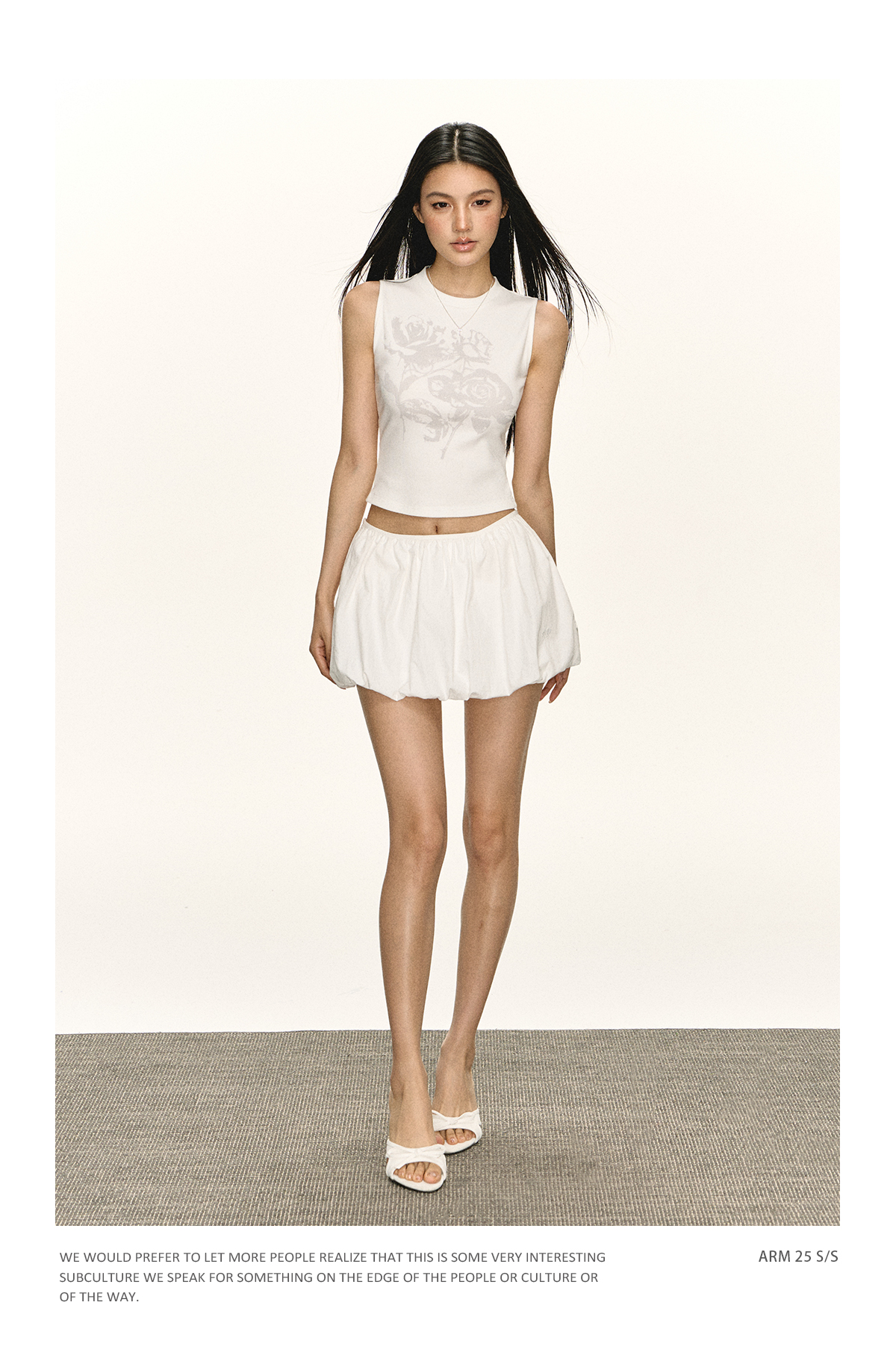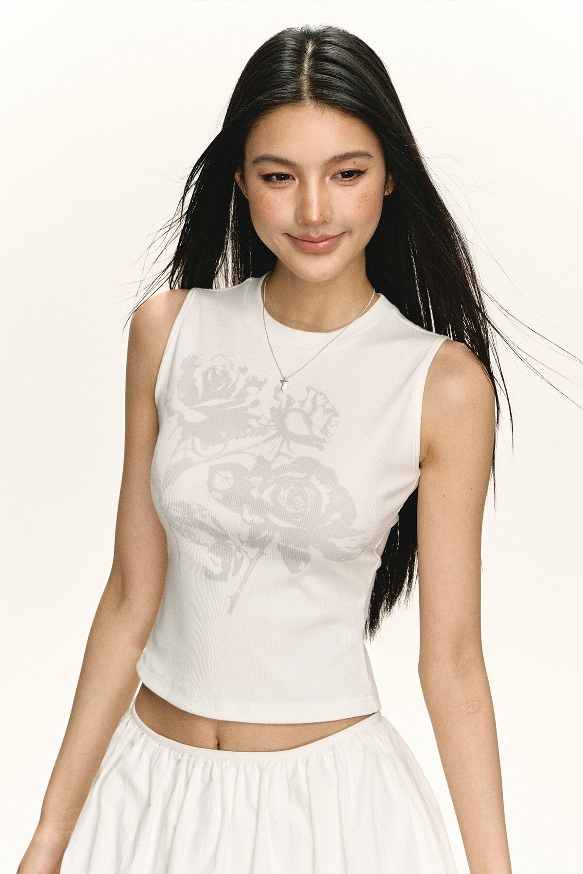 Ariseism美式复古设计感白色暗纹花朵图案无袖背心女夏季新款上衣