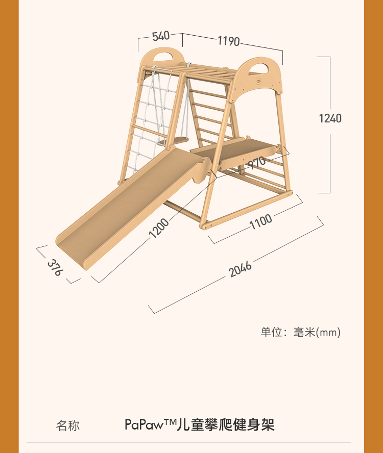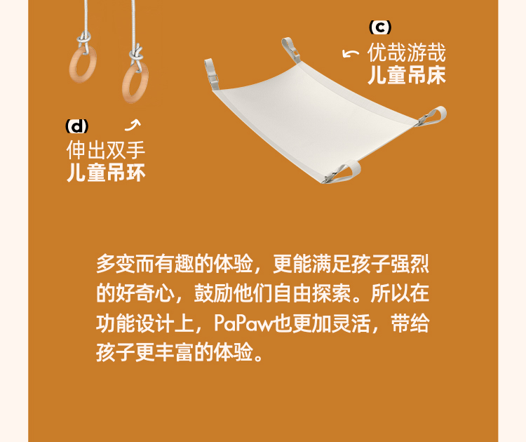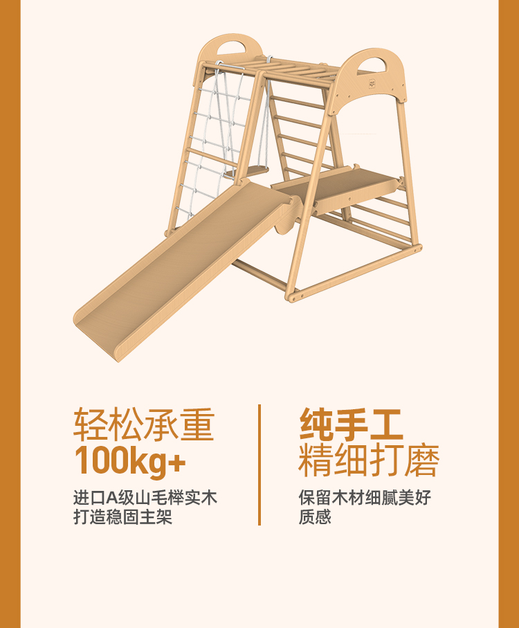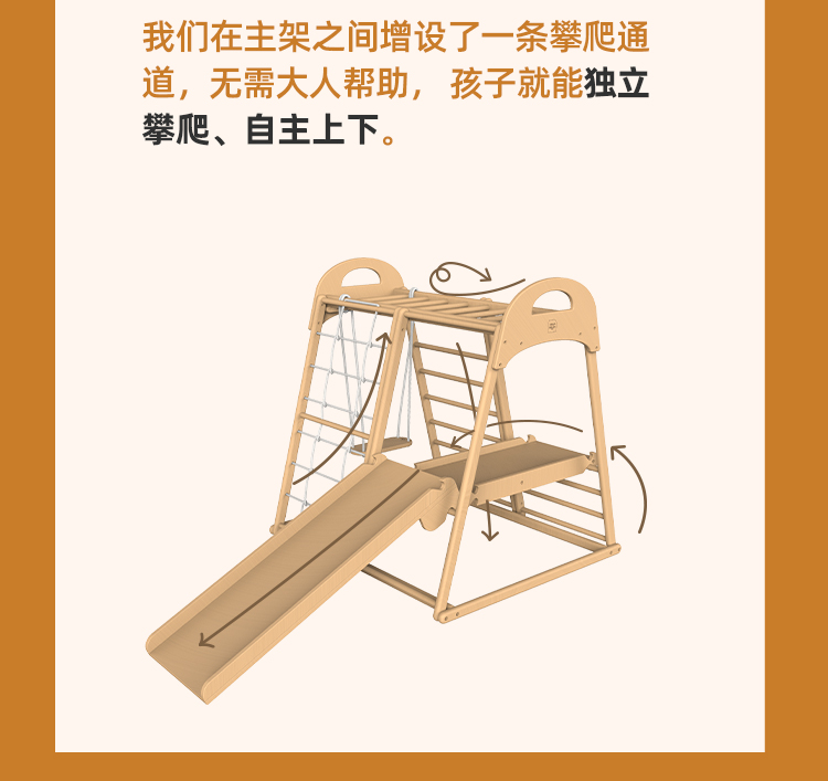 【森哥优选】果然好奇Papaw榉木攀爬架儿童室内秋千家用滑滑梯感统训练