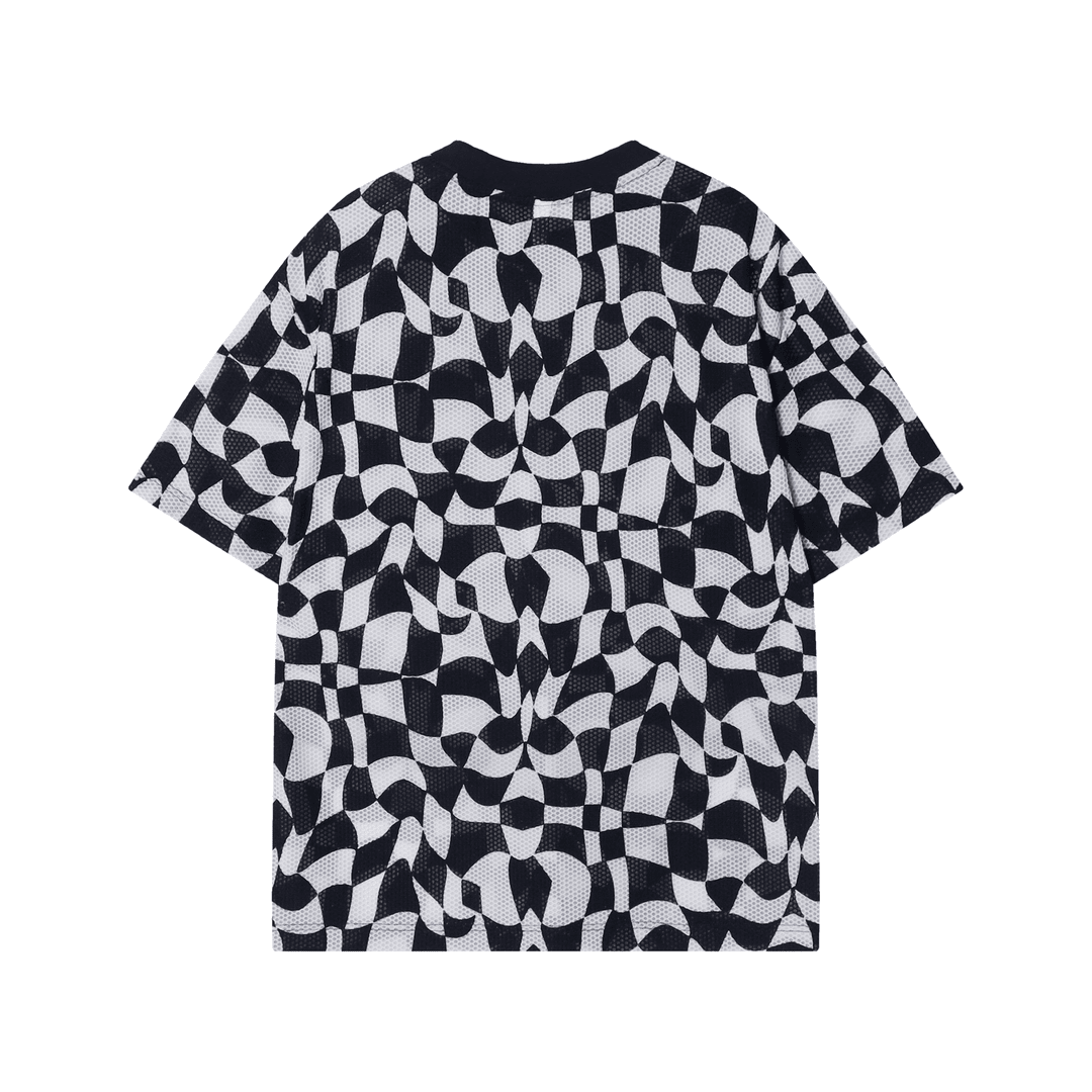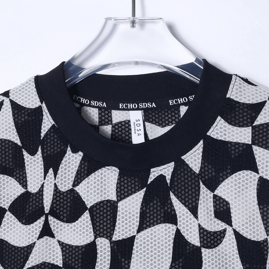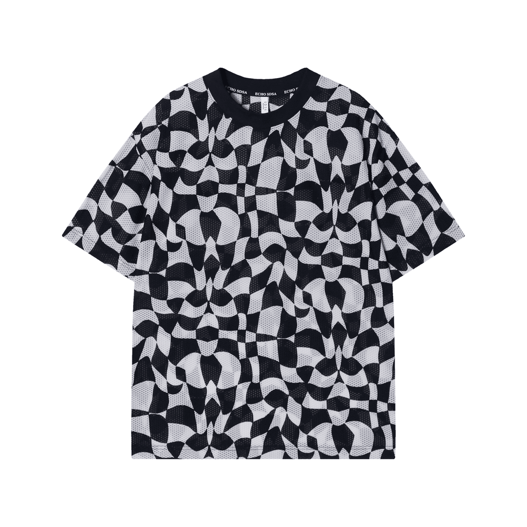 T1469夏季新款时尚黑白格印花男士短袖潮流小众休闲上衣宽松街头T恤