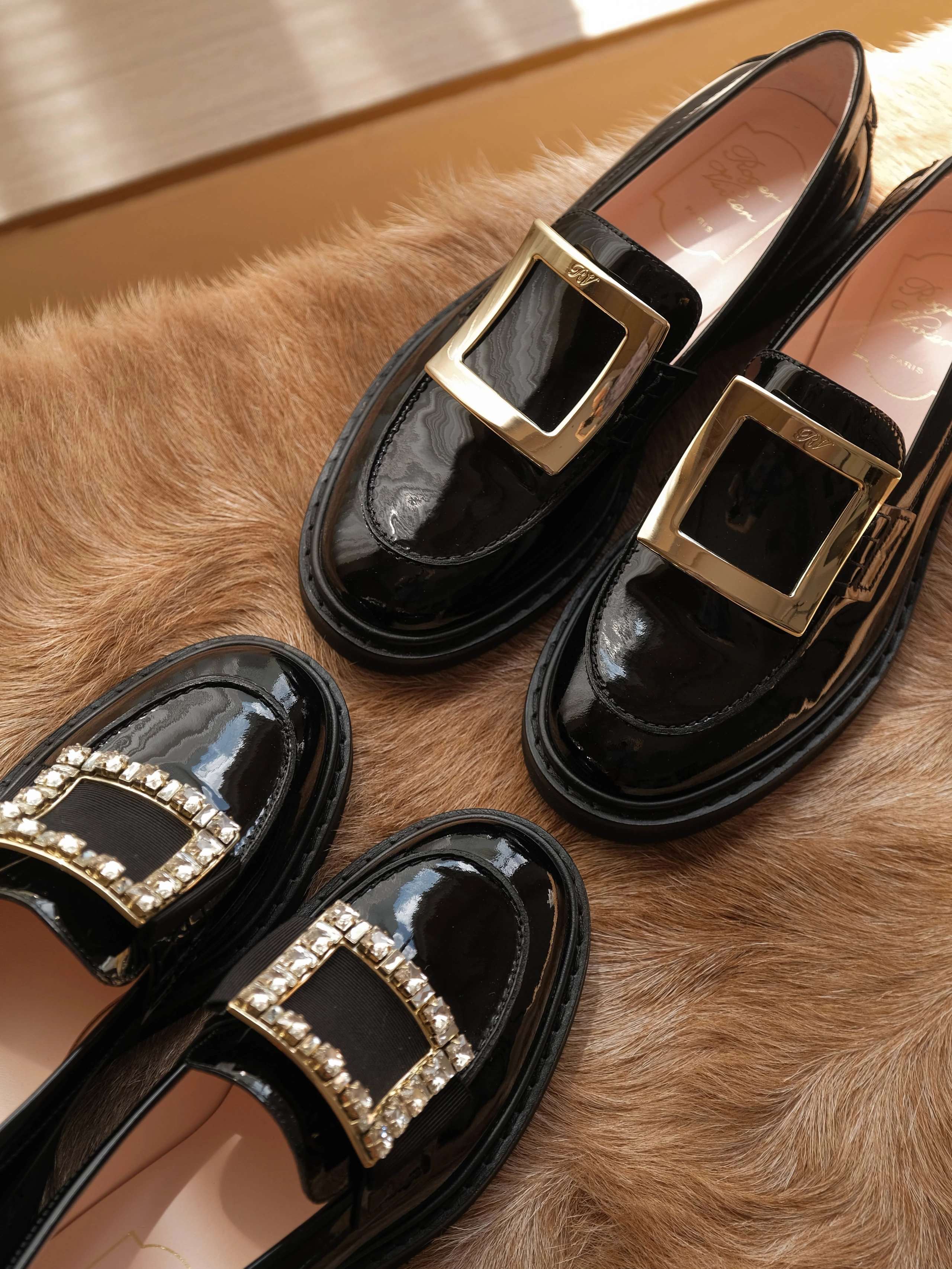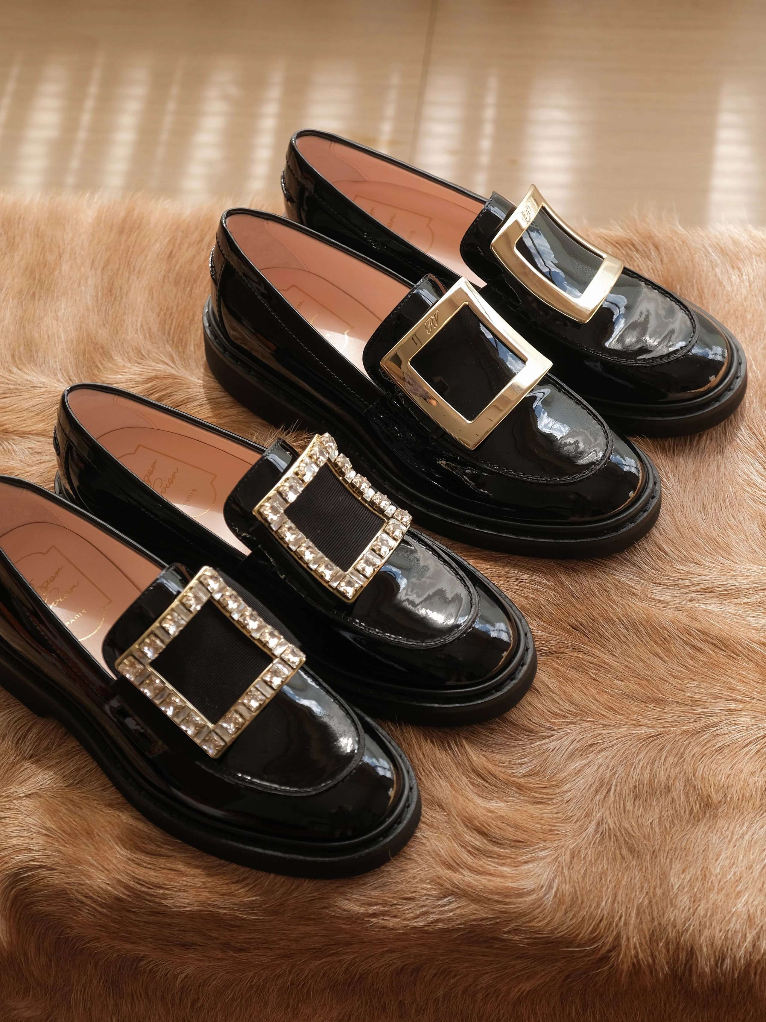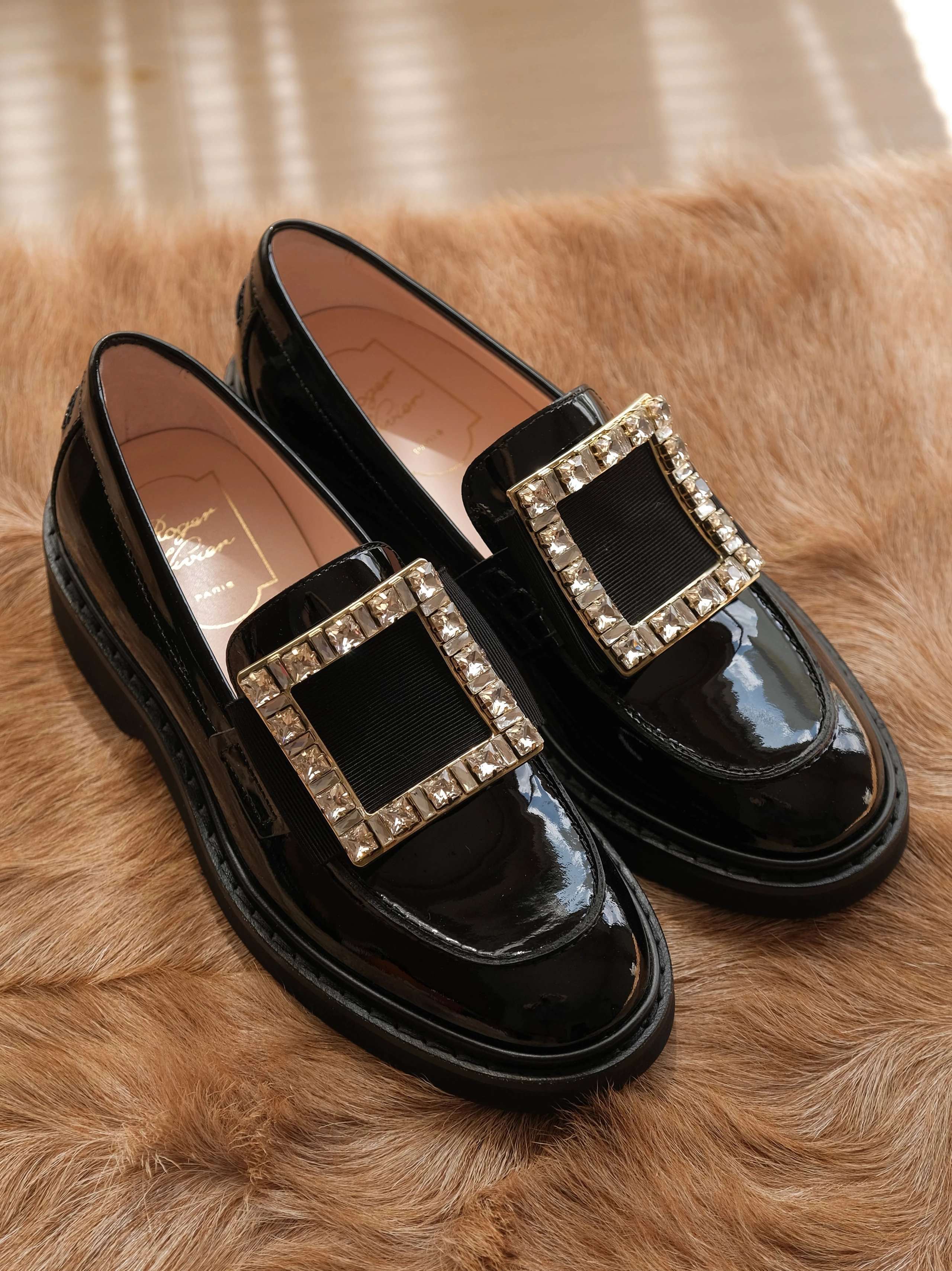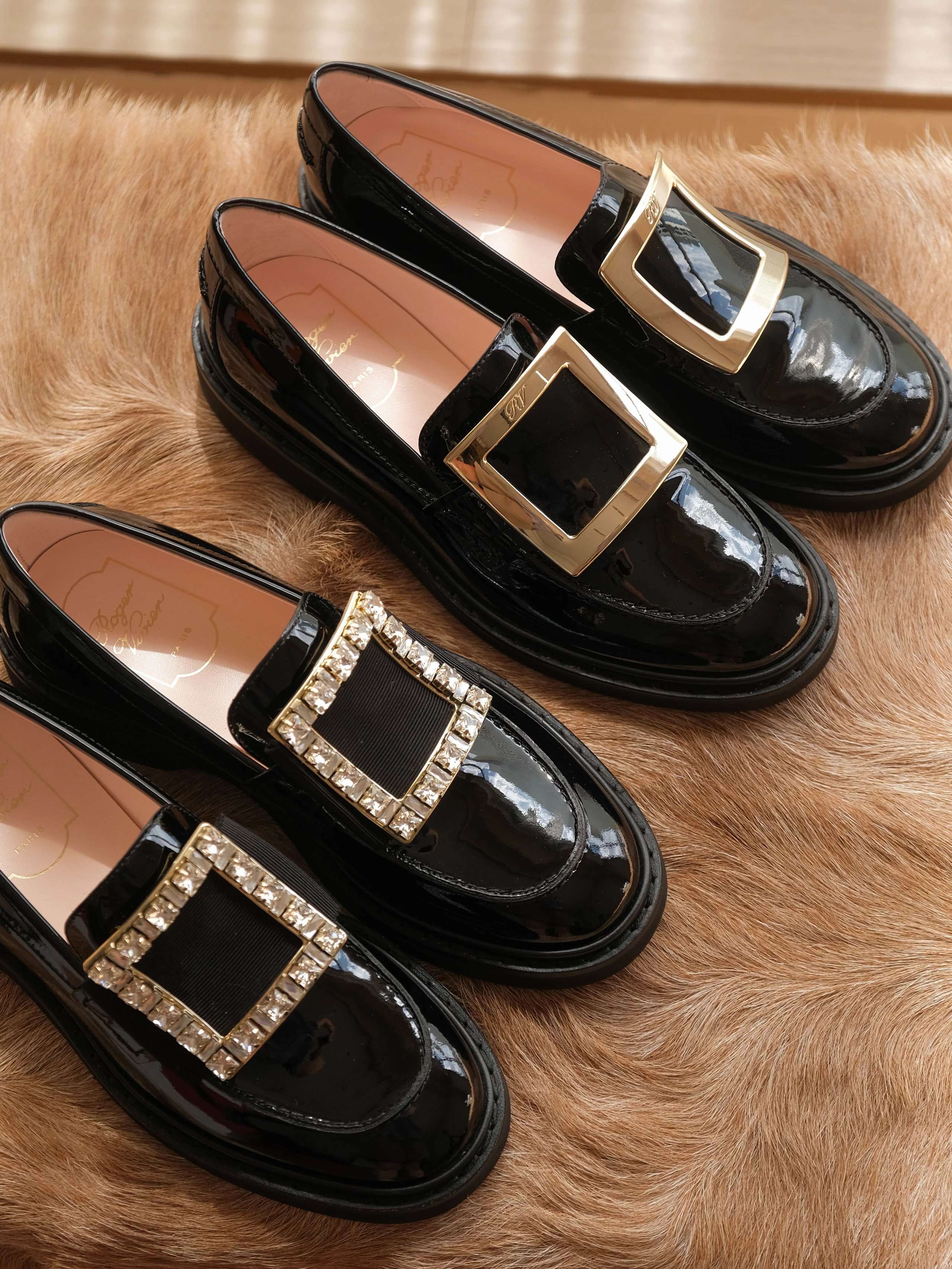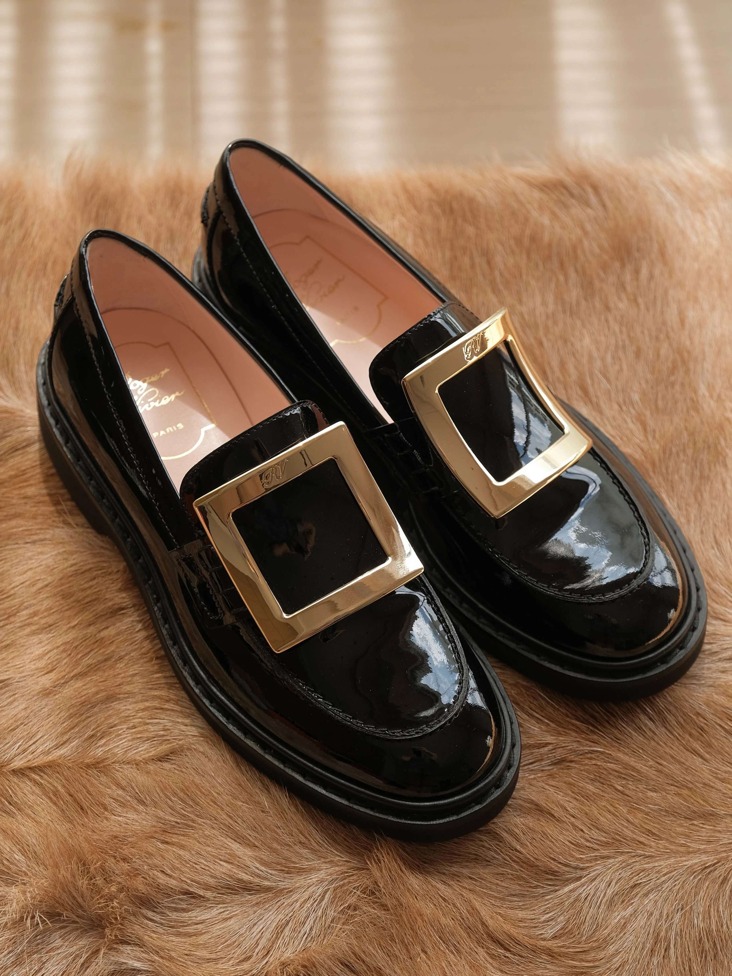 以漆皮手工制成,配以大尺寸的维维亚饰扣