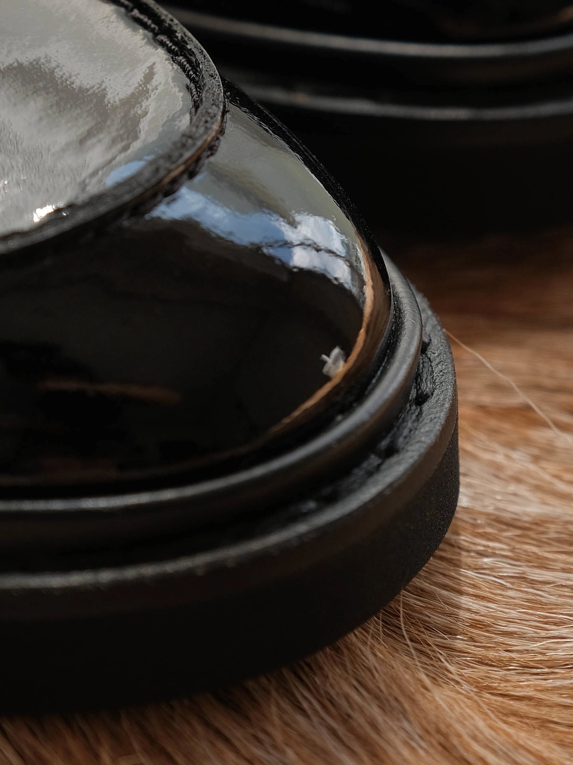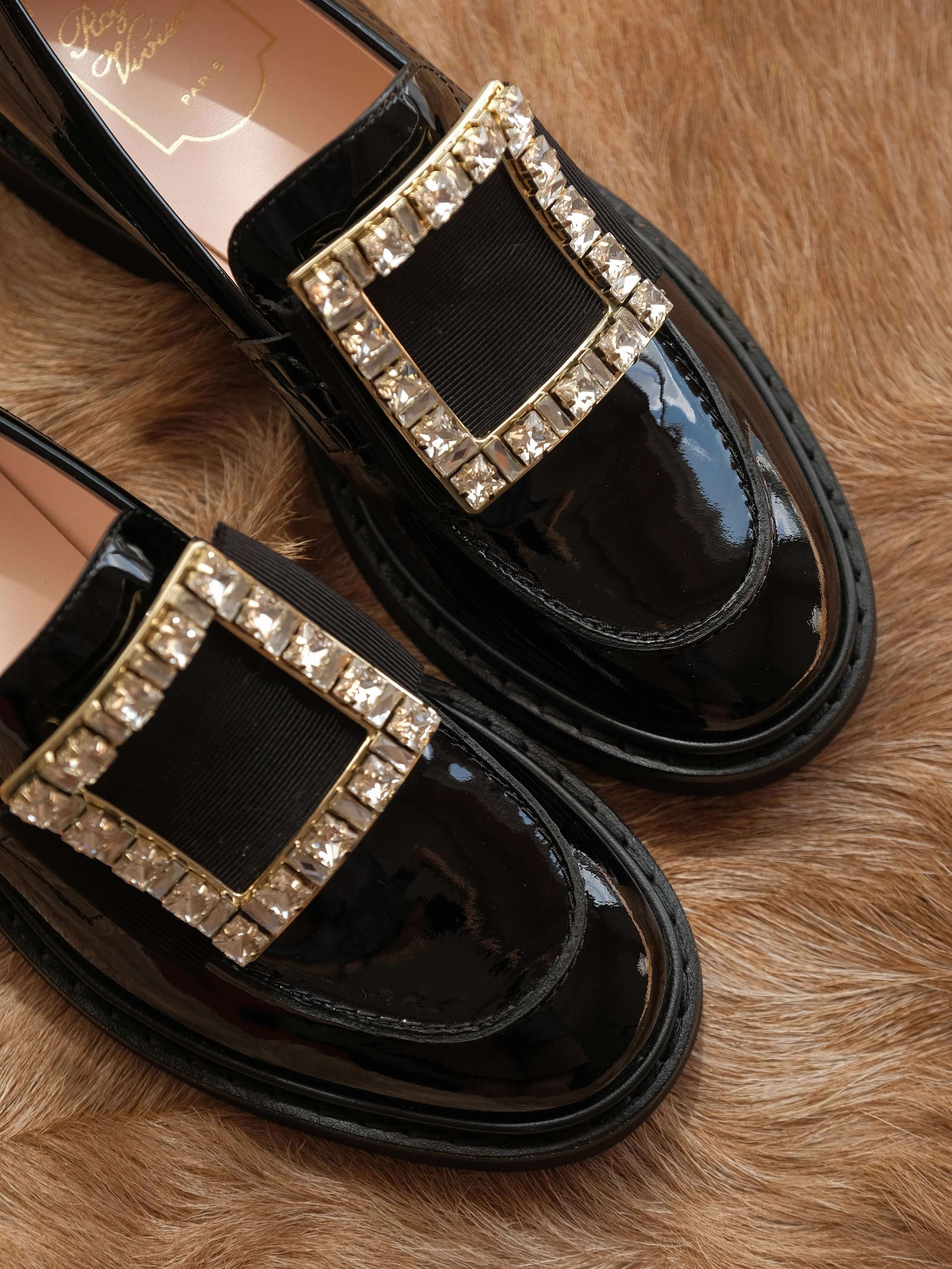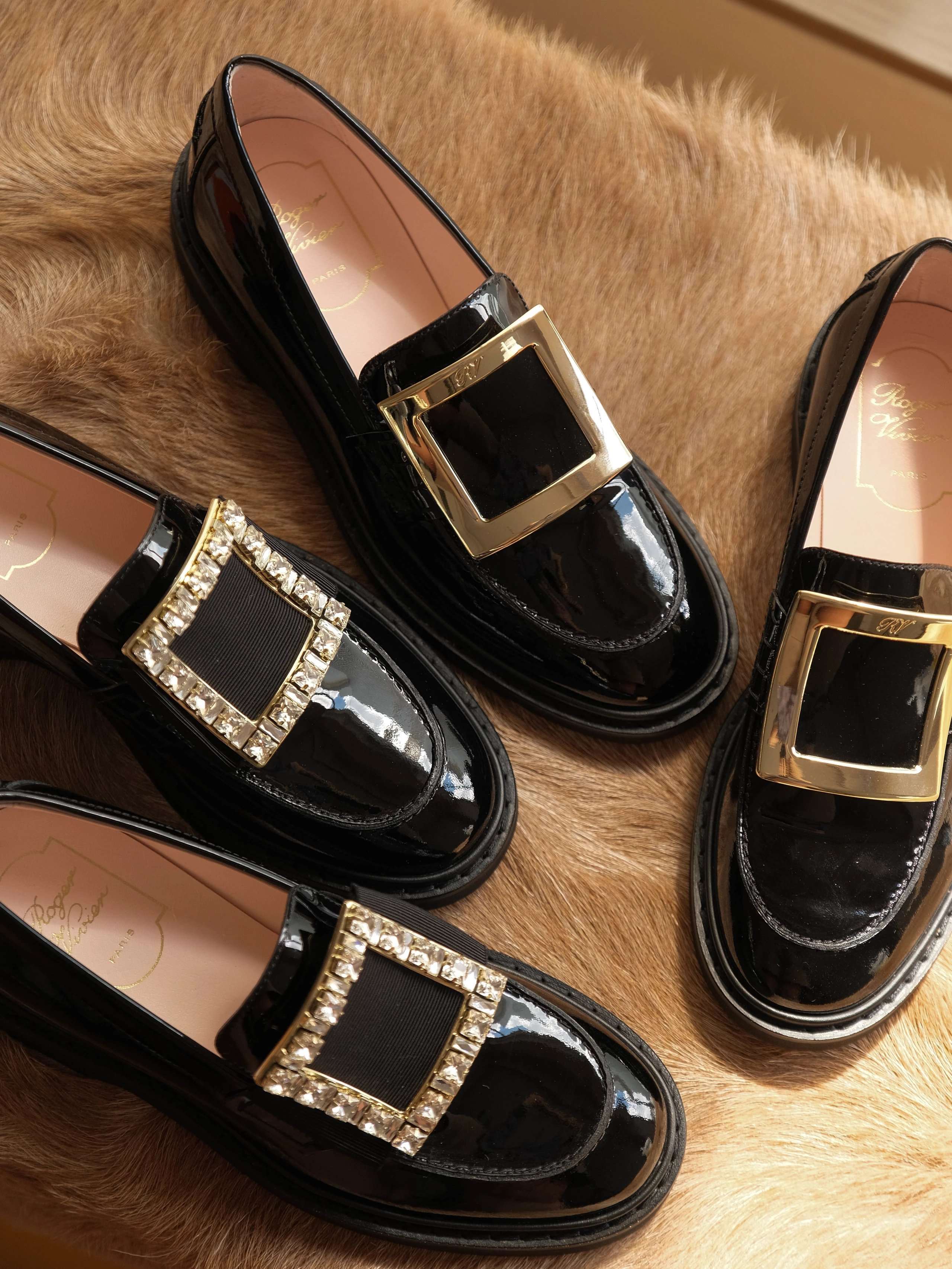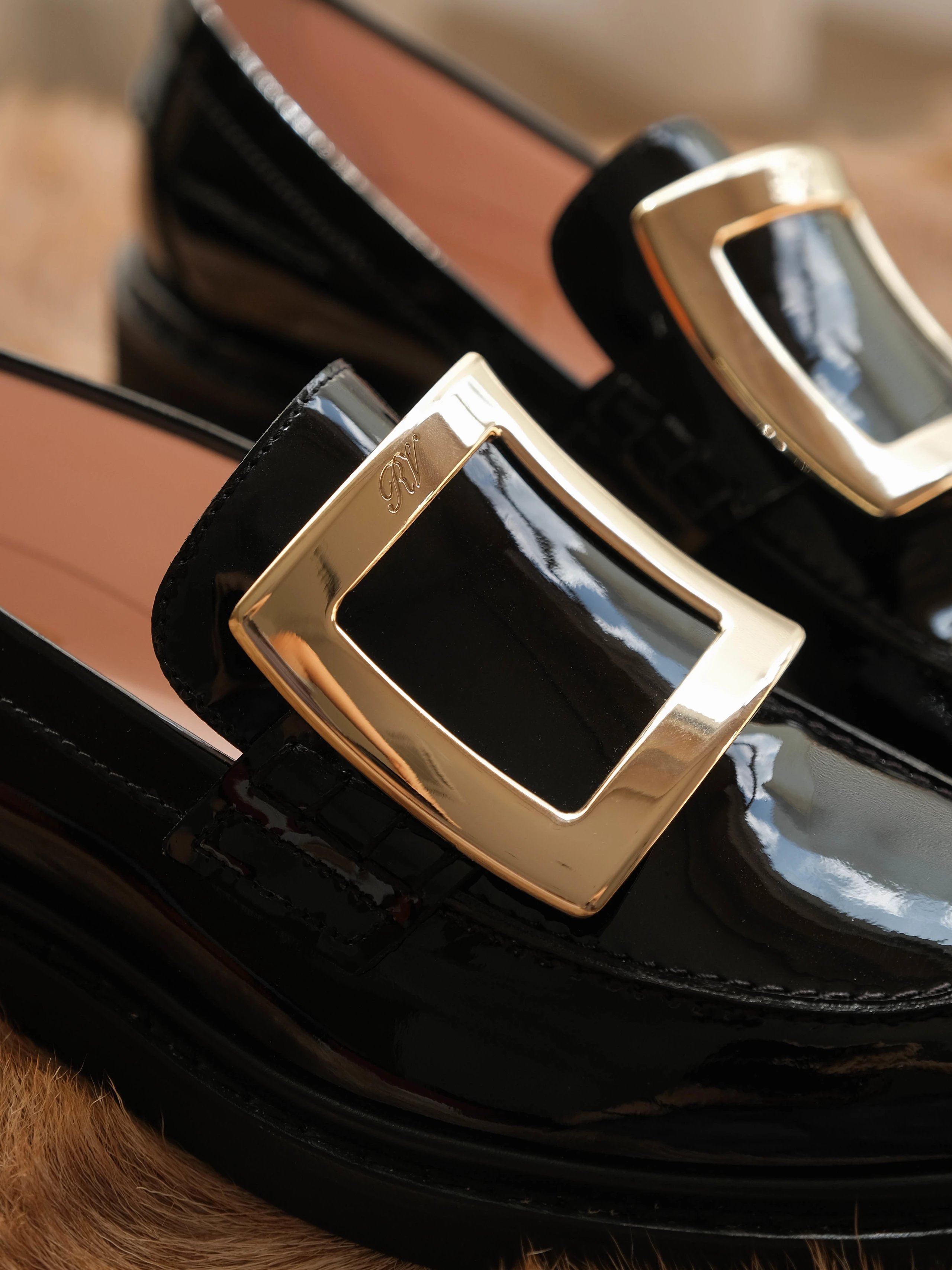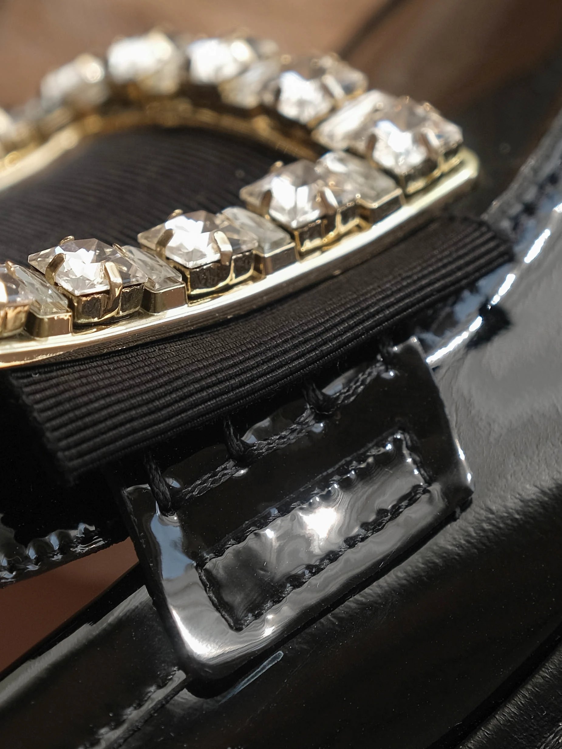 以漆皮手工制成,配以大尺寸的维维亚饰扣