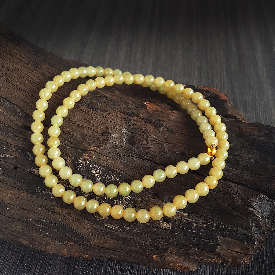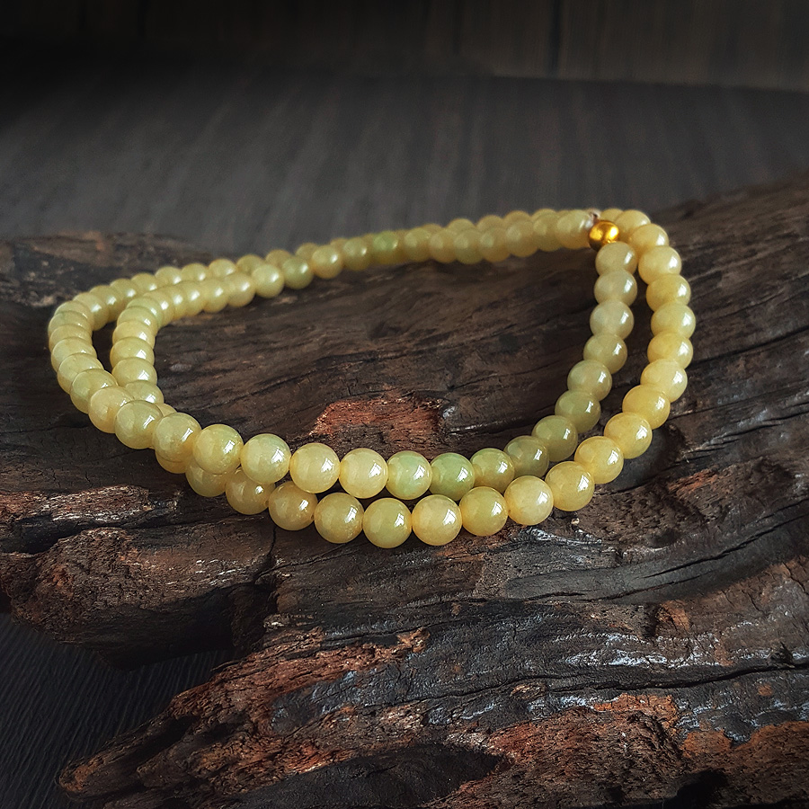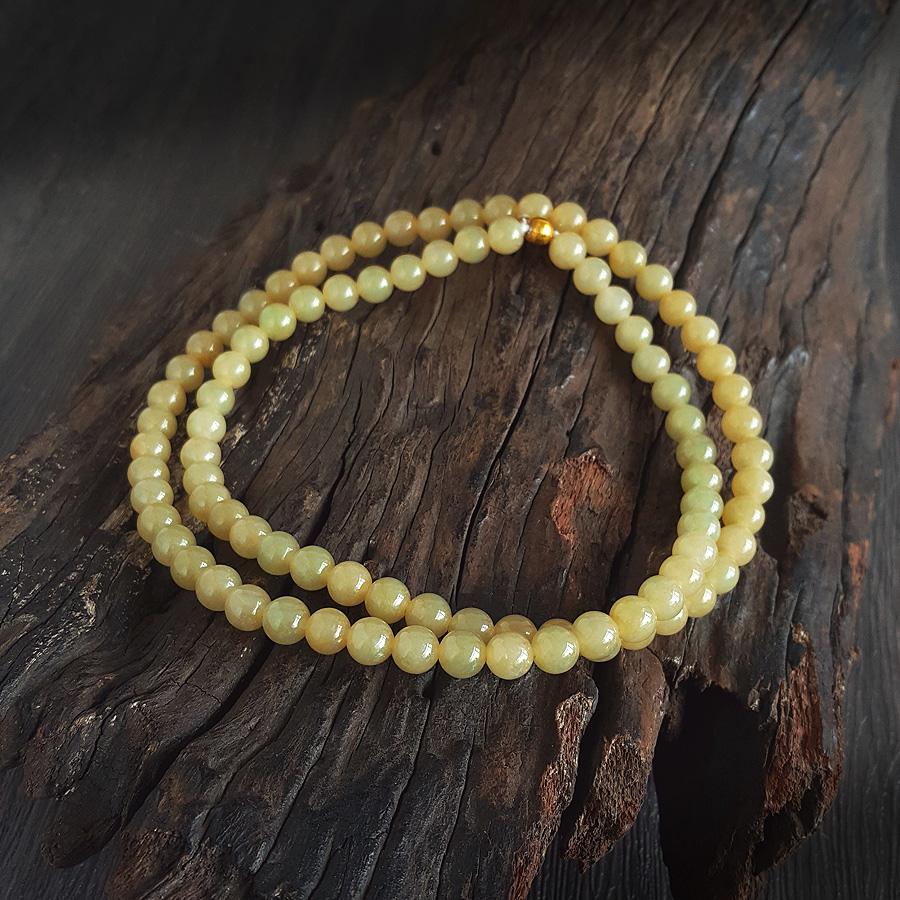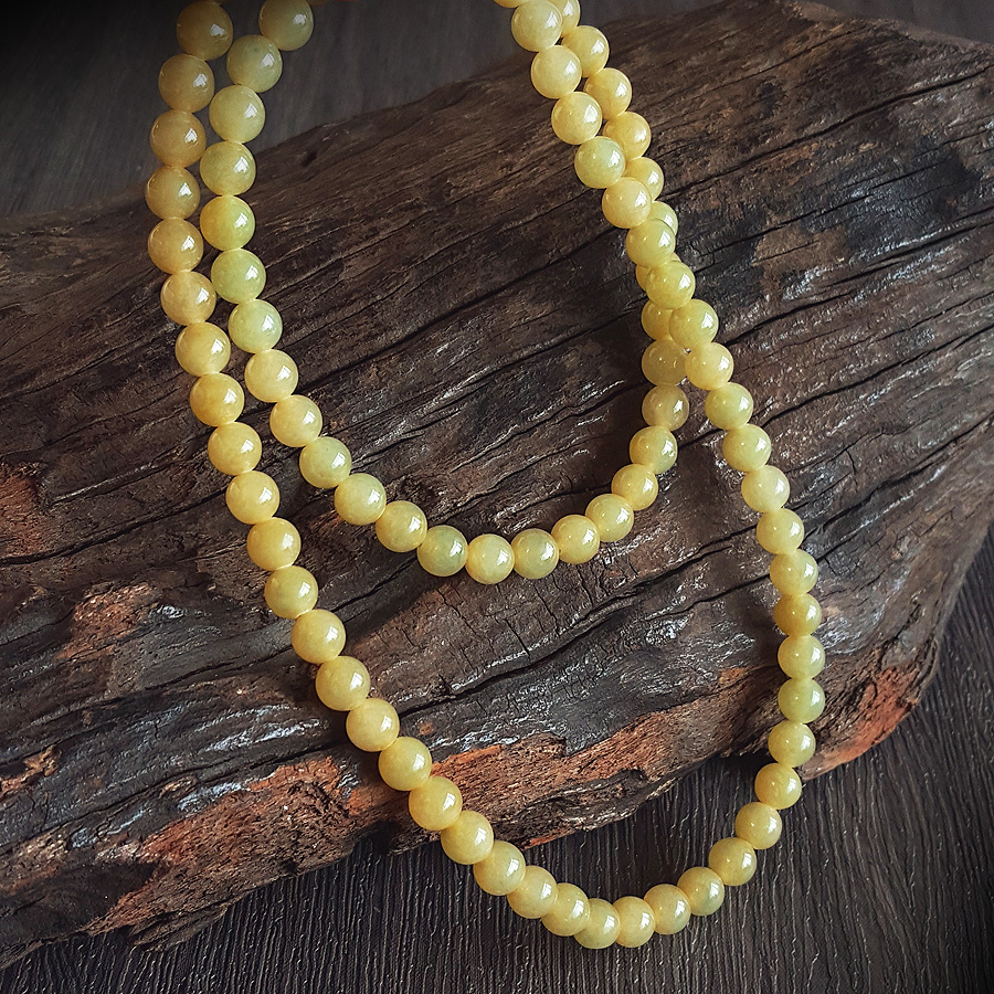 名称 | 天然精品约7.4MM糯冰种无杂裂黄翡翡翠圆珠项链 |