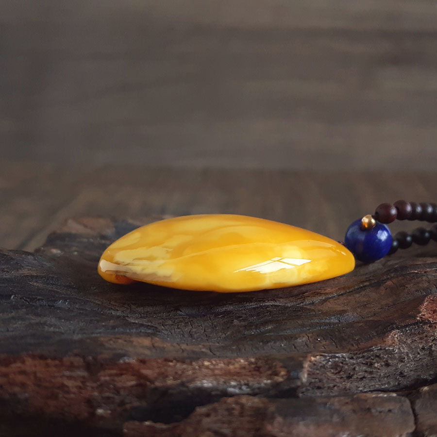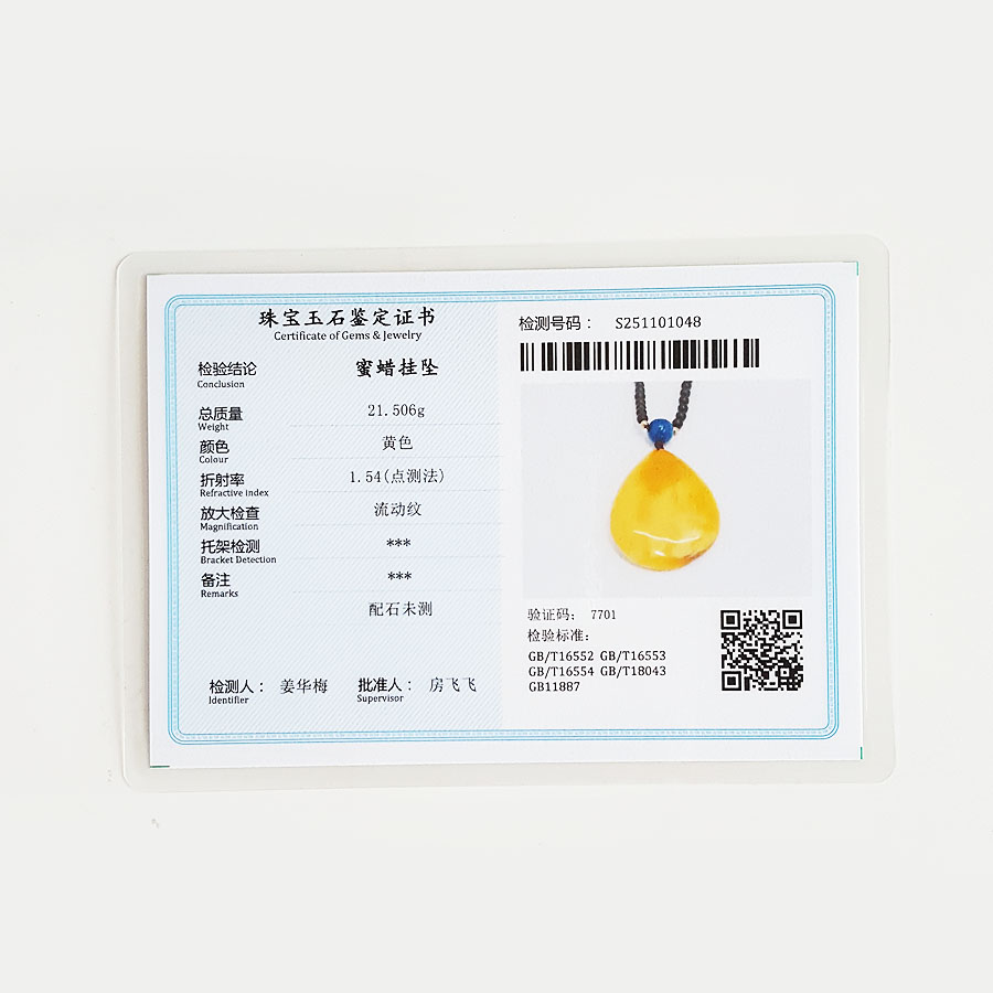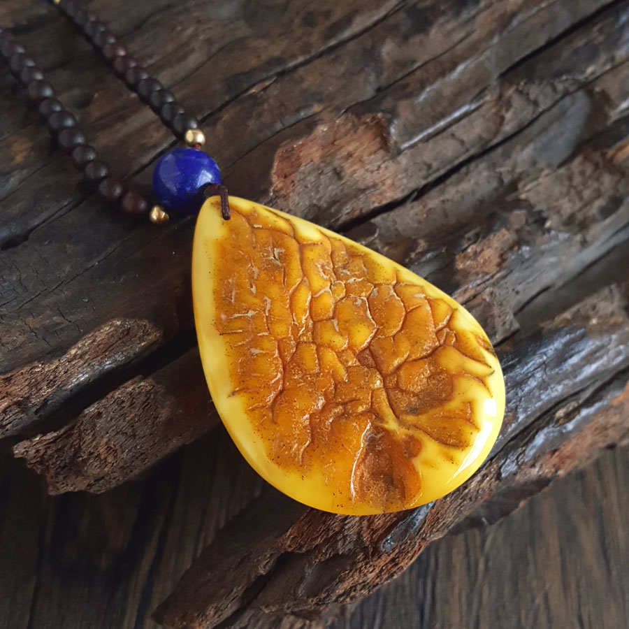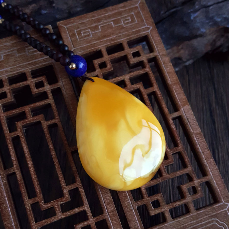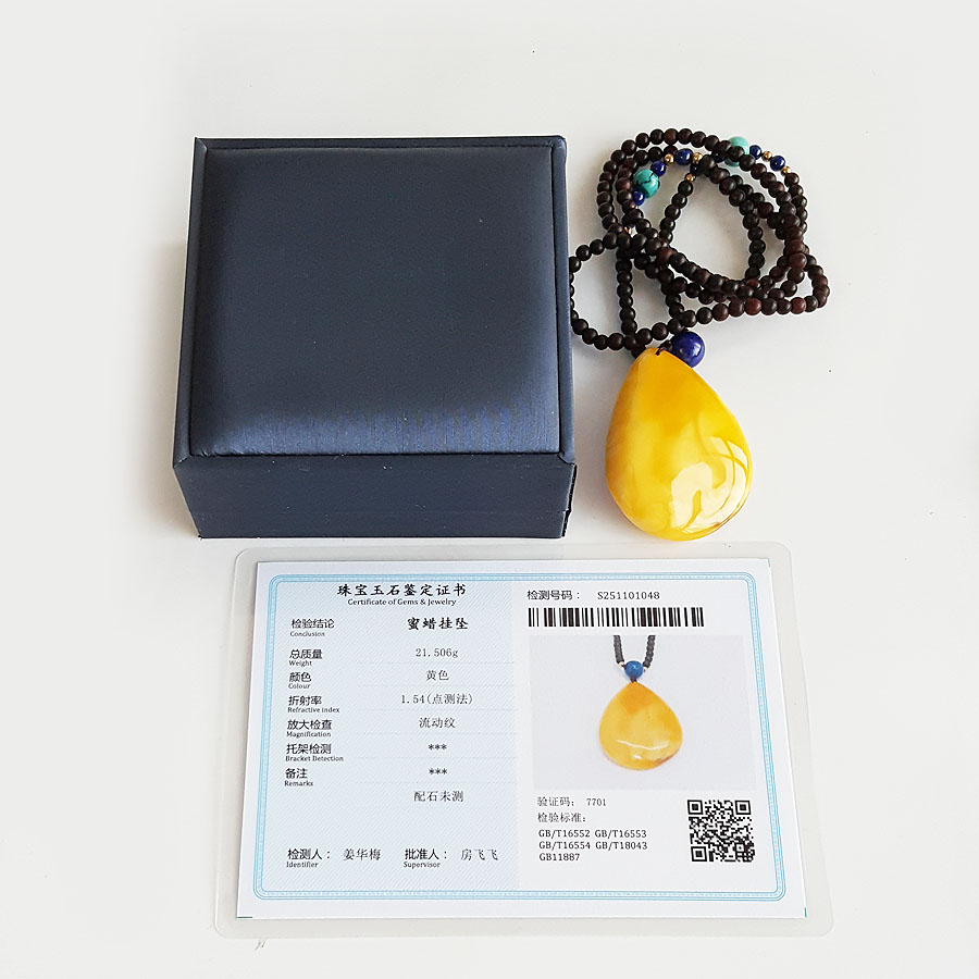 【天然正品】天然无杂裂满蜜鸡油黄水滴造型蜜蜡珠串项链51.6*37.4*11.3MM(皆取最大值)中性281125NJM18 特价