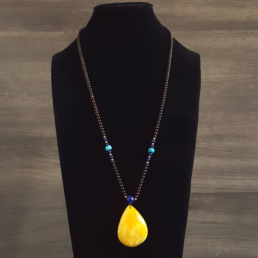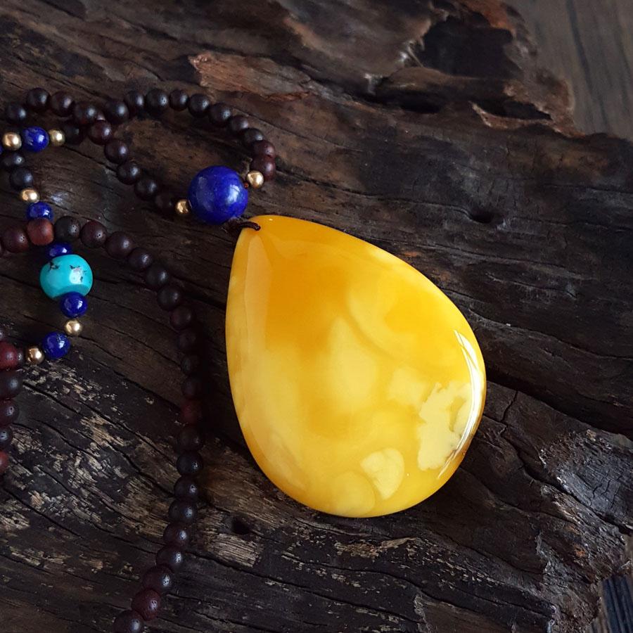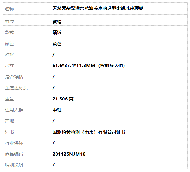 名称 | 天然无杂裂满蜜鸡油黄水滴造型蜜蜡珠串项链 |