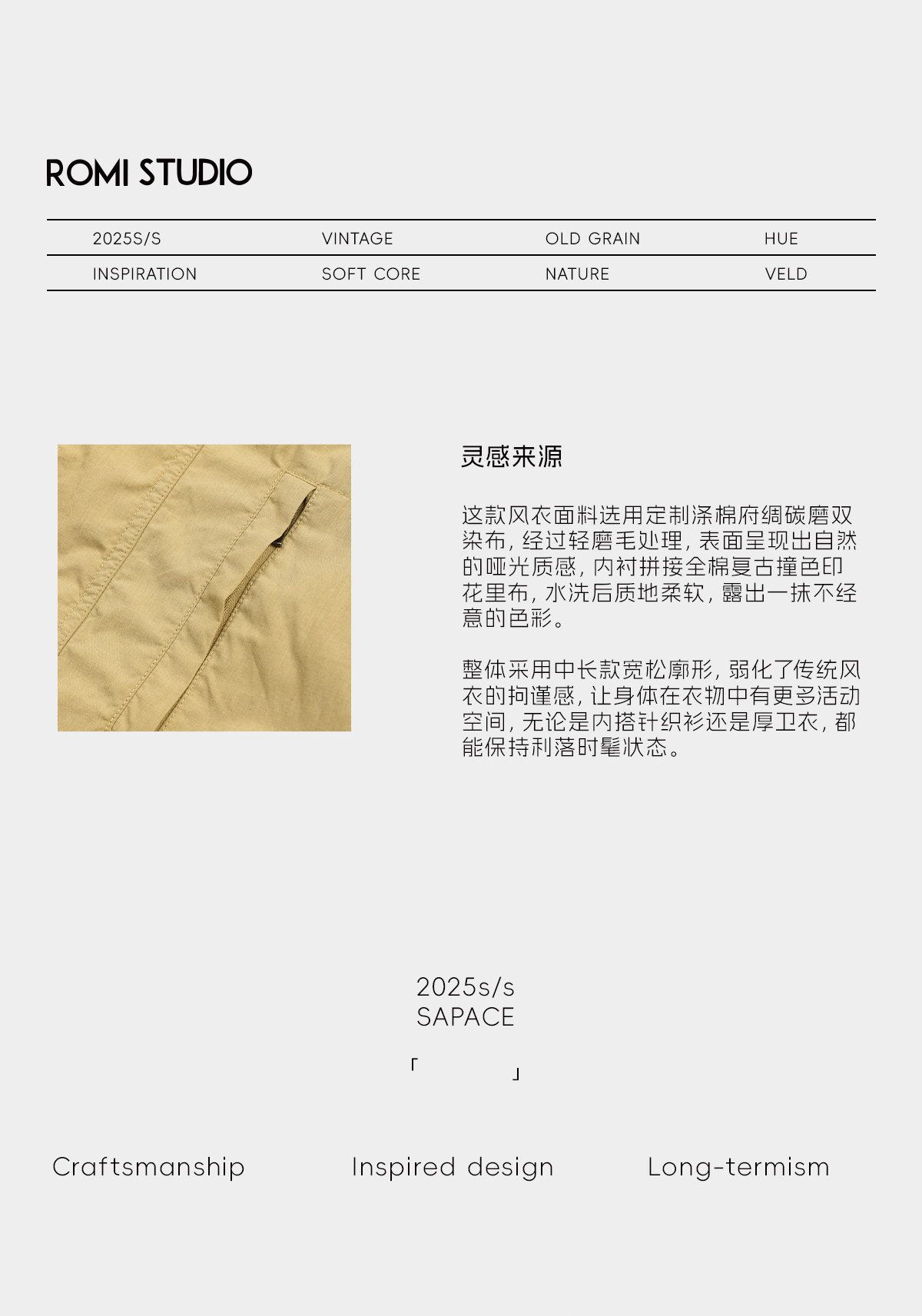 ROMI STUDIO“春日色彩”双染府绸做旧水洗翻领风衣外套 RWCSWY7318