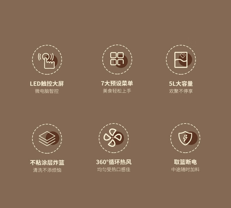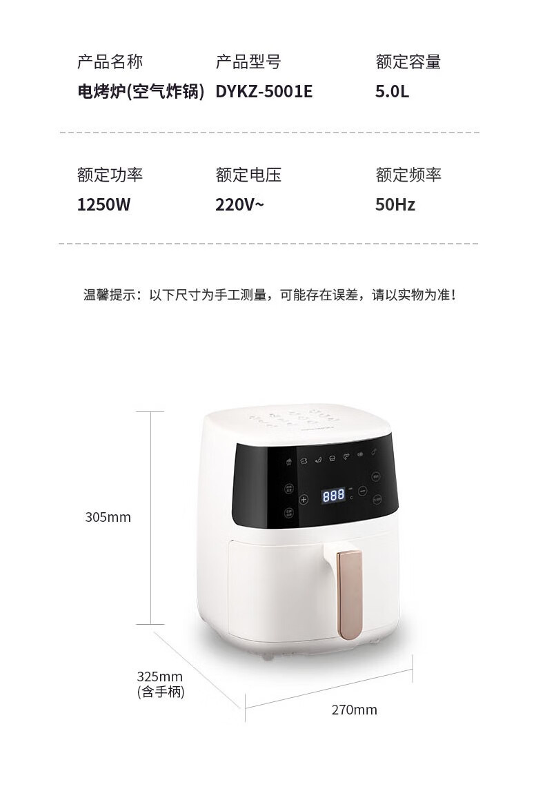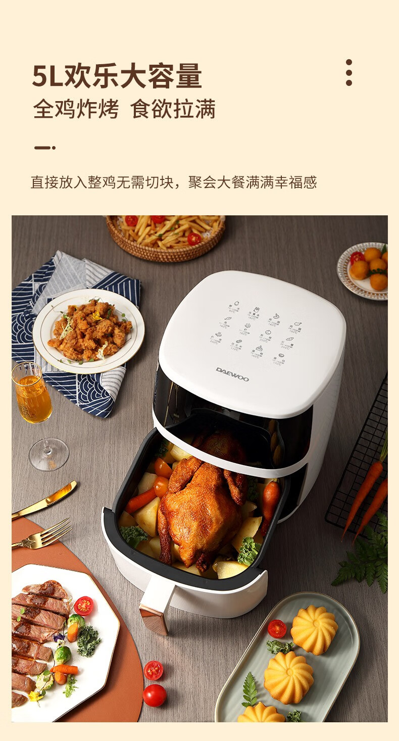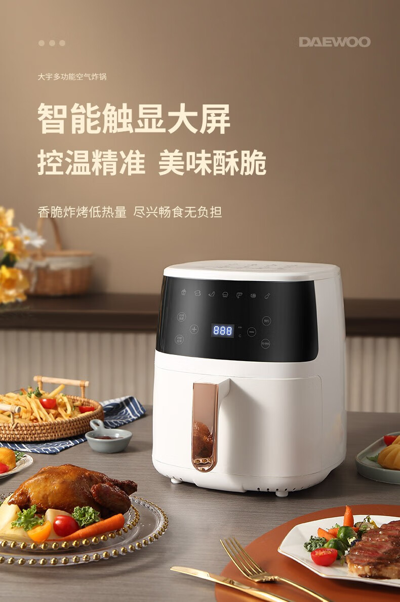 大宇(DAEWOO)家用5L容量无油智能触控一体多功能空气炸锅DYKZ-5001E DYKZ-5001E