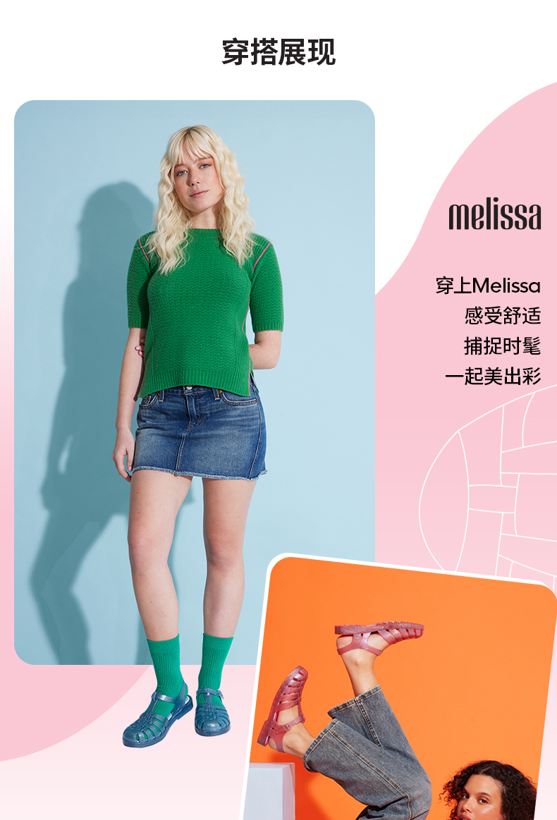 Melissa/梅丽莎 女夏季编织镂空平底单鞋成人凉鞋果冻配色33520