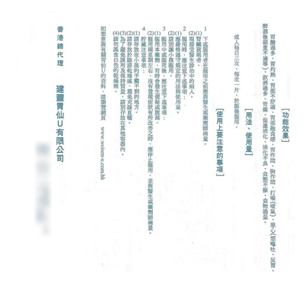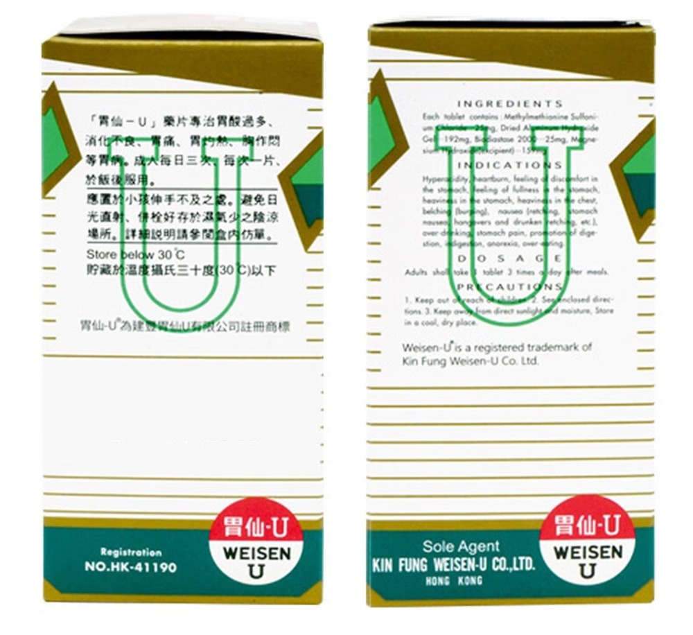 【香港直邮】肠胃消化胃胀食欲不振 正品胃仙 U(100's)