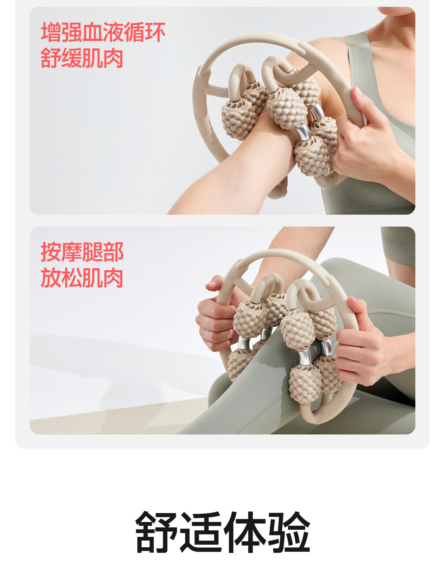 YOTTOY泡沫轴肌肉放松专业滚轴按摩滚轮瘦腿环形夹狼牙棒运动瑜伽