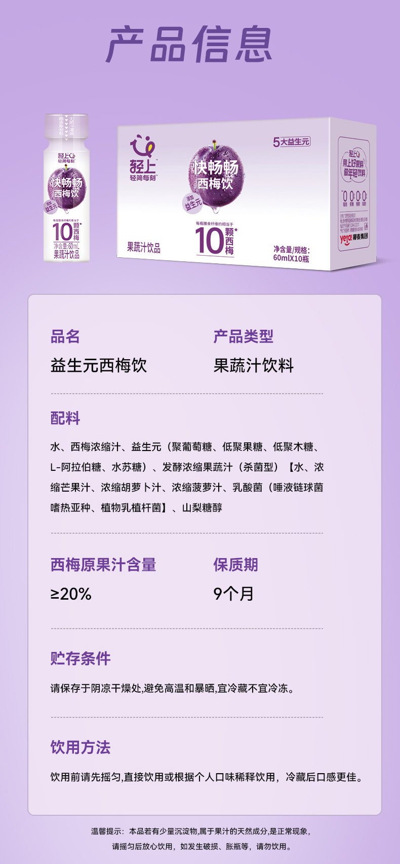 GB轻上西梅膳食纤维果汁60ml*15瓶益生元西梅饮品