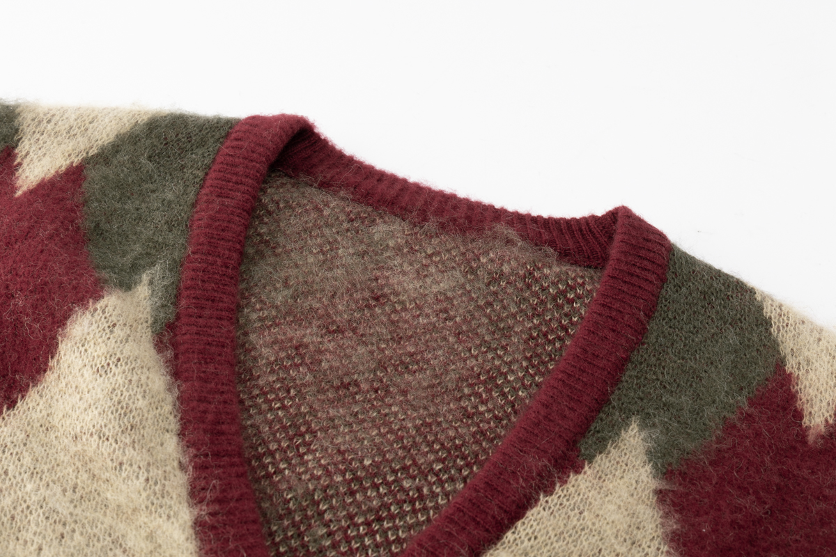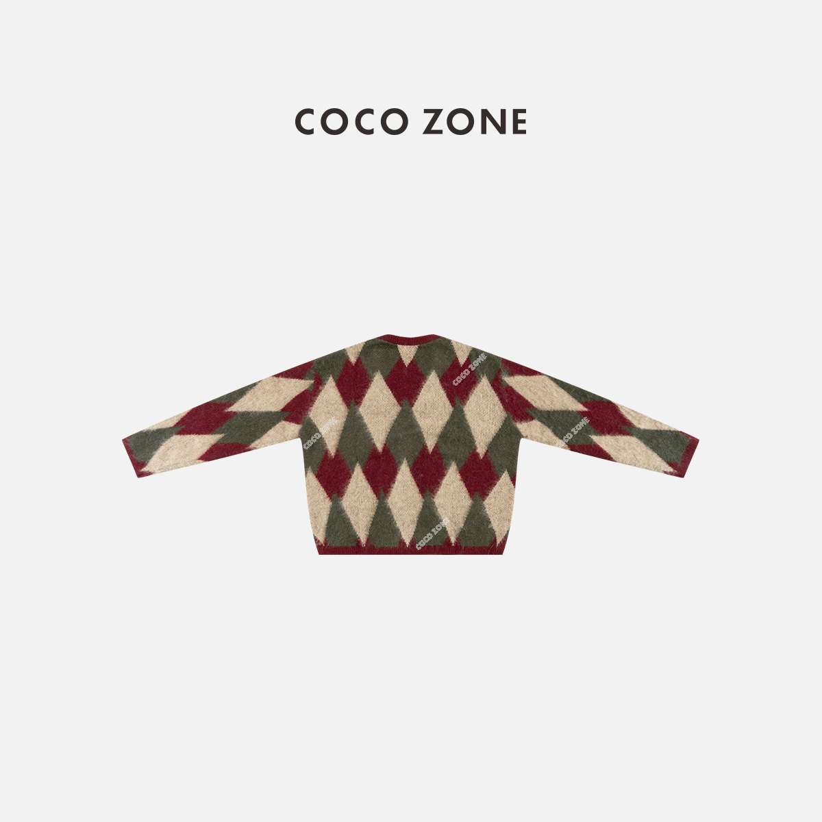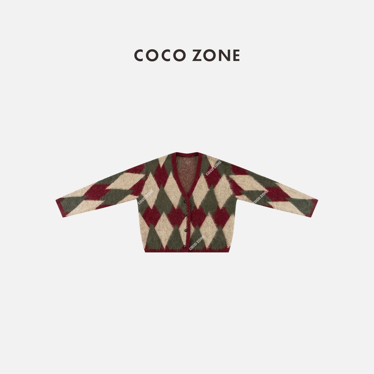 COCO ZONE 冬季慵懒风撞色V领单排扣针织开衫CC2D2888