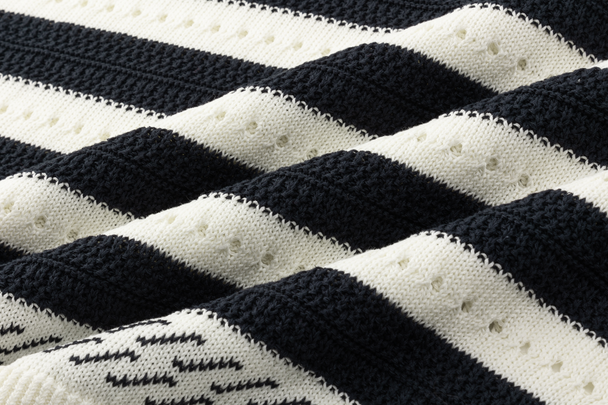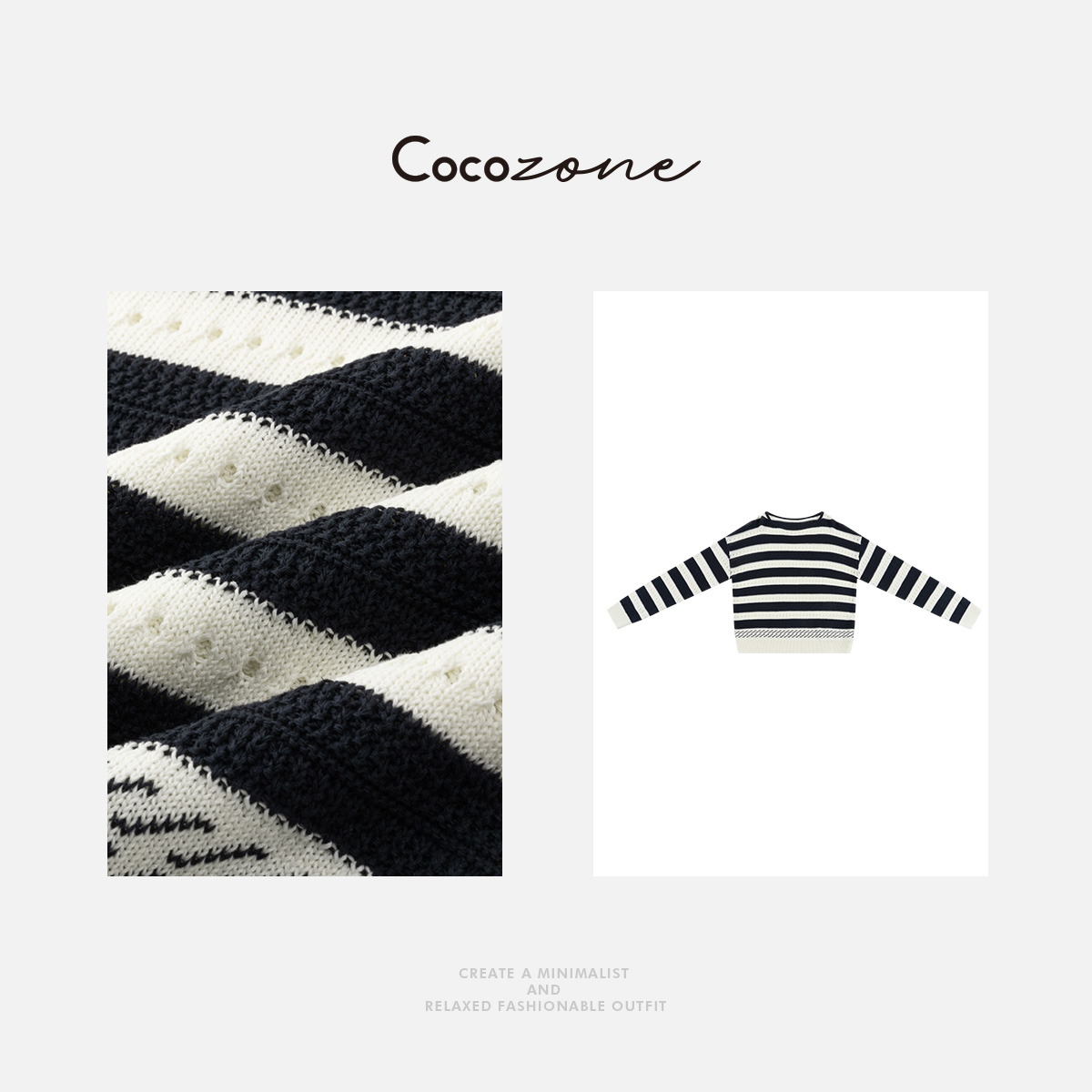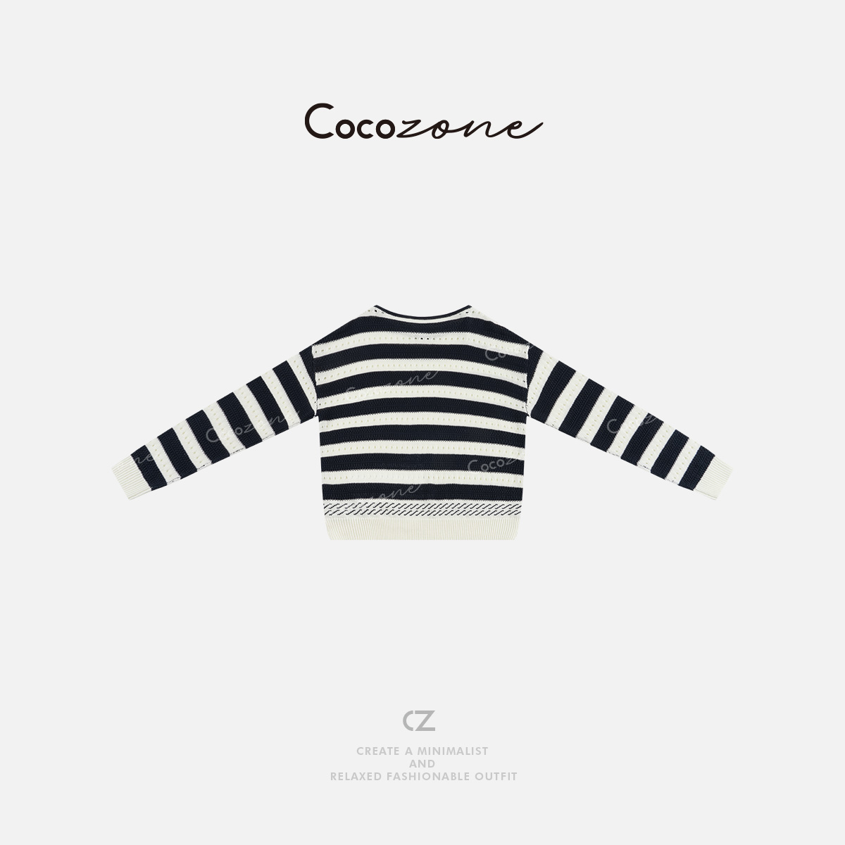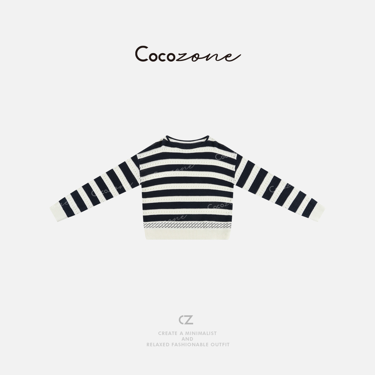COCO ZONE 2025新款撞色条纹镂空圆领针织衫ACD2A0038