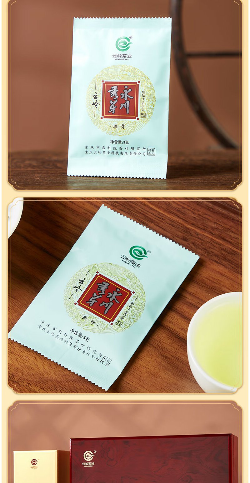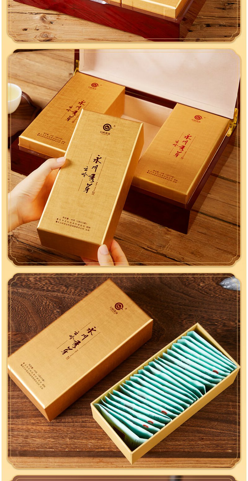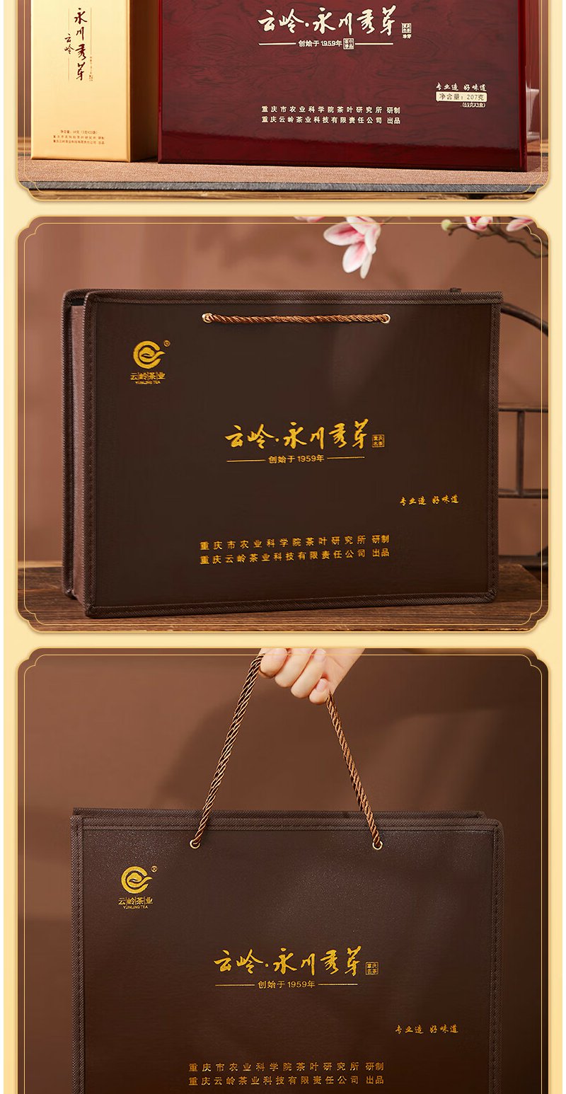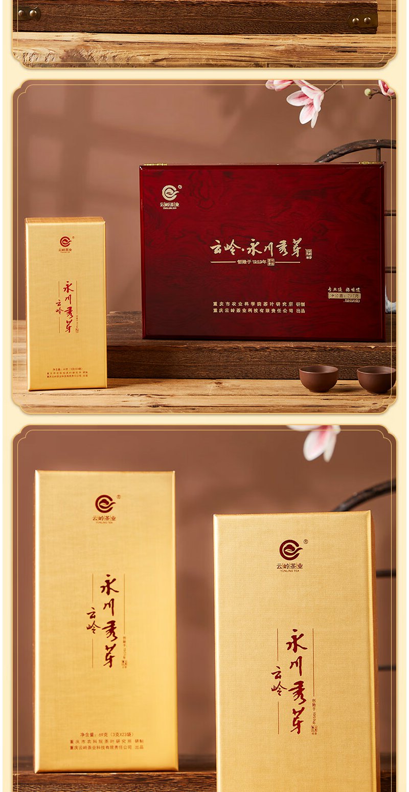 云岭茶业永川秀芽2024年新茶 明前绿茶(珍芽)茶叶礼盒装送礼207g 高档木质茶礼207g