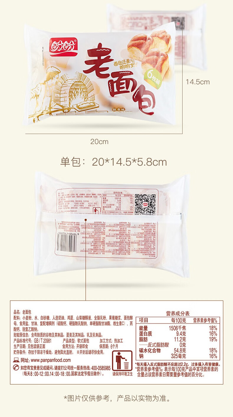 [鼎】GG盼盼老面包155g-奶香味5包