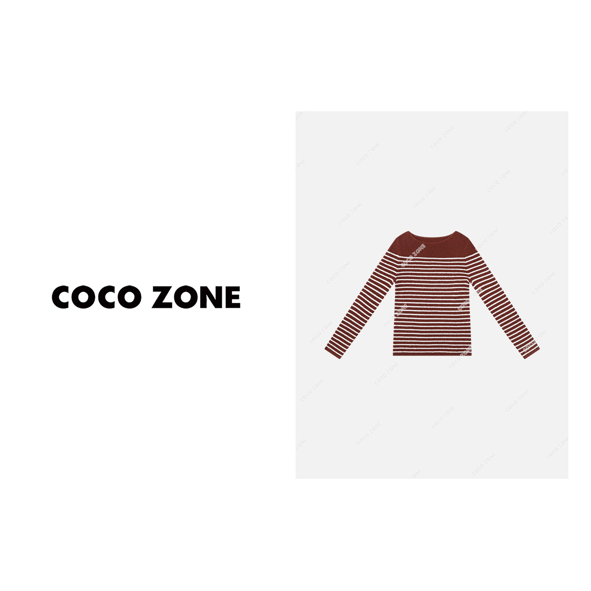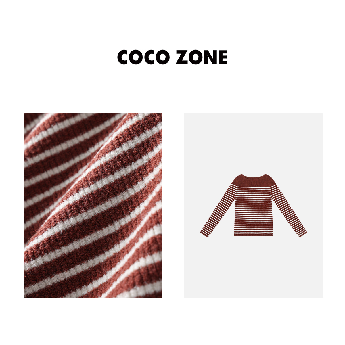 COCO ZONE 针织打底衫撞色条纹羊毛长袖内搭上衣 23C19751