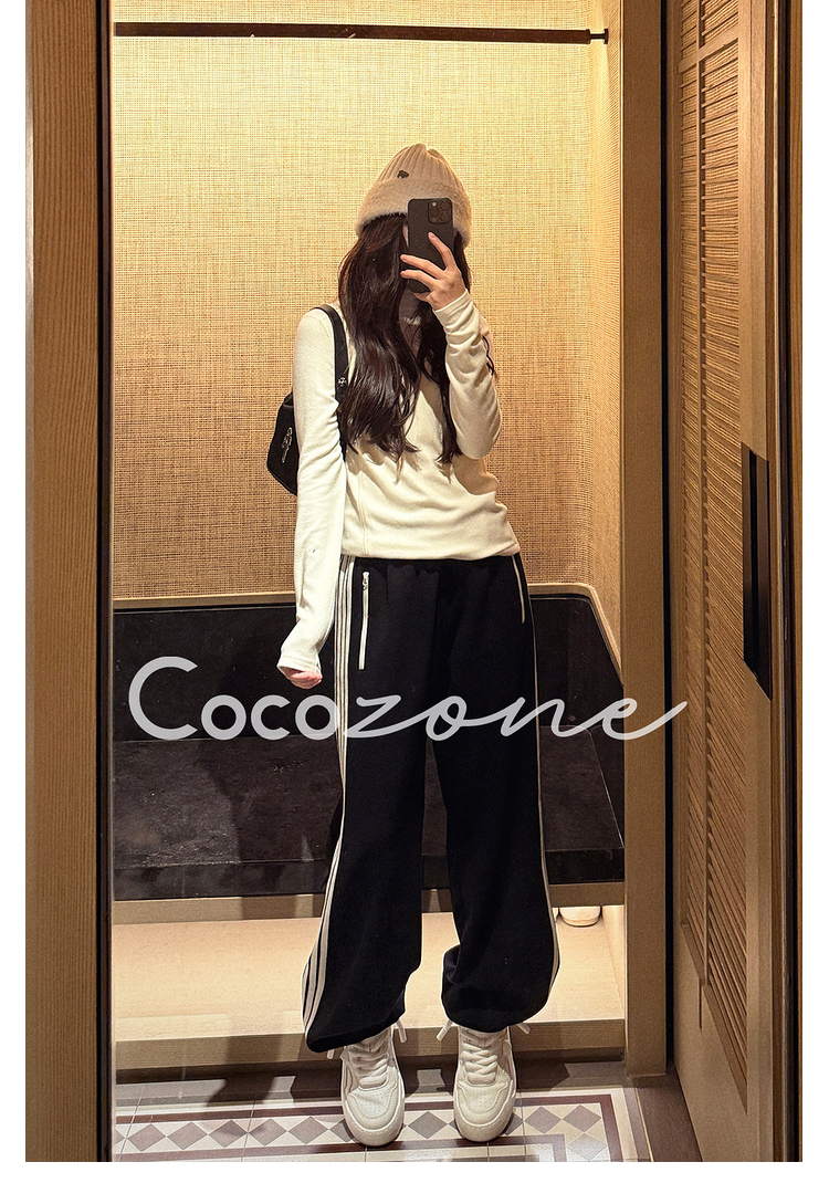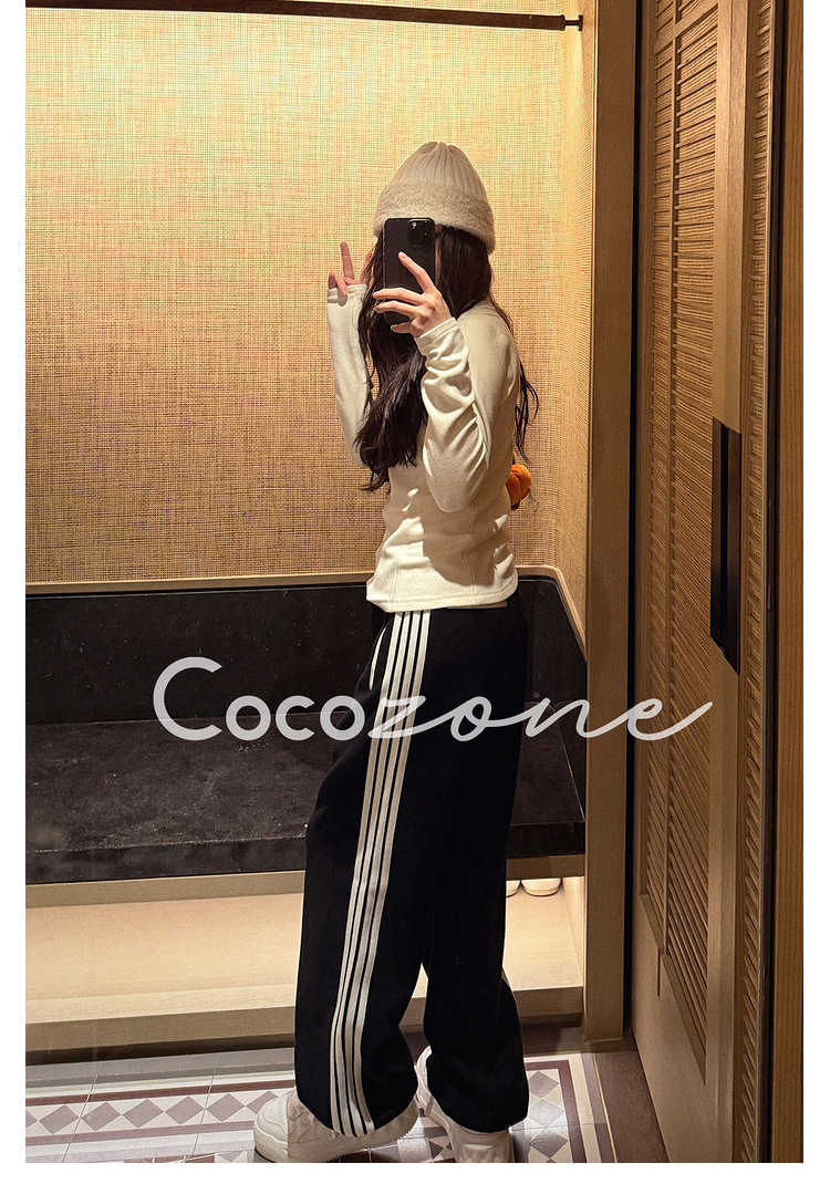 COCO ZONE 刘 一一 “珊瑚绒校服裤”侧边条纹柔软休闲裤 CD2A2908