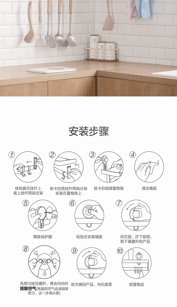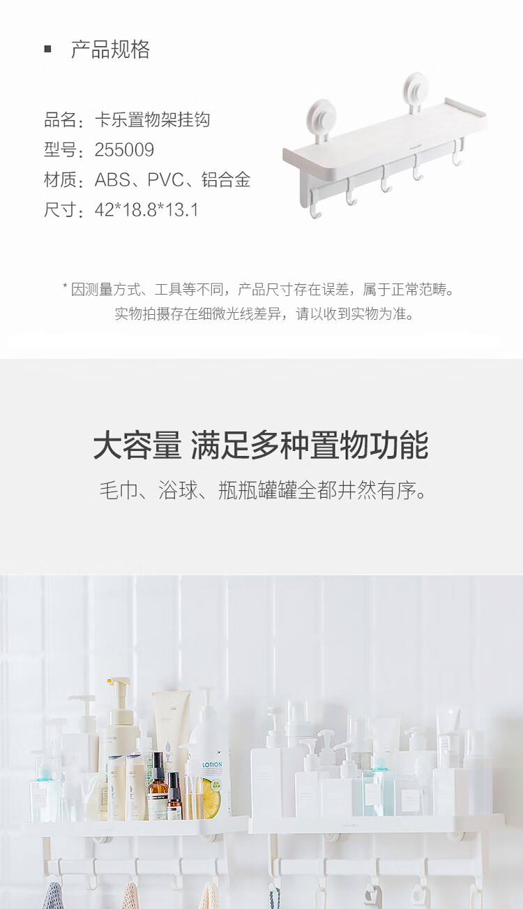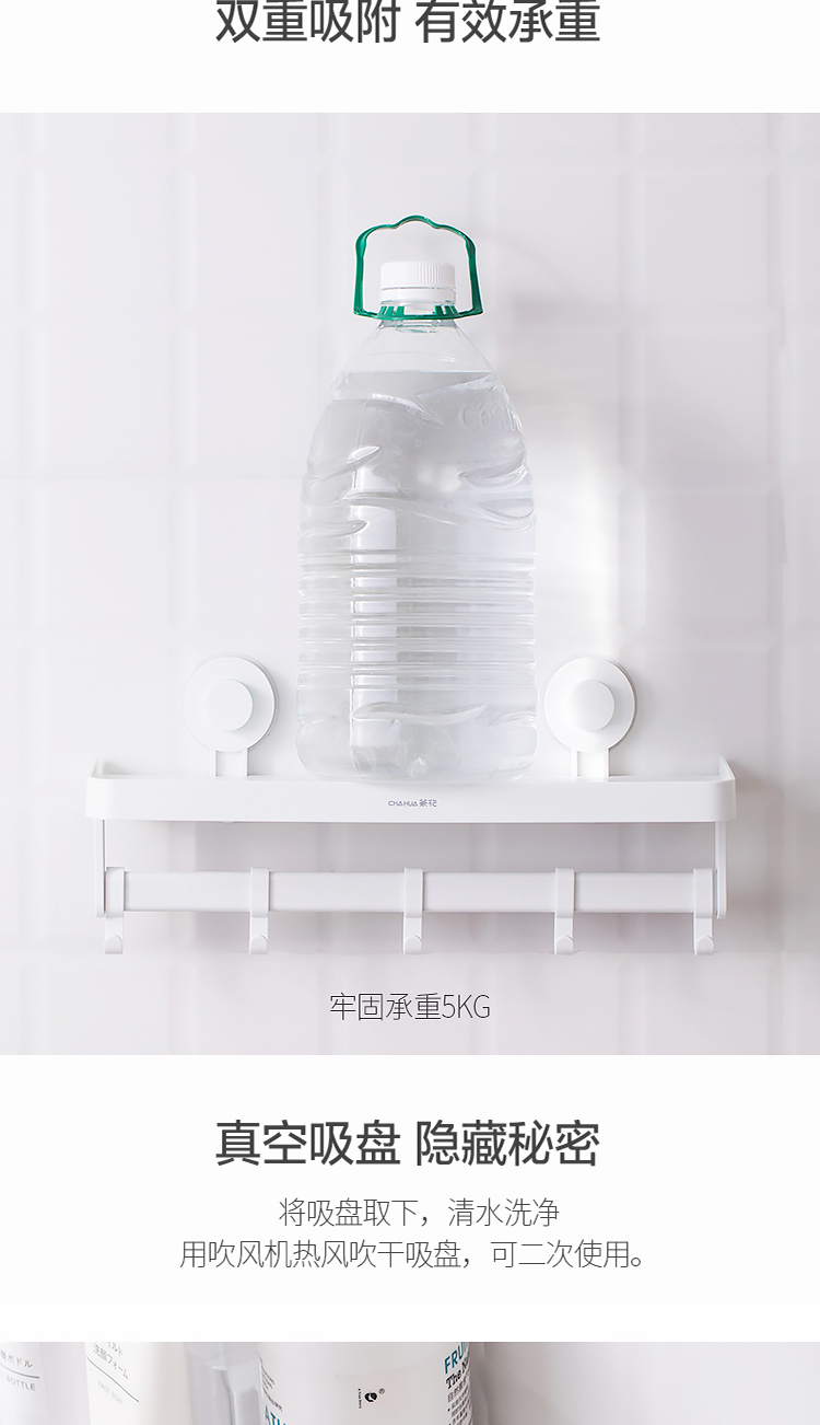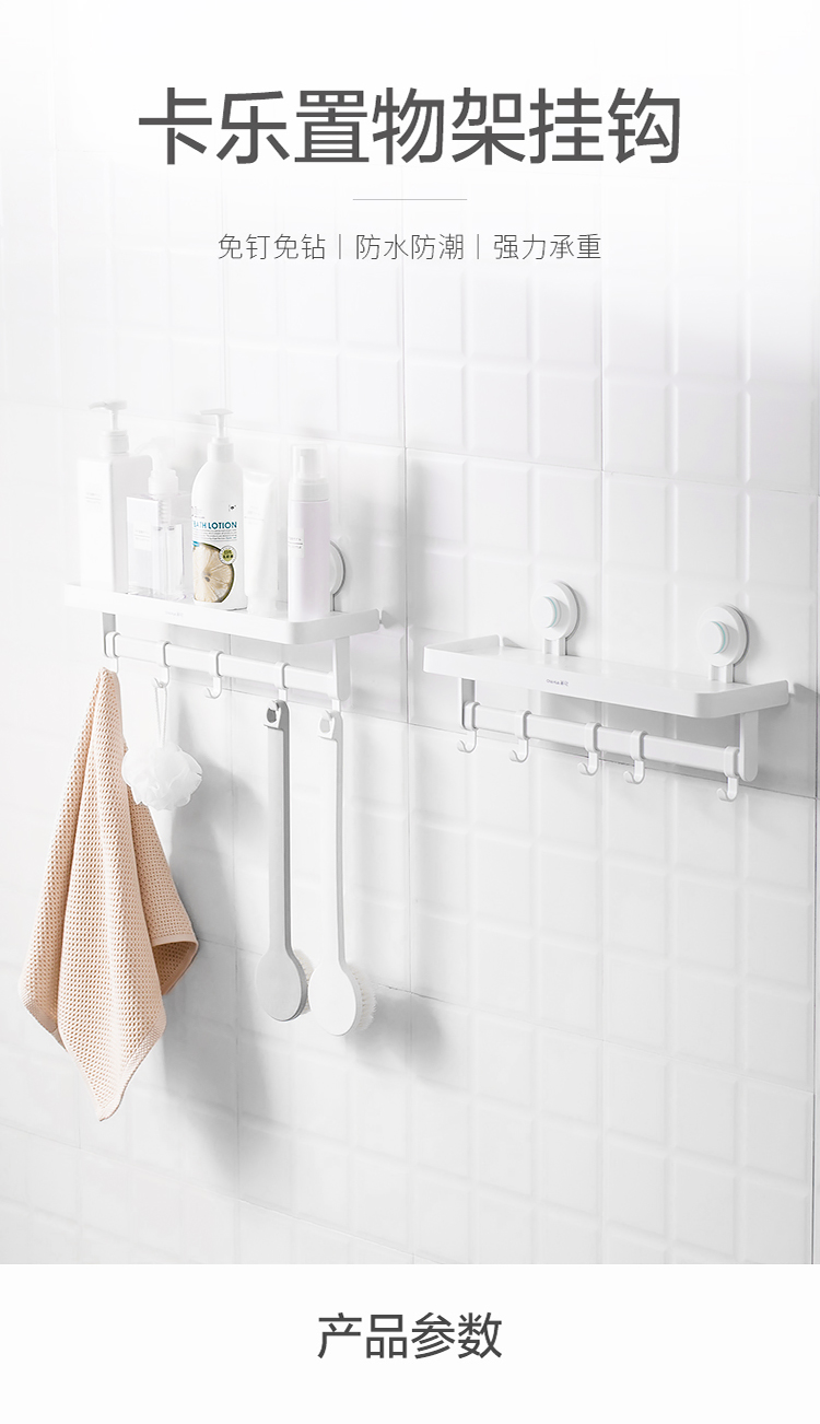 茶花 卡乐免打孔吸壁置物架挂钩 255009