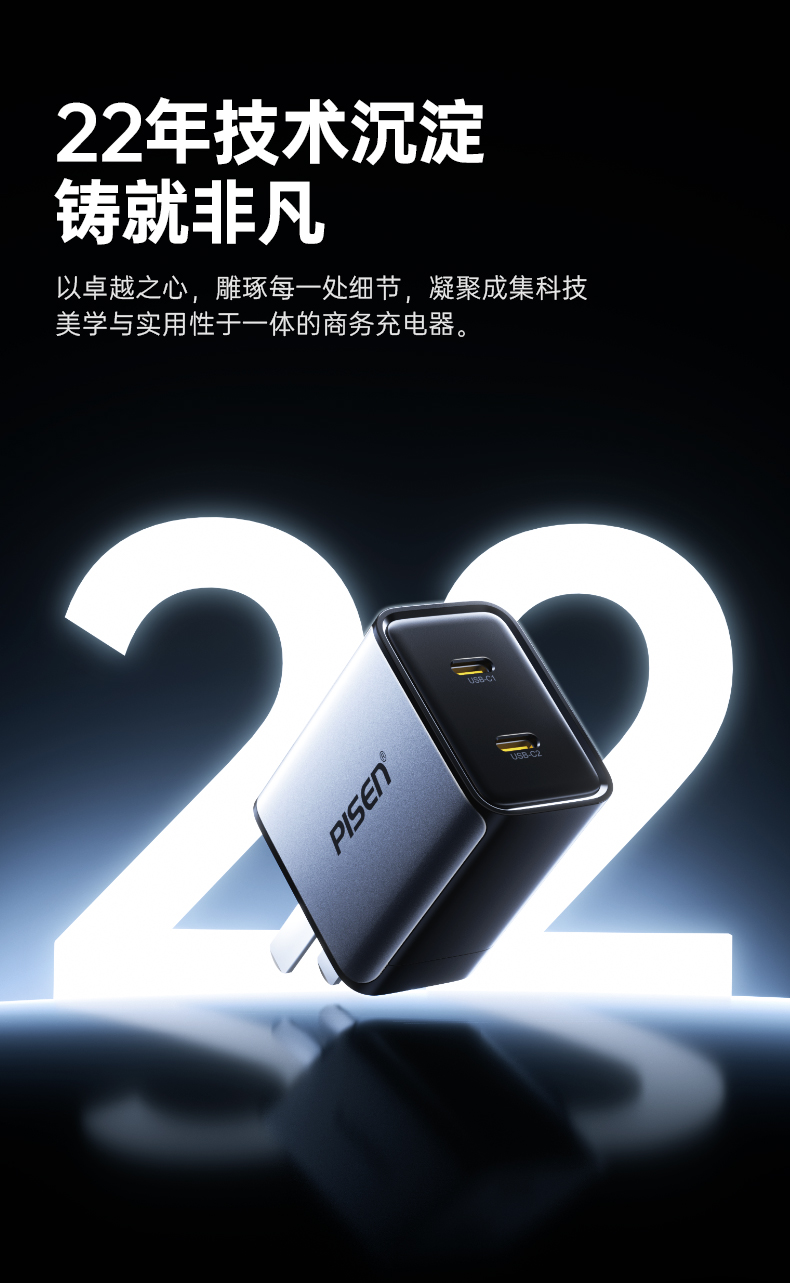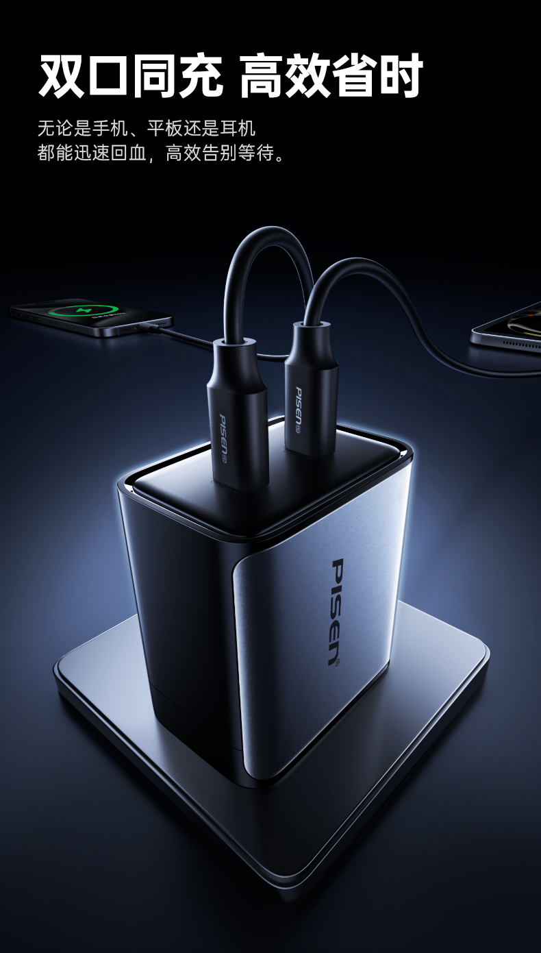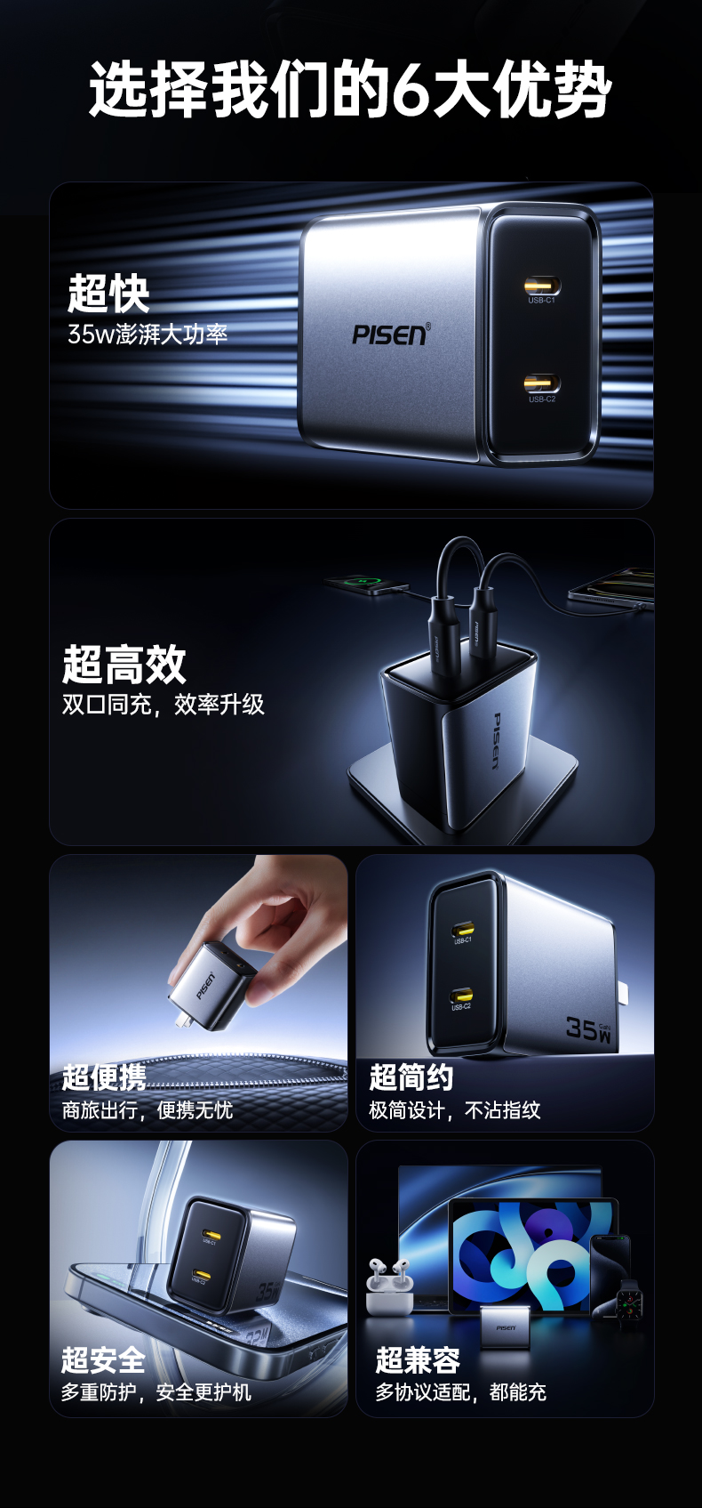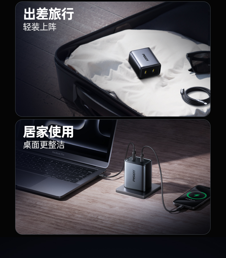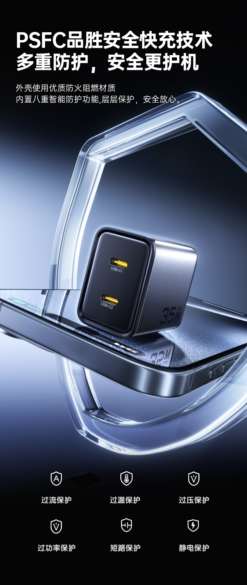 品胜 35W氮化镓闪电湃双口快速充电器2C苹果16充电头30W快充插头Type-c适用iPhone16/15/14华为小米手机平板小巧