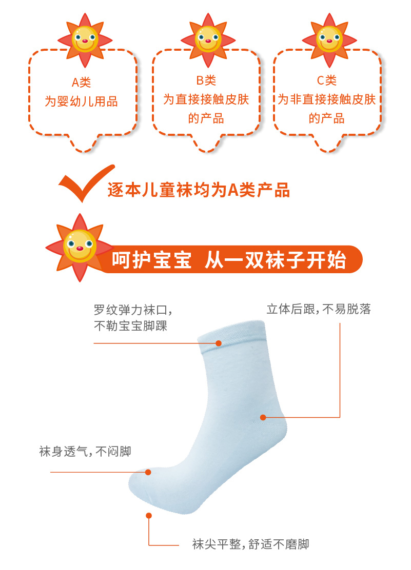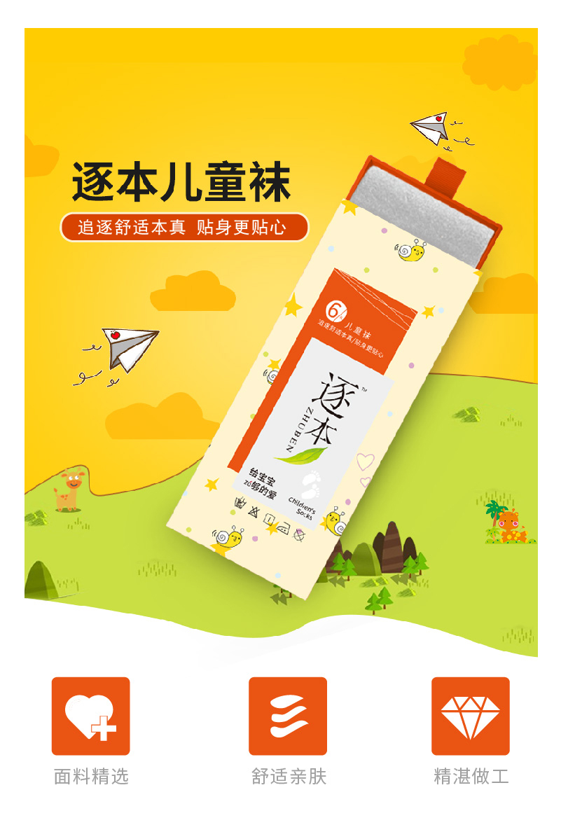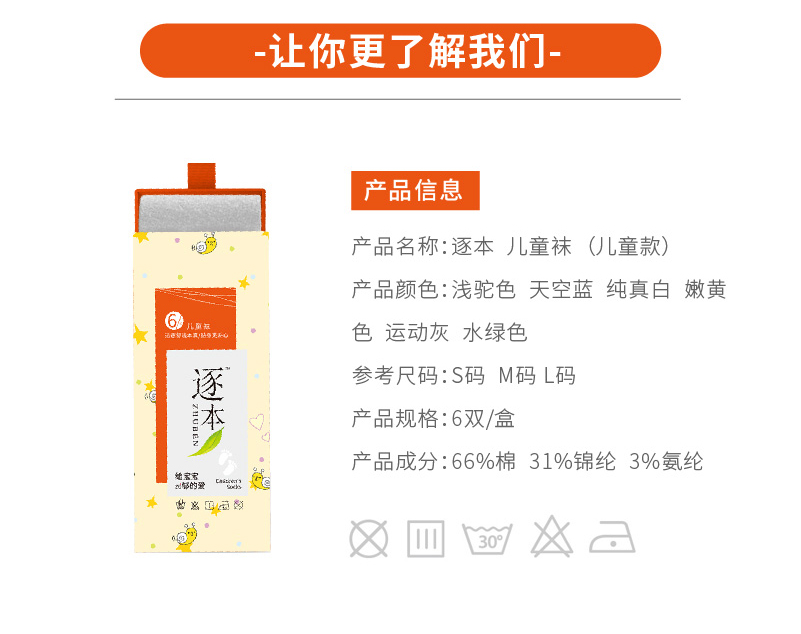 【博真优选】逐本儿童袜 6双/盒*1盒