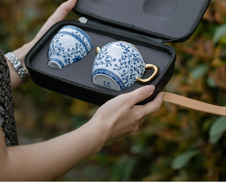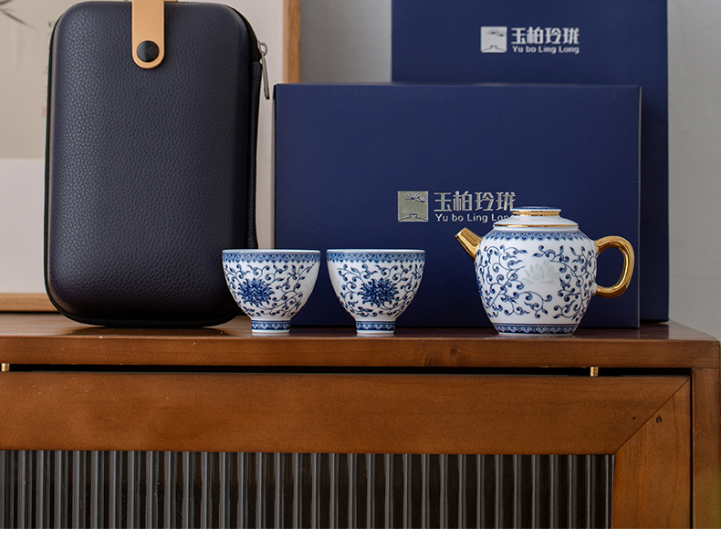 玉柏心如莲花一壶两杯旅行茶具