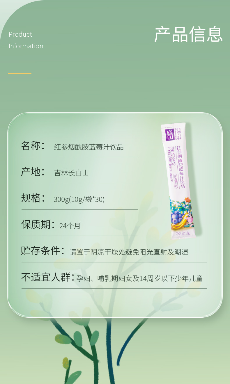 【长白山人参】红参蓝莓饮红参浓缩液人参饮料