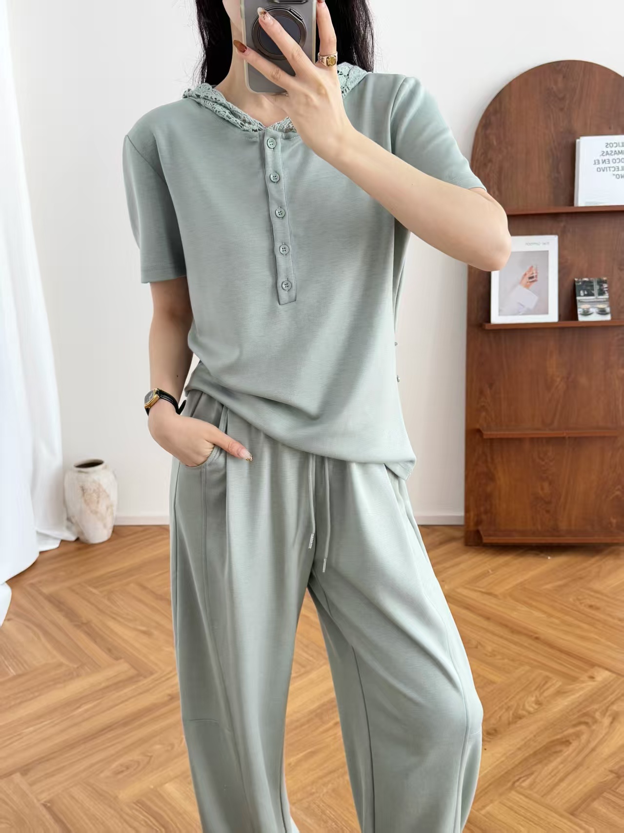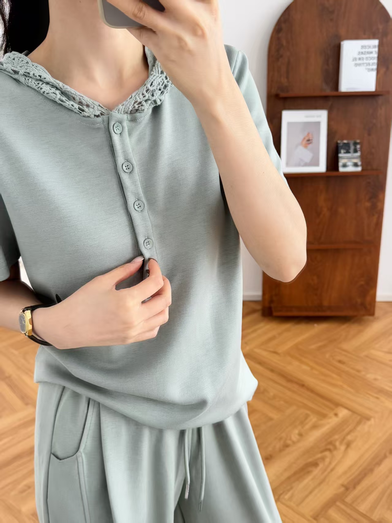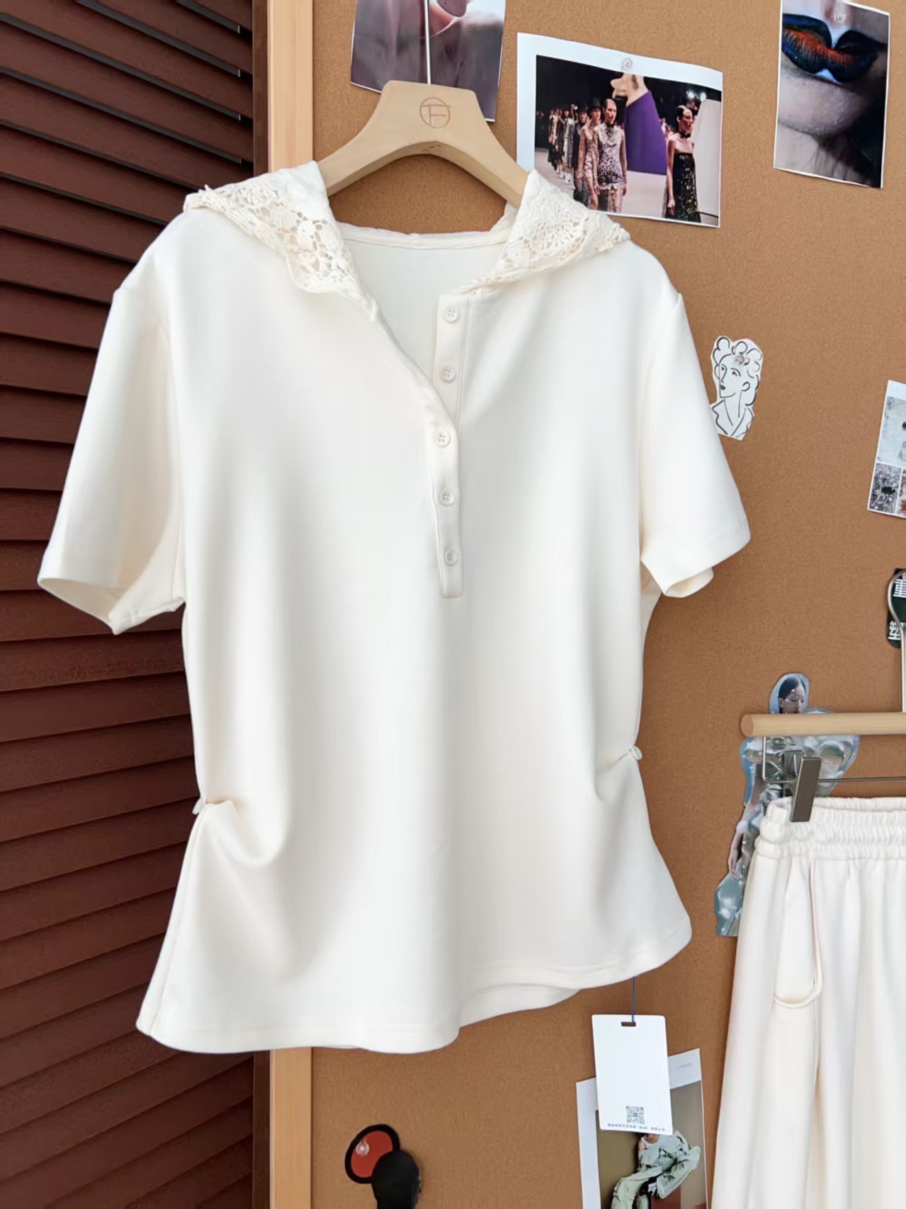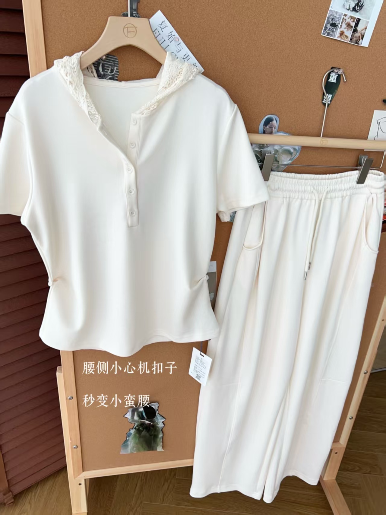 5颗排扣撩人颈线,可调节长短显瘦无敌,亲肤呼吸,阔腿藏肉走路带风~蕾丝连帽,仙气与酷感高级炸街。