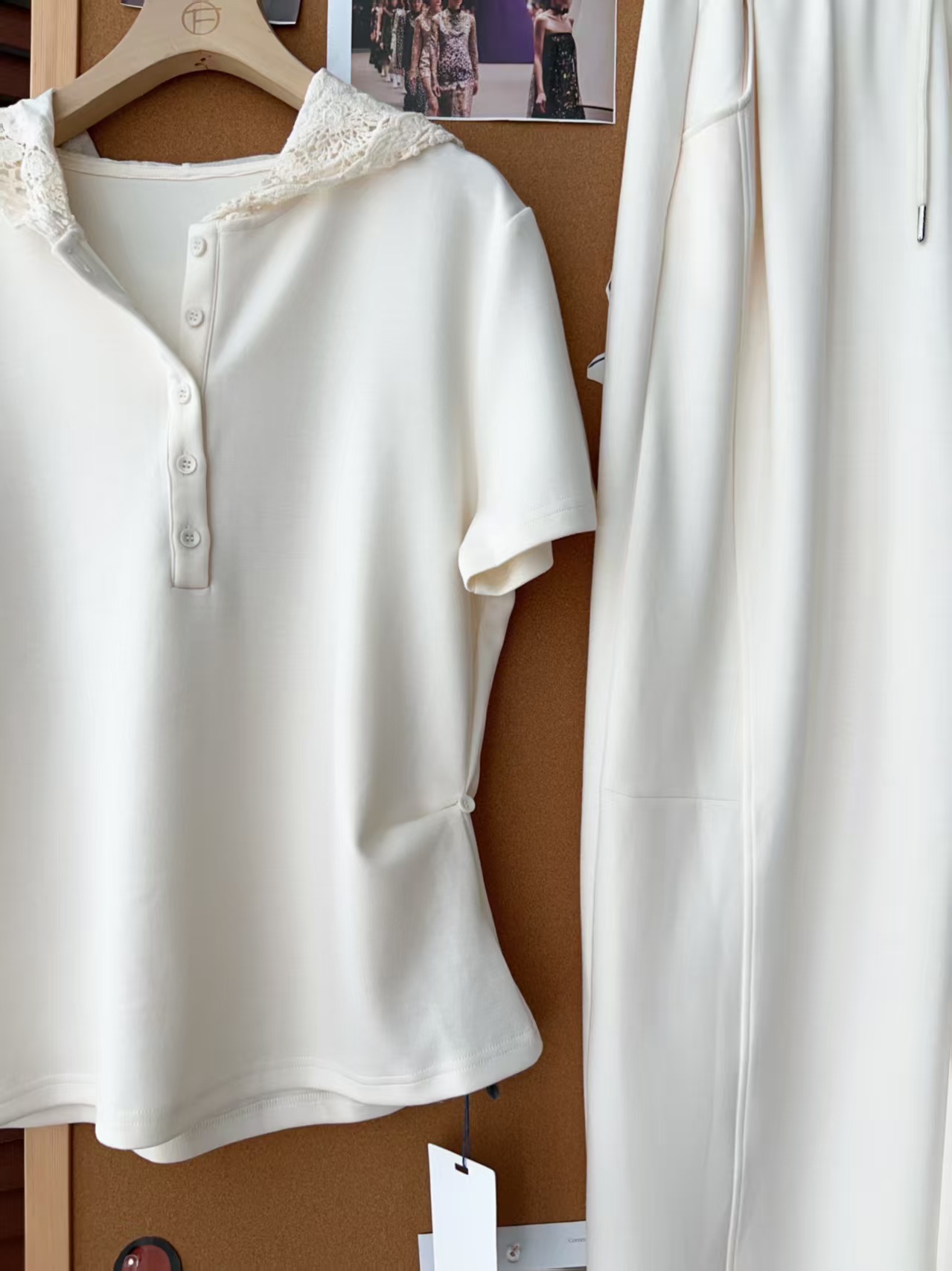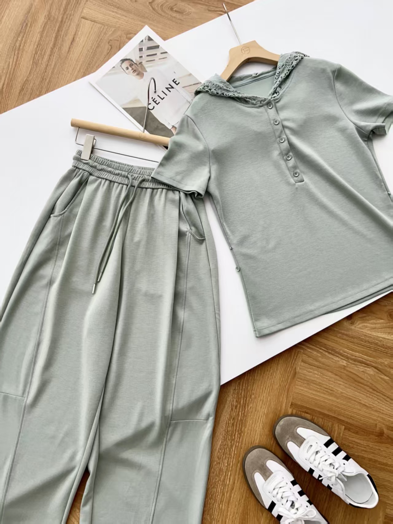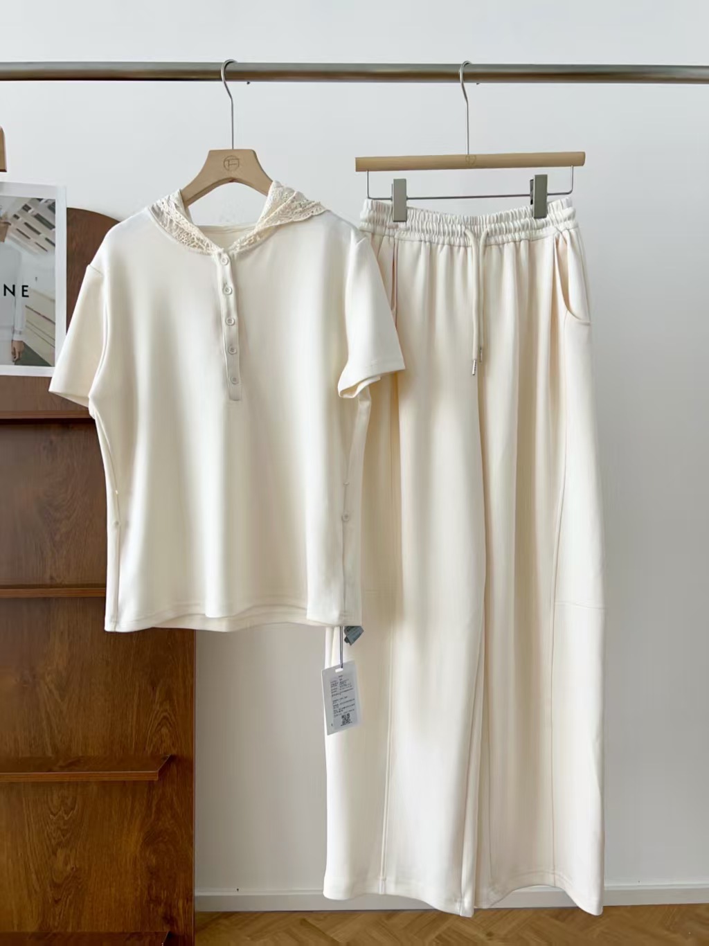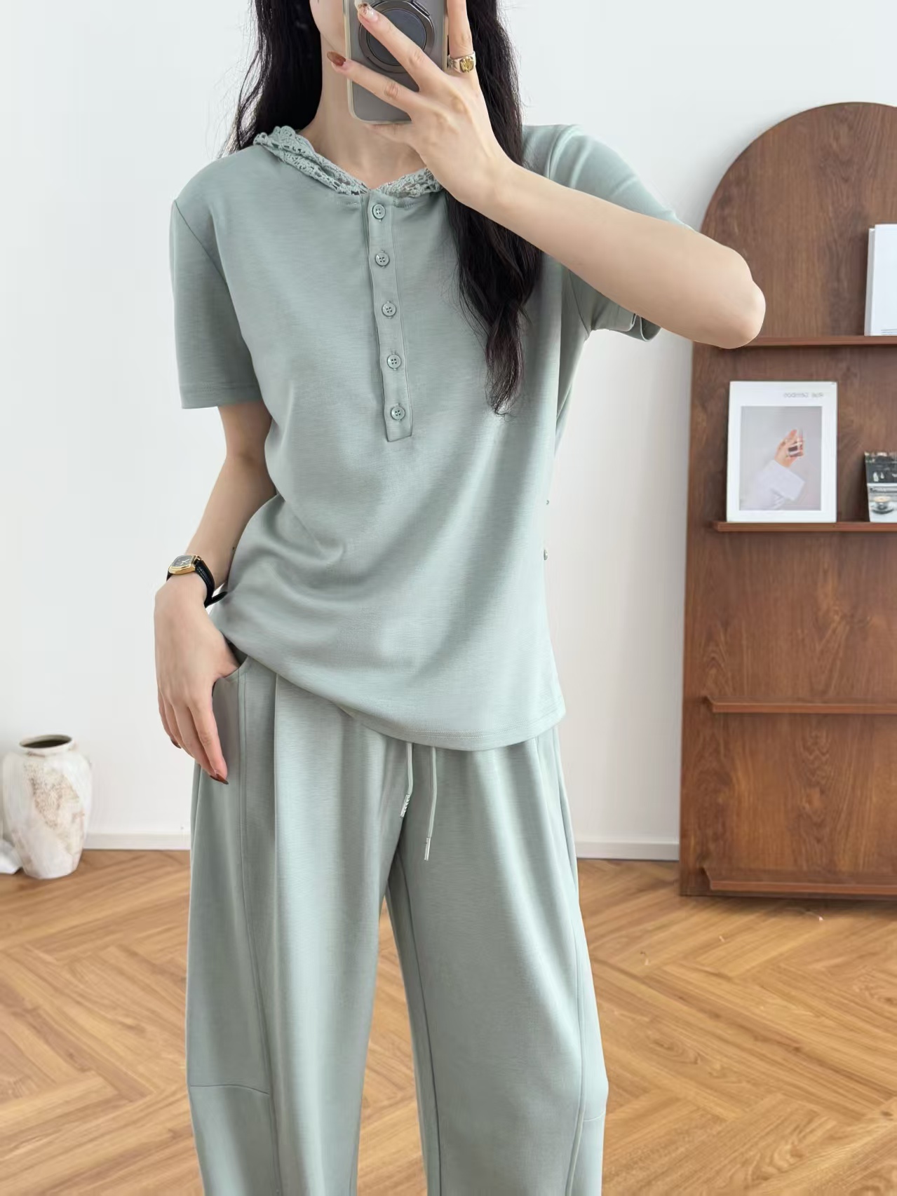 5颗排扣撩人颈线,可调节长短显瘦无敌,亲肤呼吸,阔腿藏肉走路带风~蕾丝连帽,仙气与酷感高级炸街。
