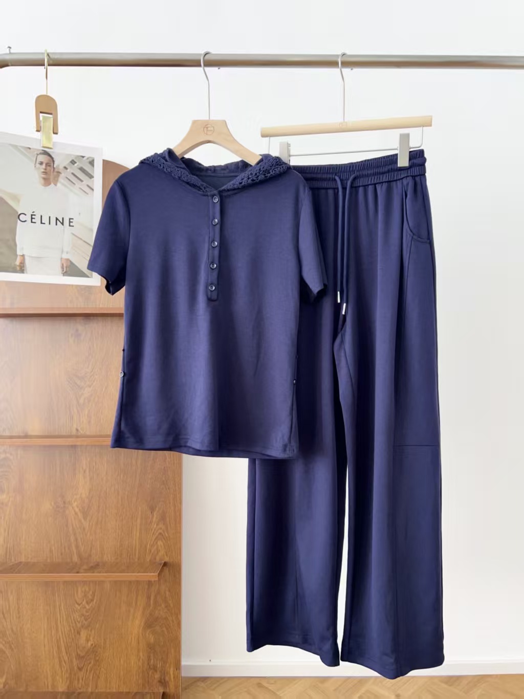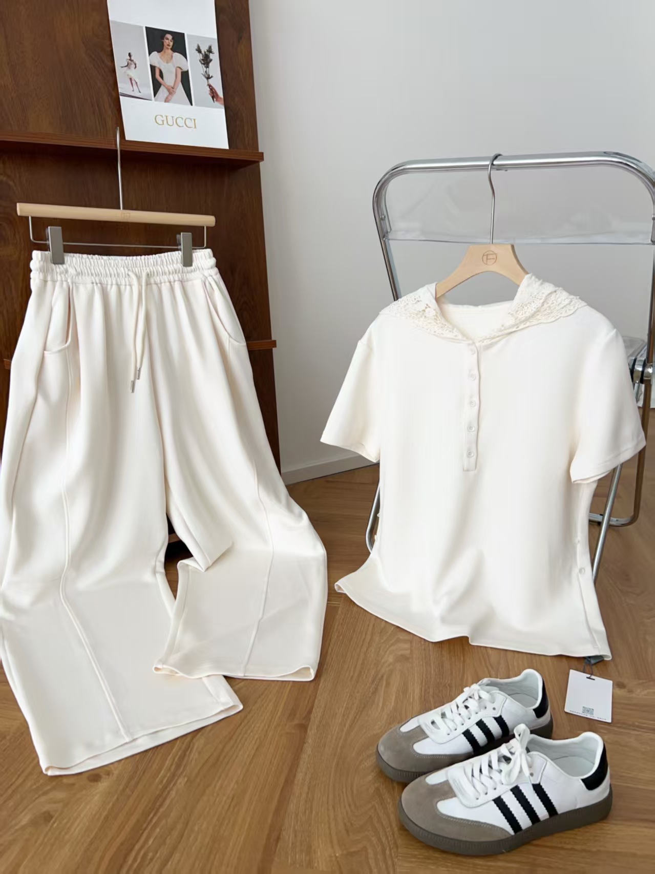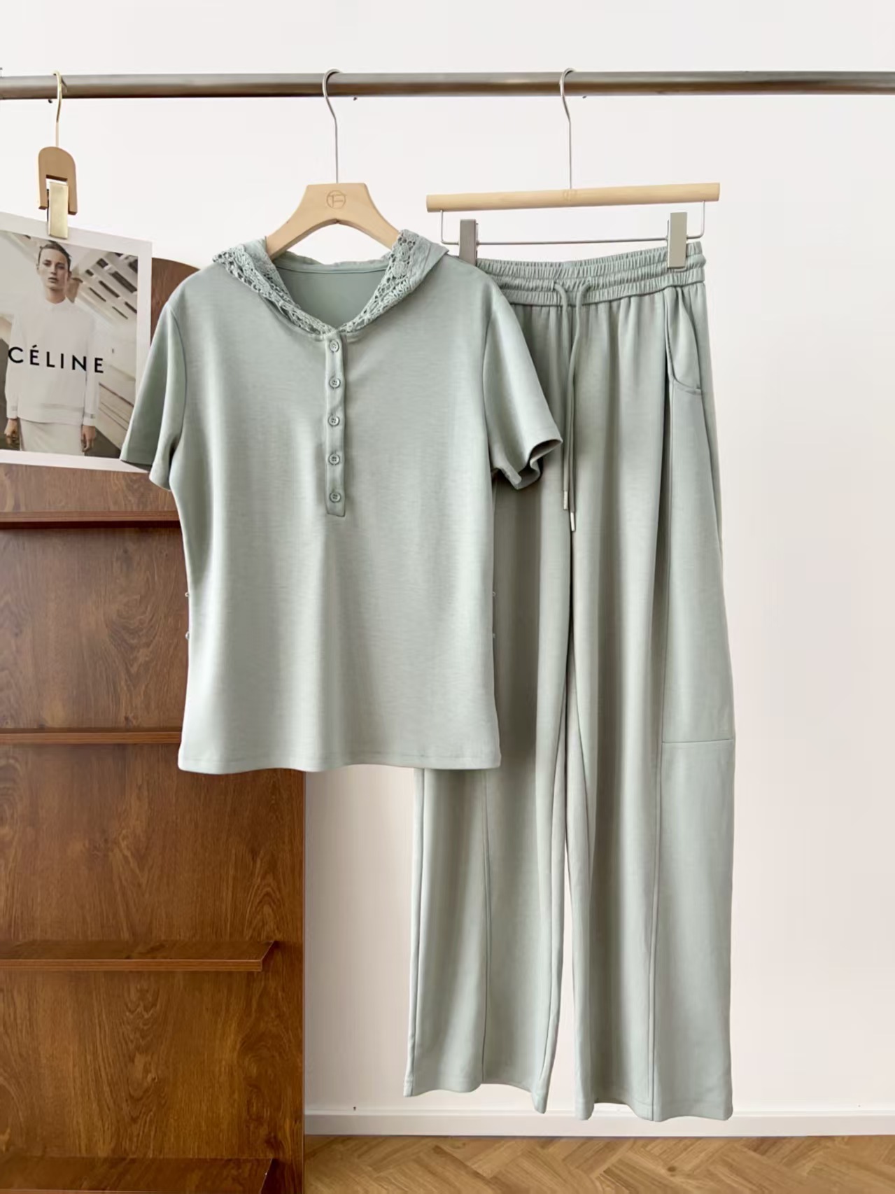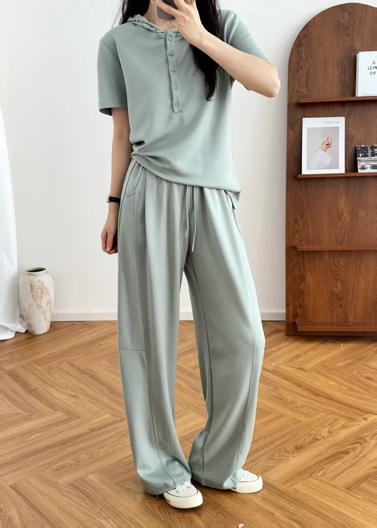 5颗排扣撩人颈线,可调节长短显瘦无敌,亲肤呼吸,阔腿藏肉走路带风~蕾丝连帽,仙气与酷感高级炸街。