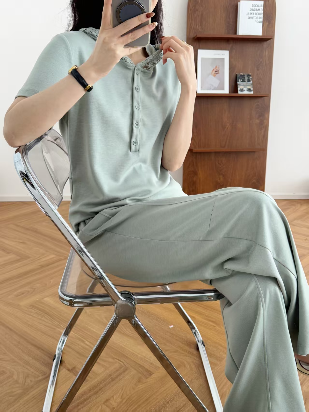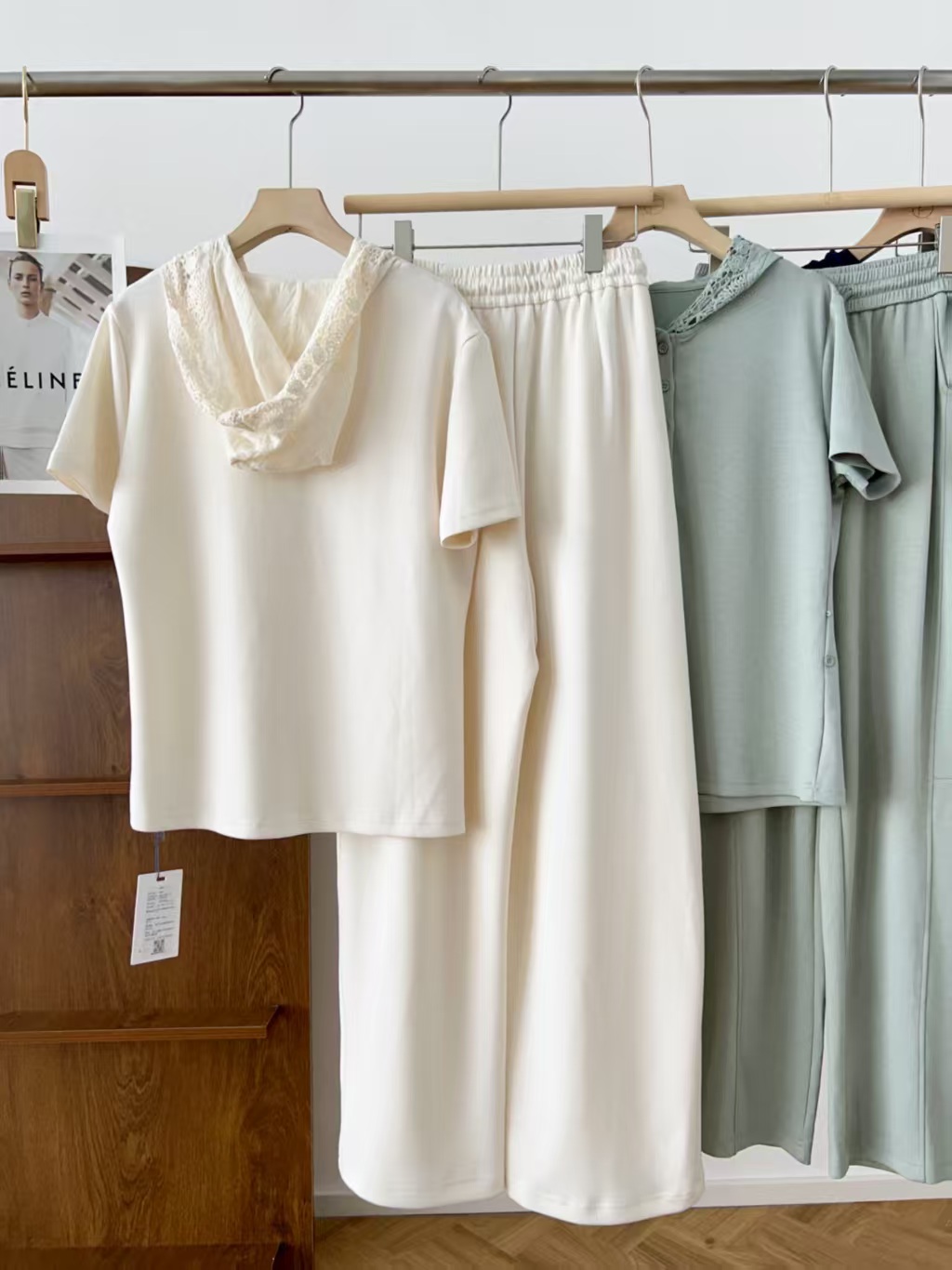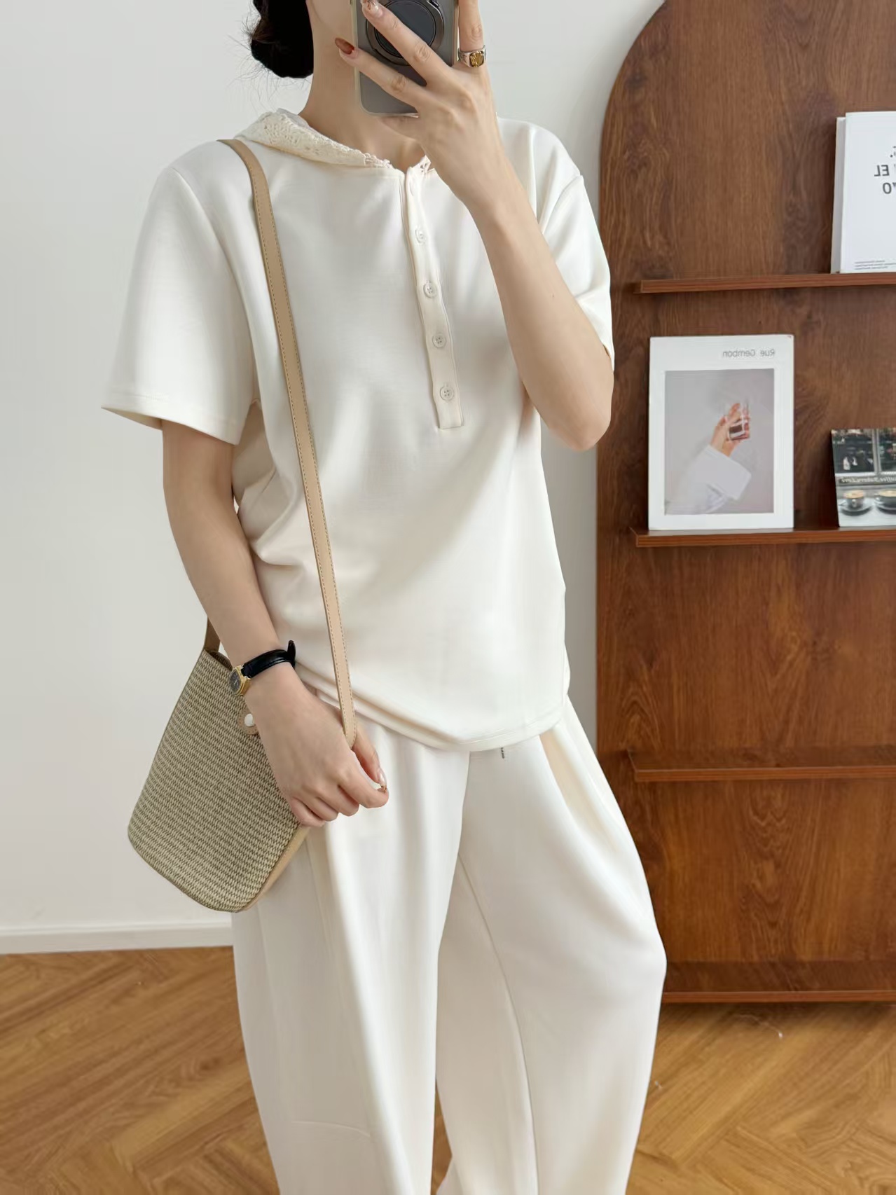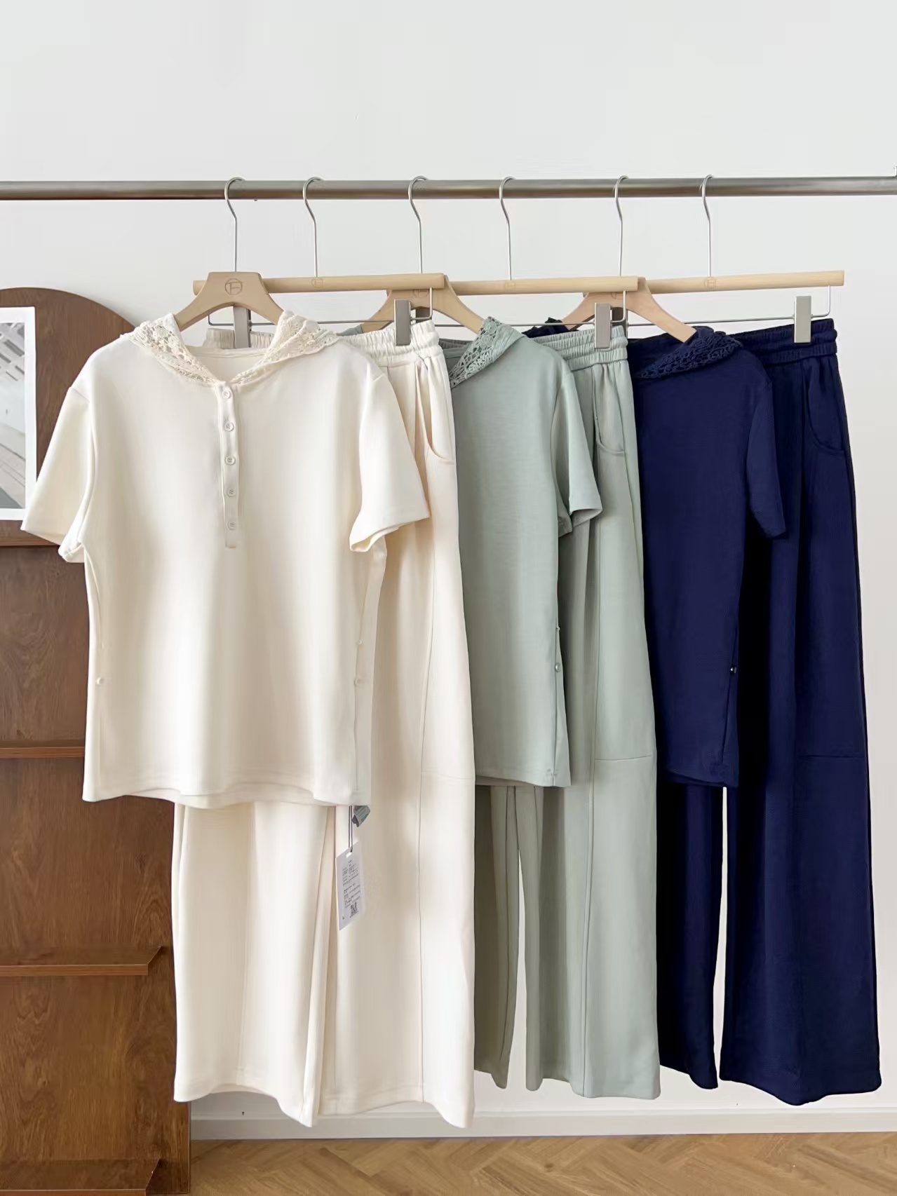 5颗排扣撩人颈线,可调节长短显瘦无敌,亲肤呼吸,阔腿藏肉走路带风~蕾丝连帽,仙气与酷感高级炸街。