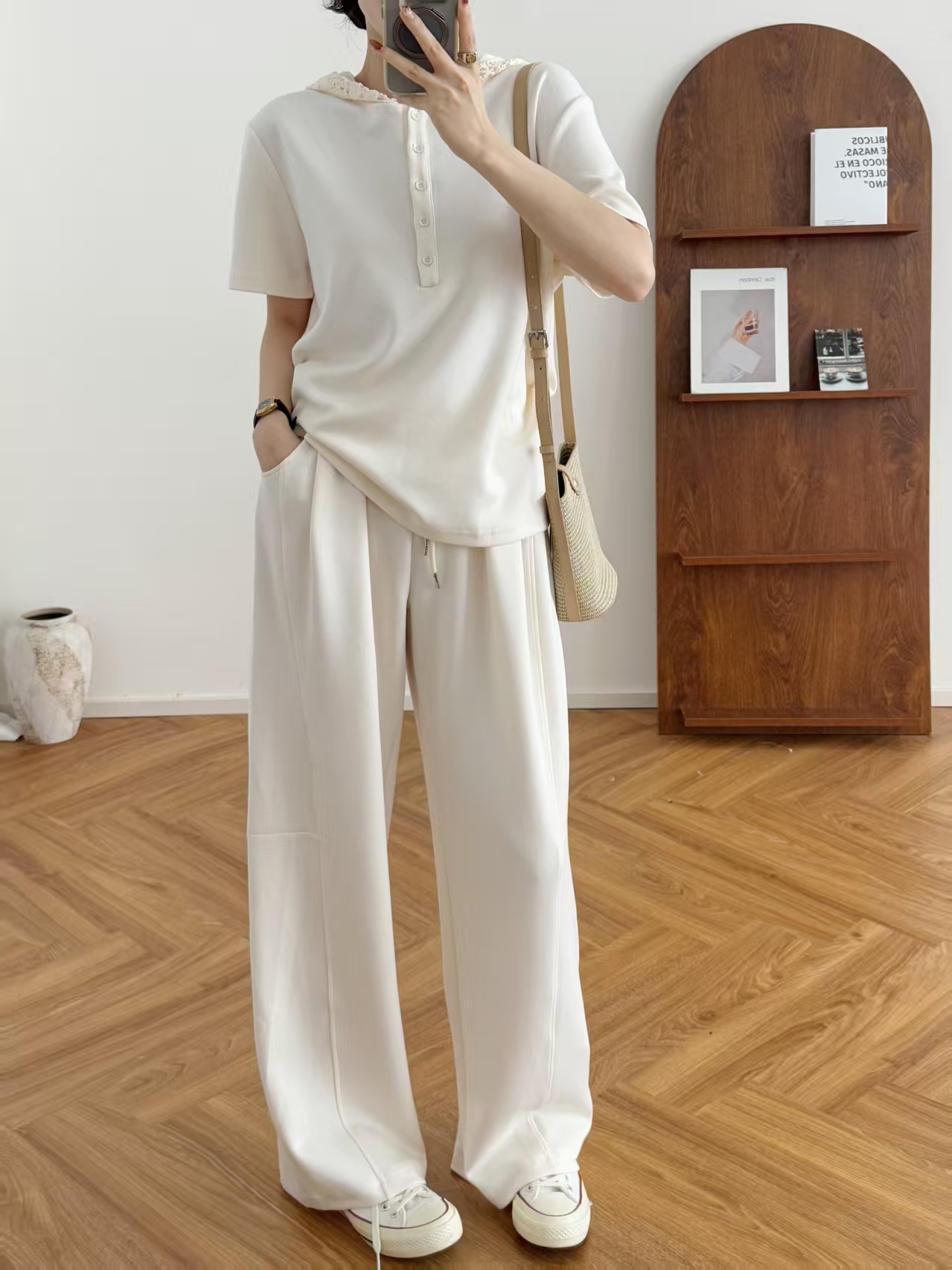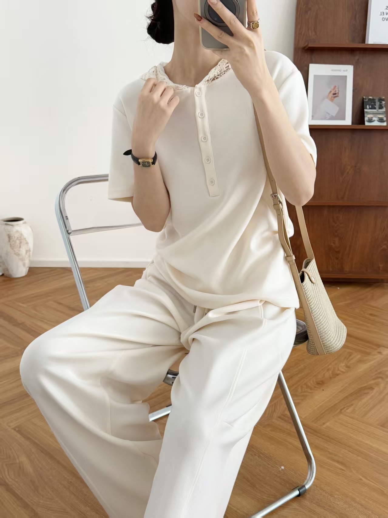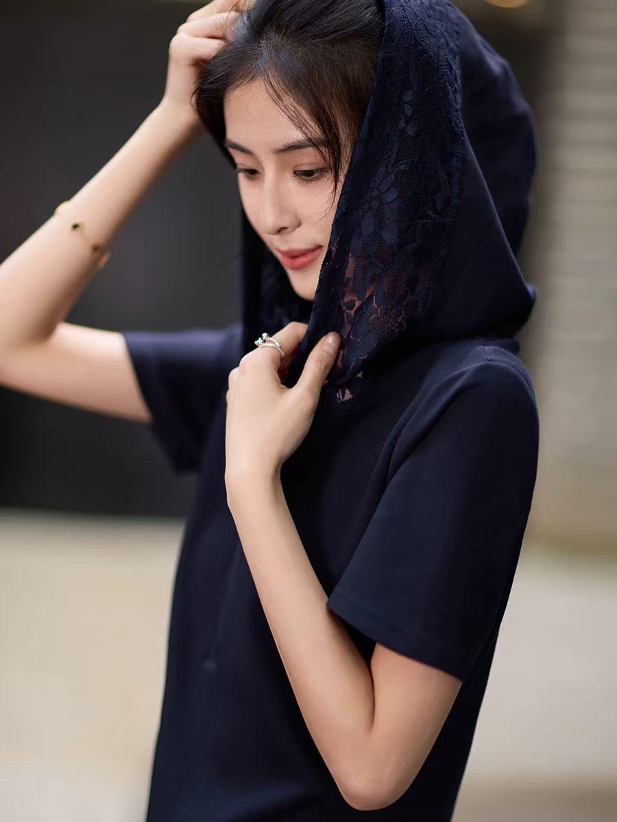 体感如莫代尔般亲肤柔软,面料有垂感也有筋骨感,净版的大气,蕾丝小细节给整体增加女人味精致~