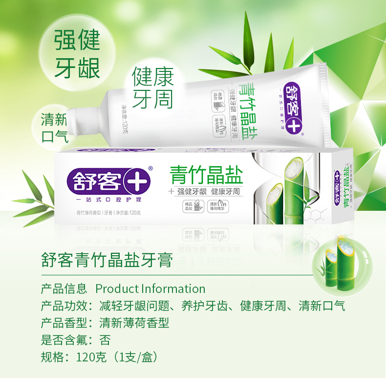 舒客青竹晶盐牙膏120g*3 6940477401648