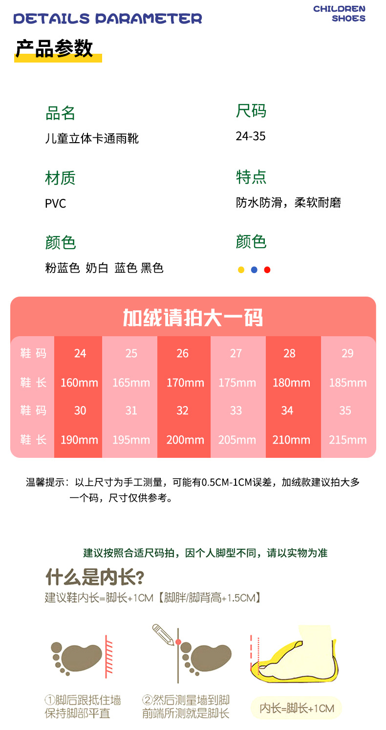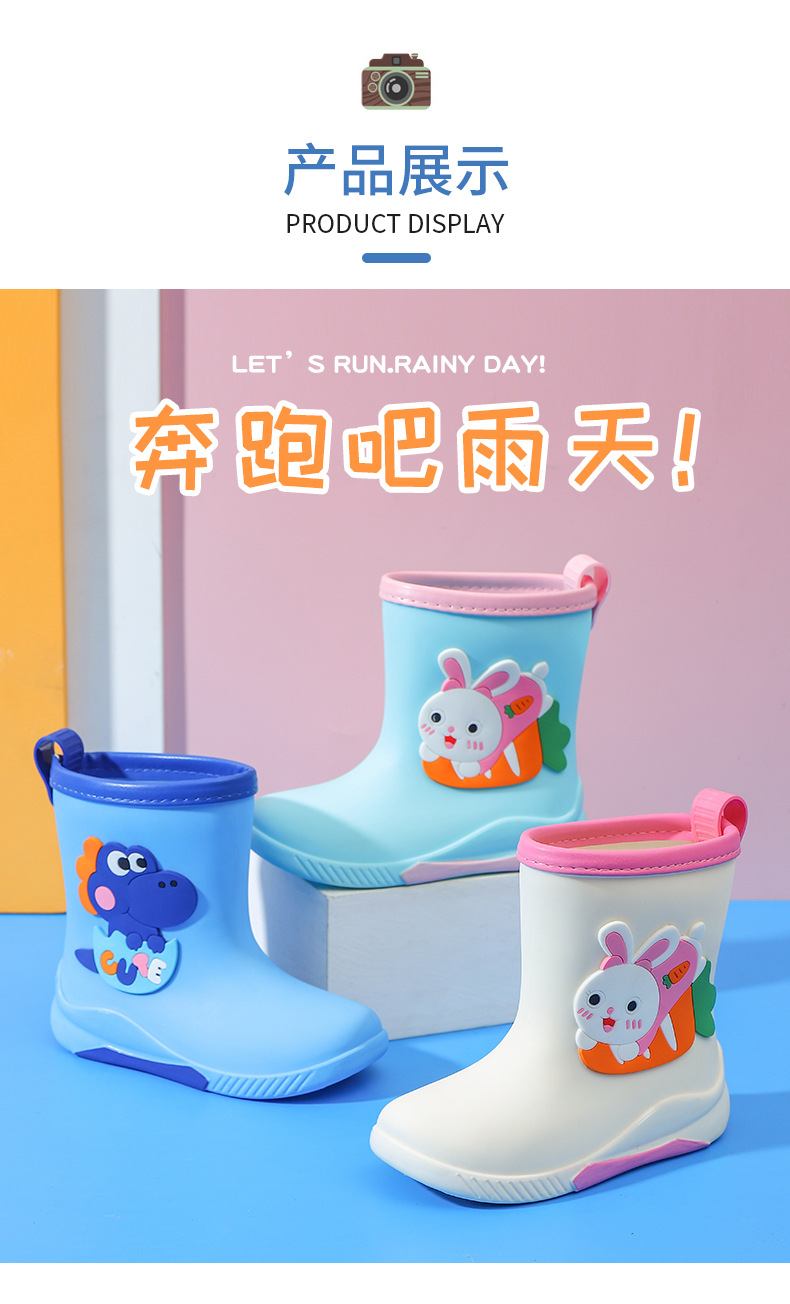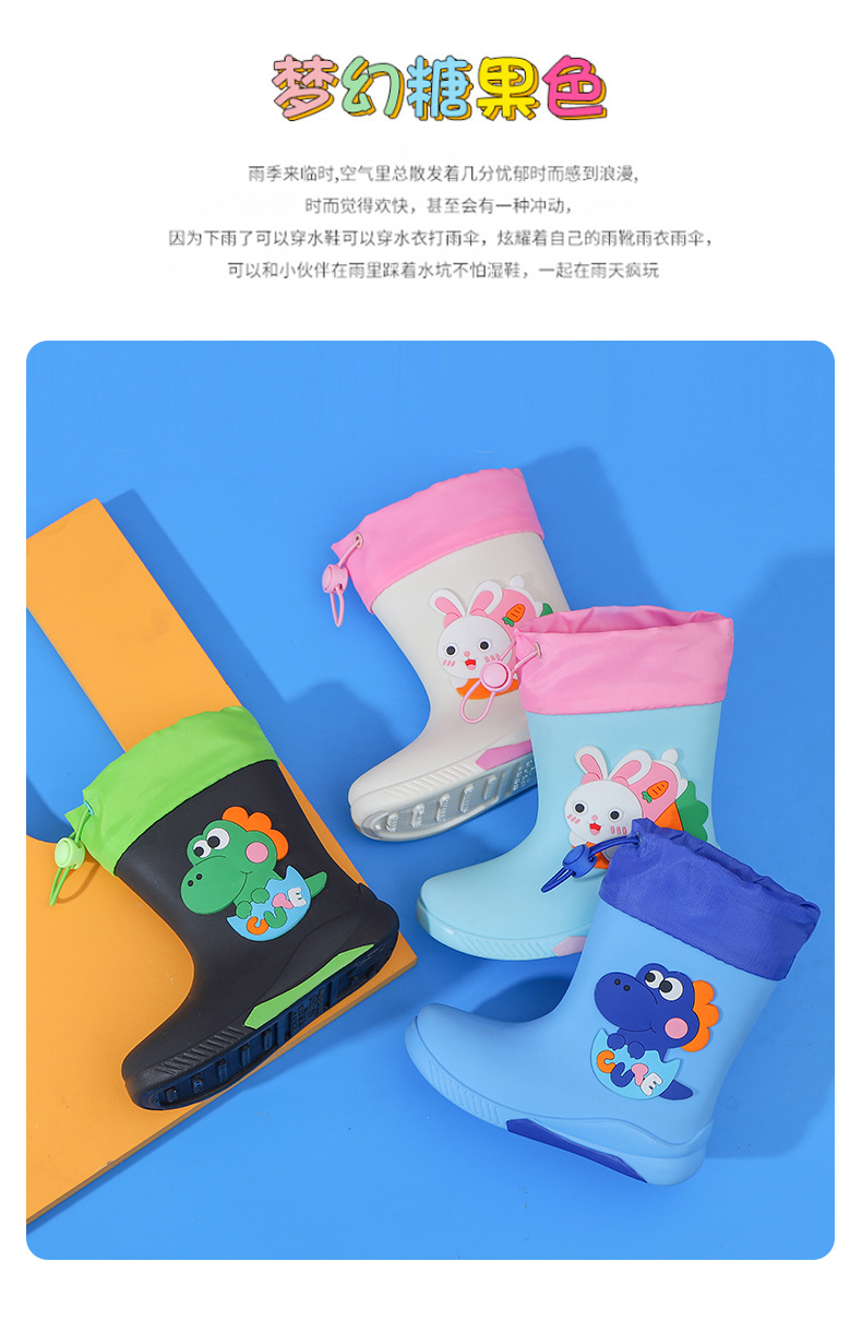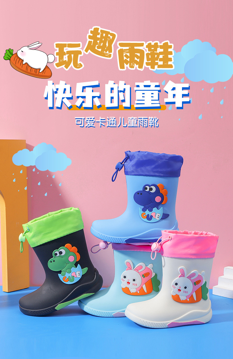 【奔跑吧雨天!】儿童卡通雨鞋加绒可拆卸男女童雨鞋小学生中大童防水雨靴中筒水鞋