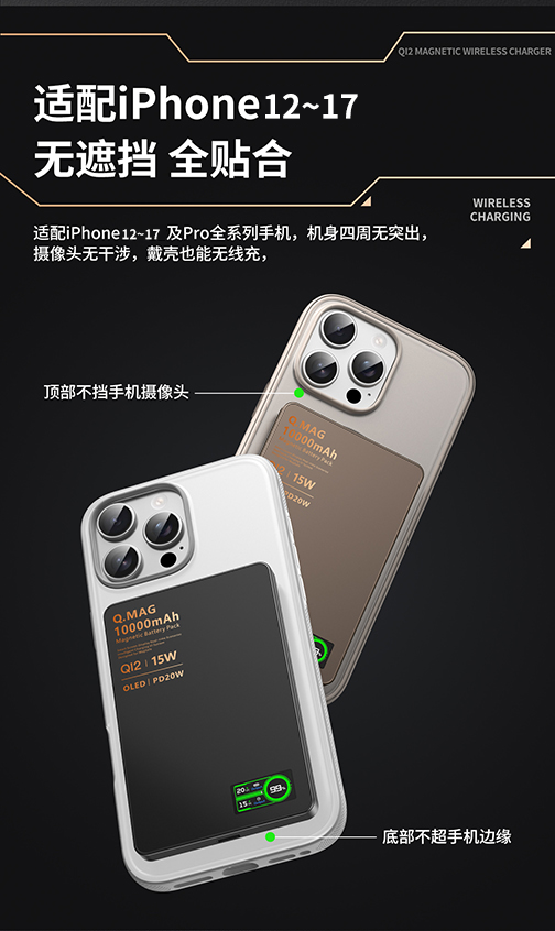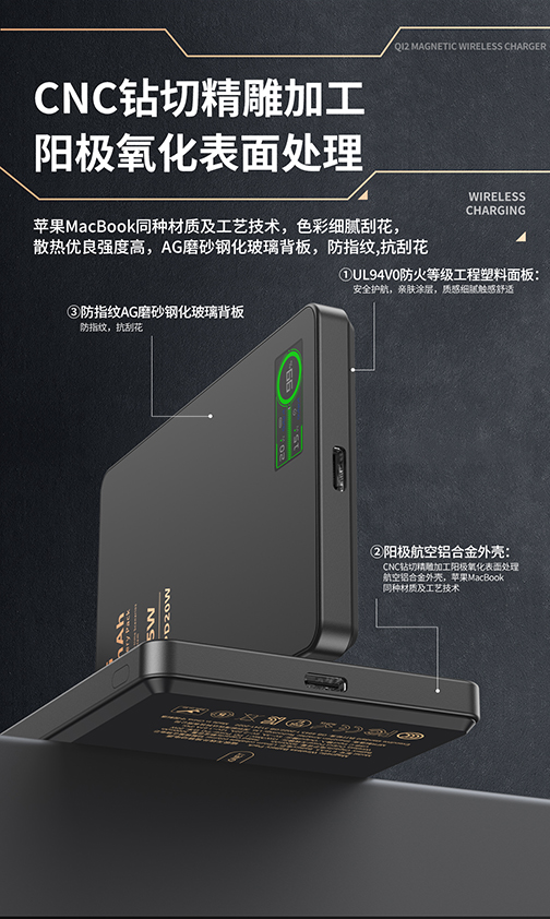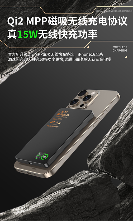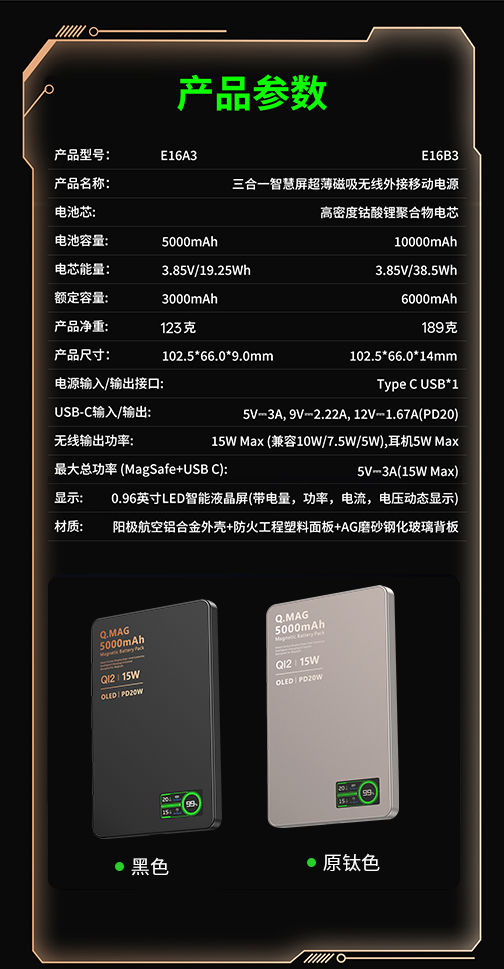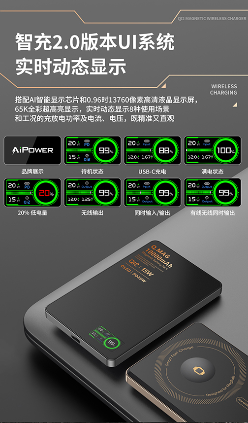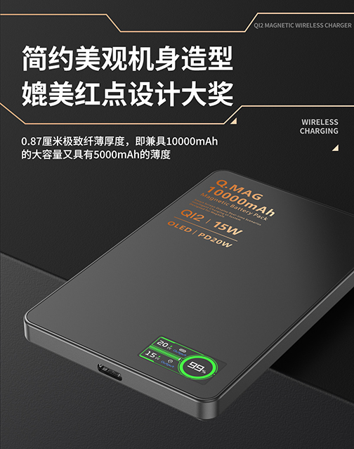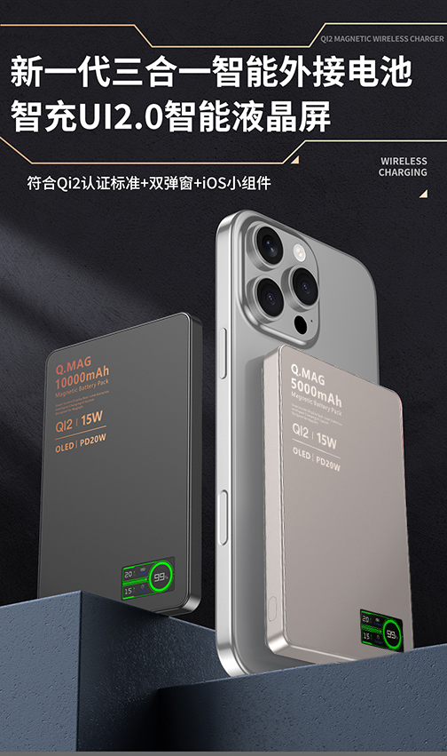 【超模君严选 华为鸿蒙合作品牌 外接电池 免费试用7天】适合于苹果安卓系统,超薄卡片式,3C认证,智充U12.0,智能液晶屏【原钛色1万毫安 预售16号发货】