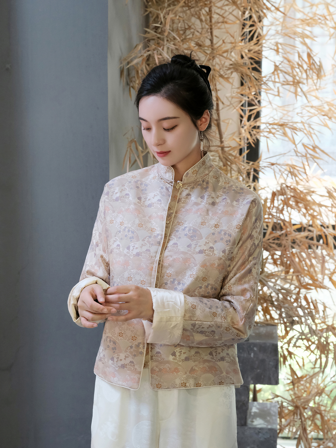 盛唐牡丹| 扇子纹重缎宋锦双面穿外套(不夹棉) [特价品]