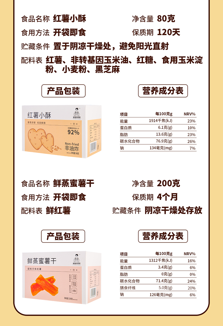 老爸的梦想 红薯小酥、紫薯小脆、鲜蒸蜜薯干