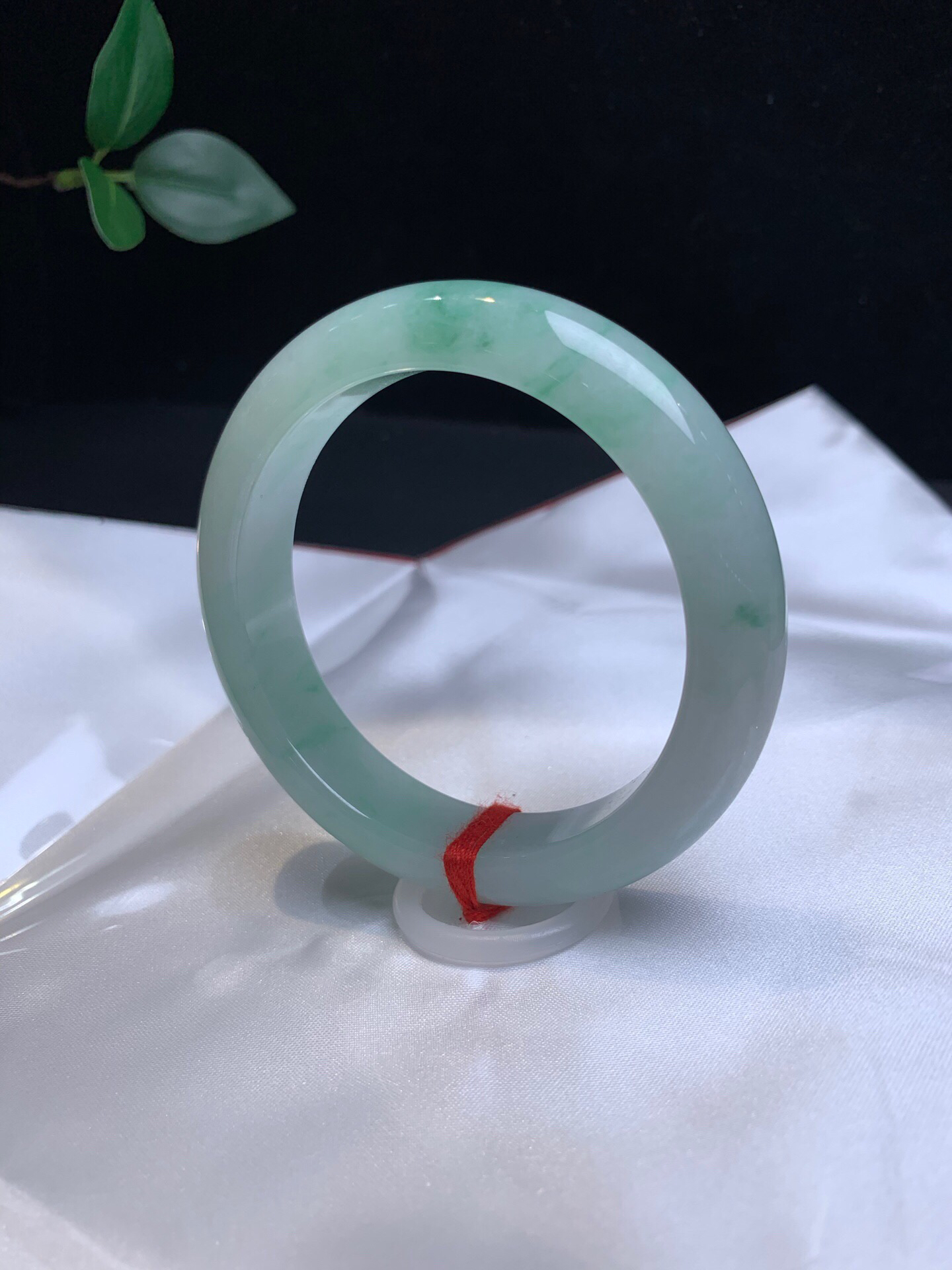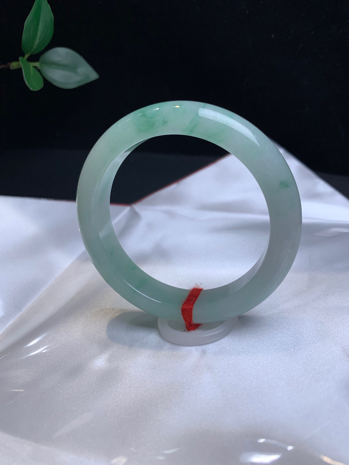 620025,56.5飘花正圈手镯、清新干净,飘清新绿花,干净 均匀