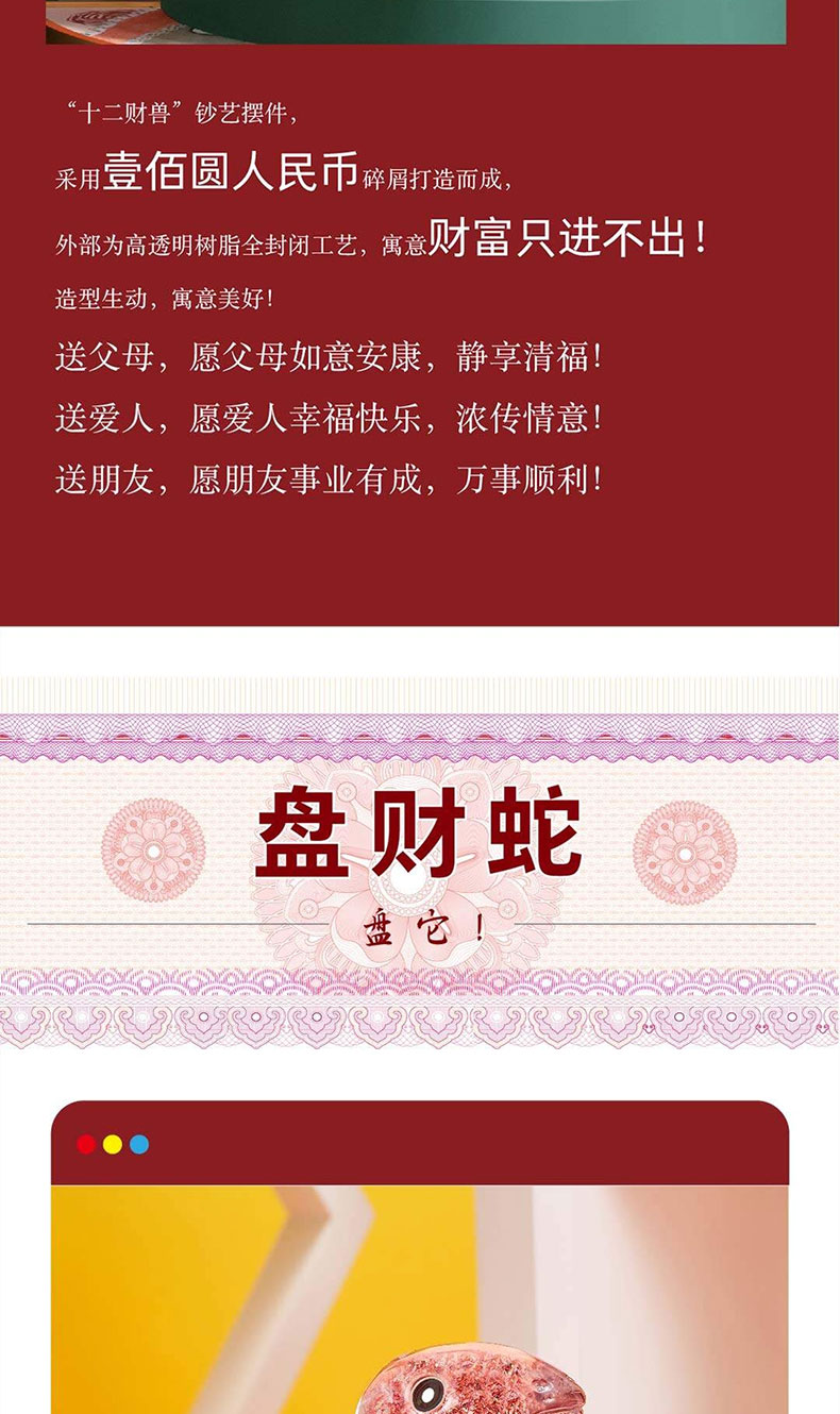 【北京印钞】盘财蛇—十二生肖系列2025年钞艺摆件