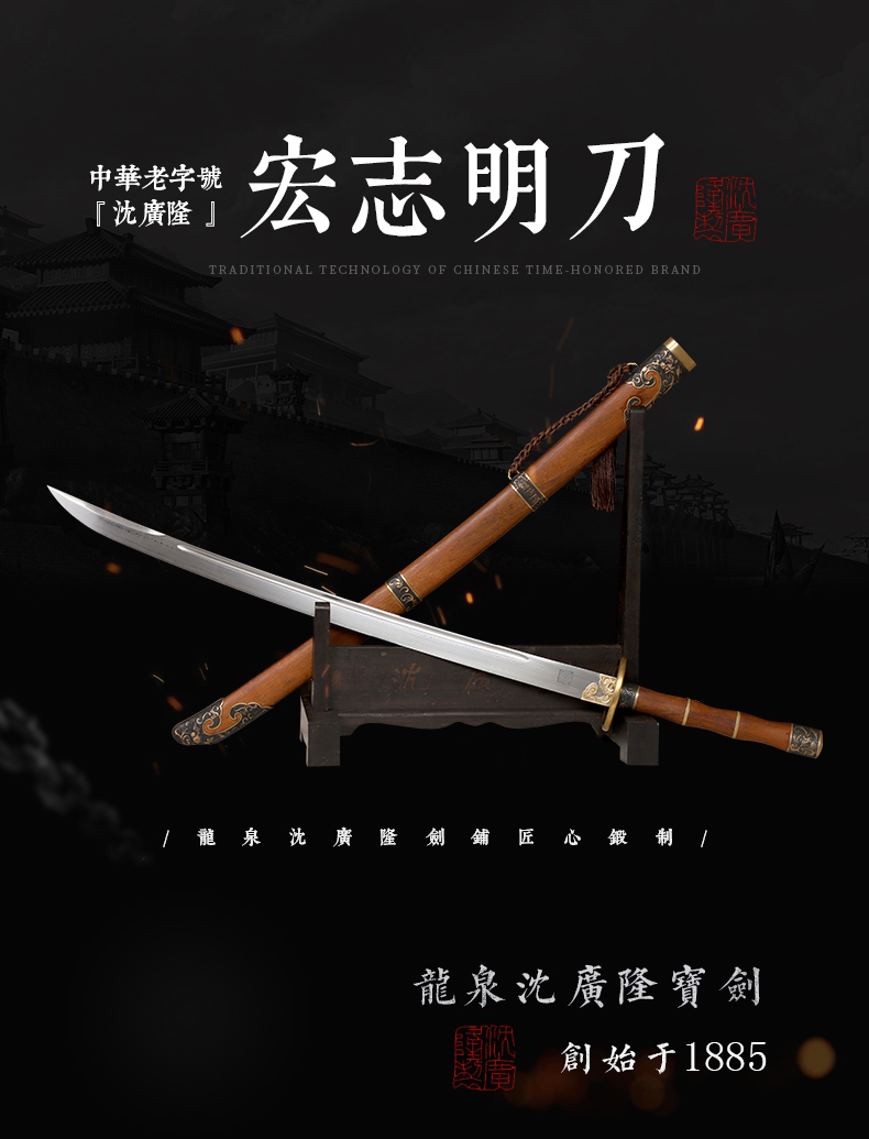 - 龙泉沈广隆剑舖创始于1885年(清光绪)位于浙江省龙泉市,是当地唯一一家“子承父业”一脉相承的中华老字号宝剑生产企业,是国家级非物质文化遗产龙泉宝剑项目保护单位,并以“天下第一剑”闻名于海内外....