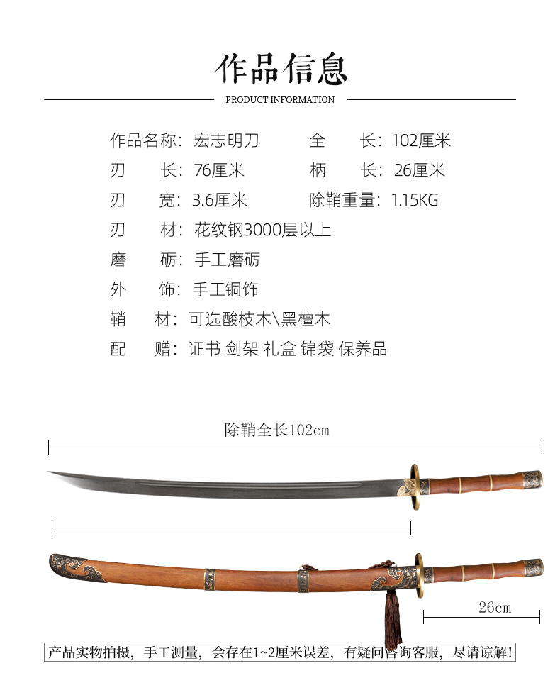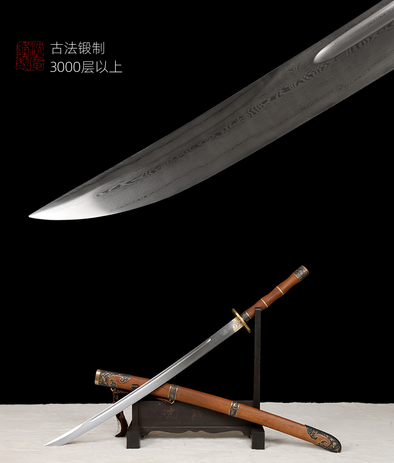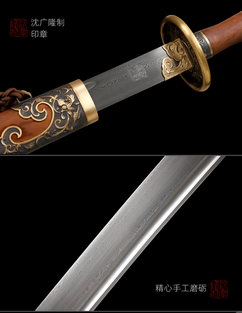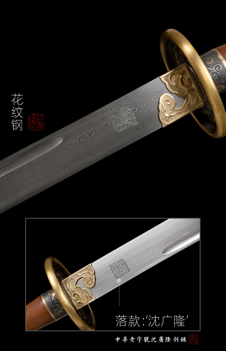 宏志明刀剑 龙泉传统刀剑 沈广隆宝剑 手工刀剑 花纹钢 未开刃