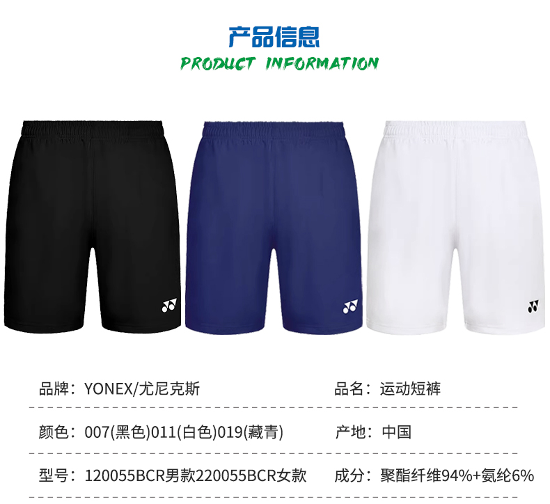 2026年新款YONEX尤尼克斯羽毛球服舒适透气比赛服120055BCR 220055BCR男女款短裤