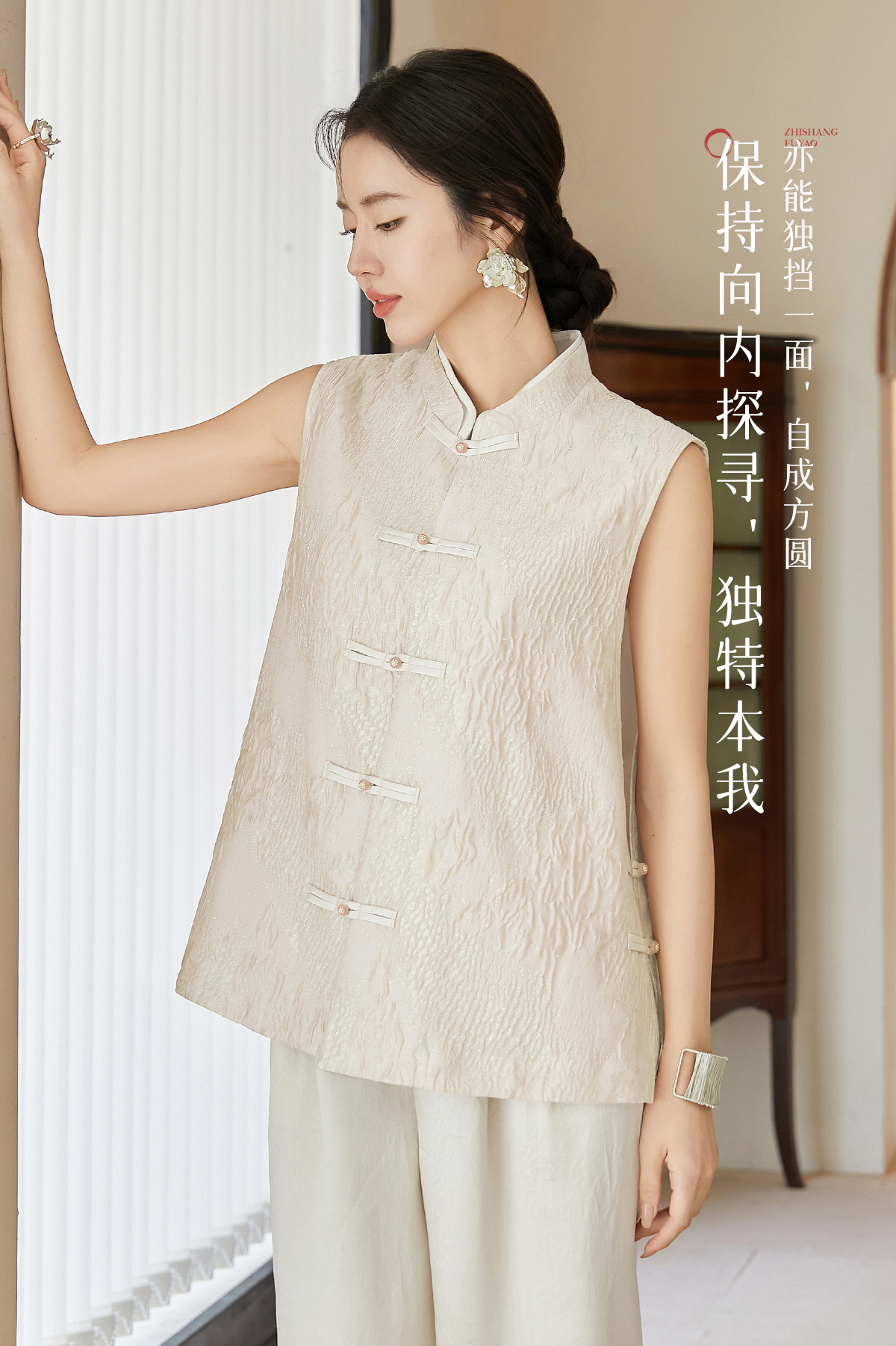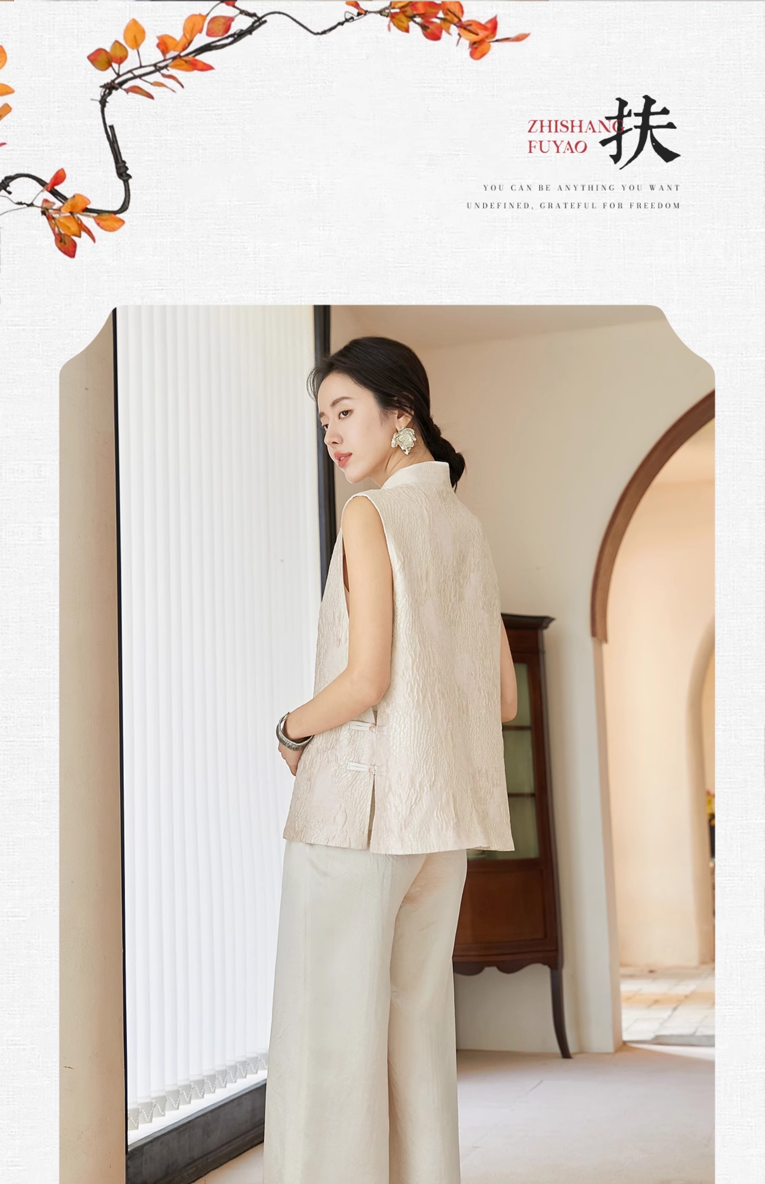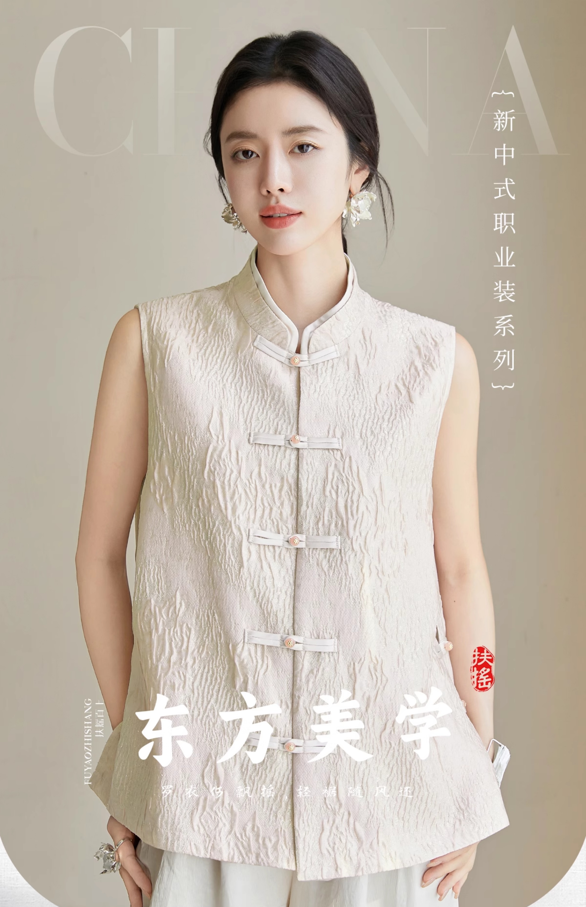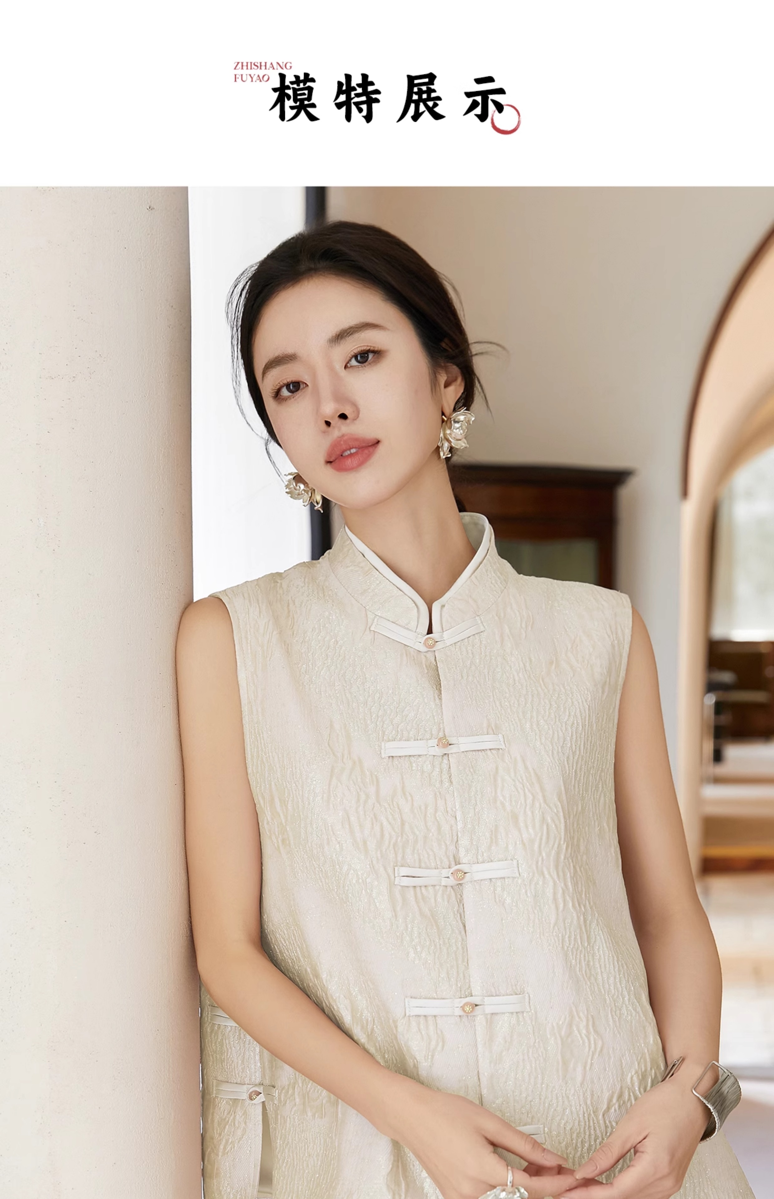 FUYAO扶摇 复古盘扣马甲女重工提花气质上衣新中式国风对襟开衫夏