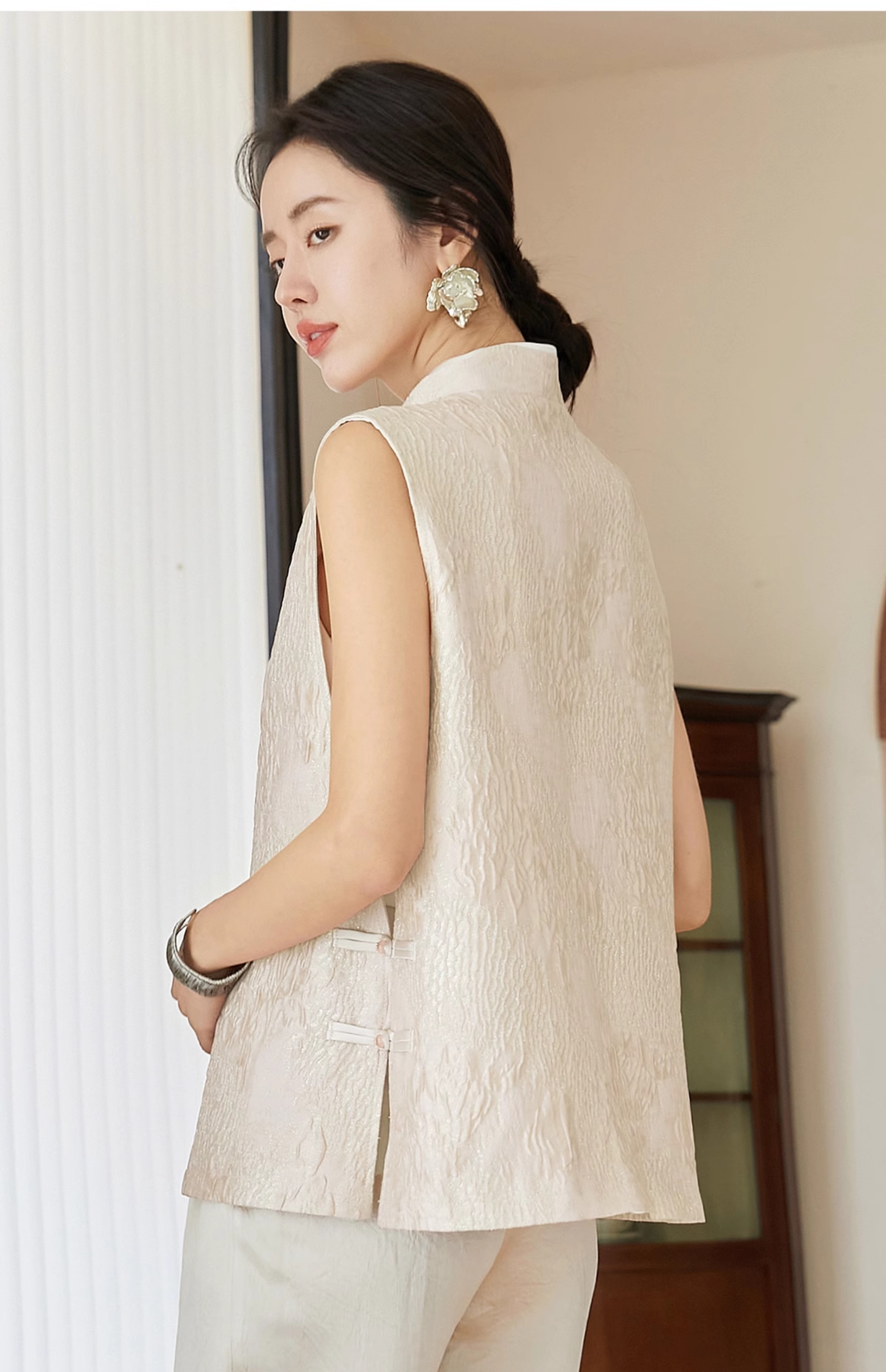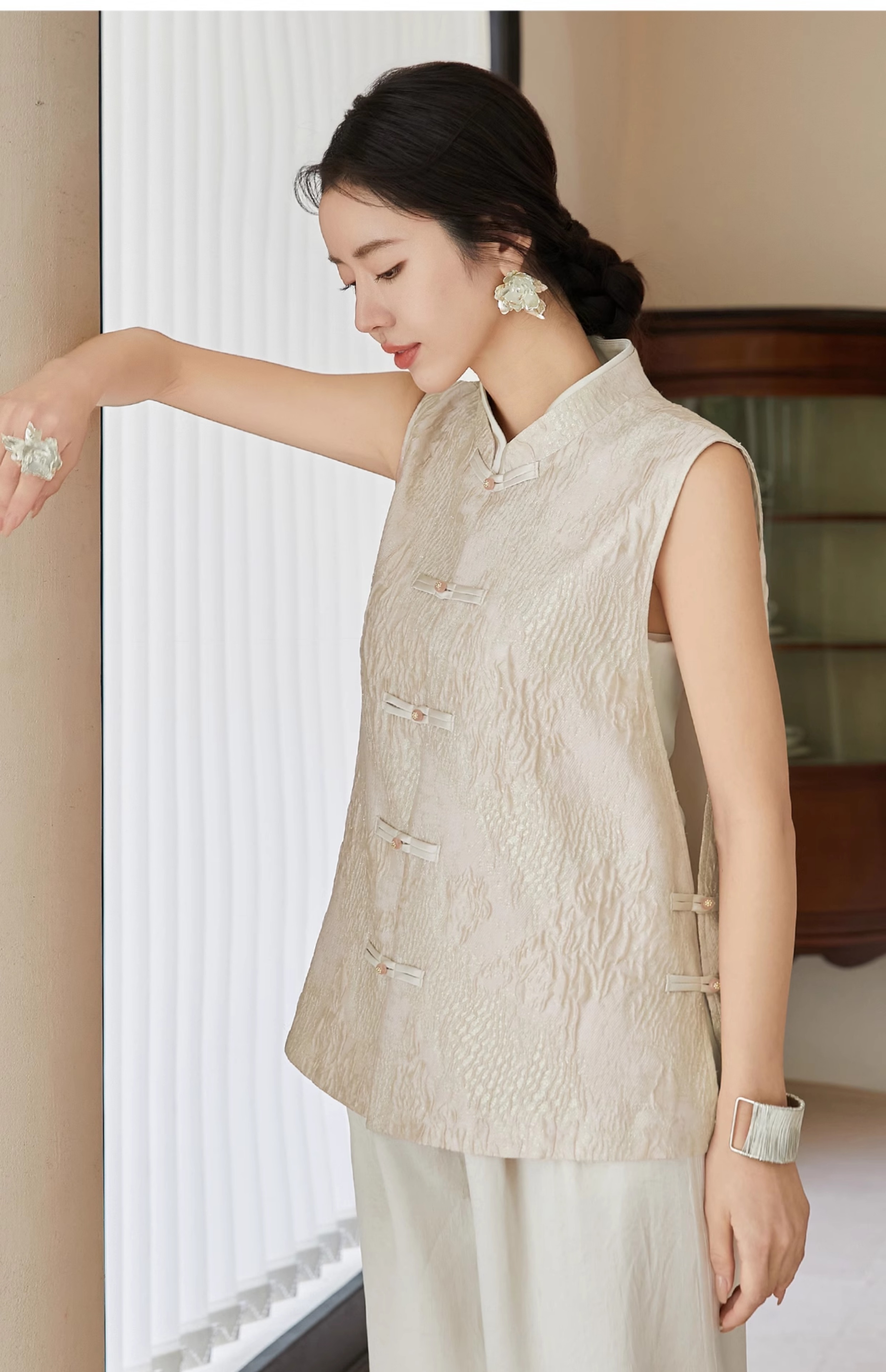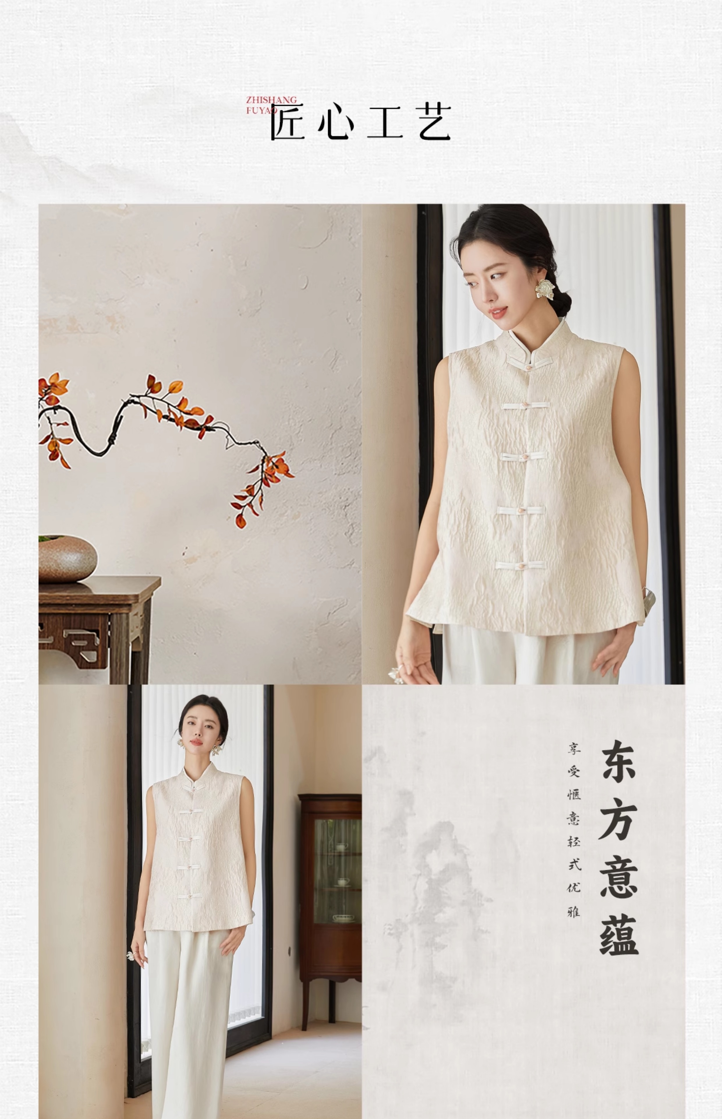 FUYAO扶摇 复古盘扣马甲女重工提花气质上衣新中式国风对襟开衫夏
