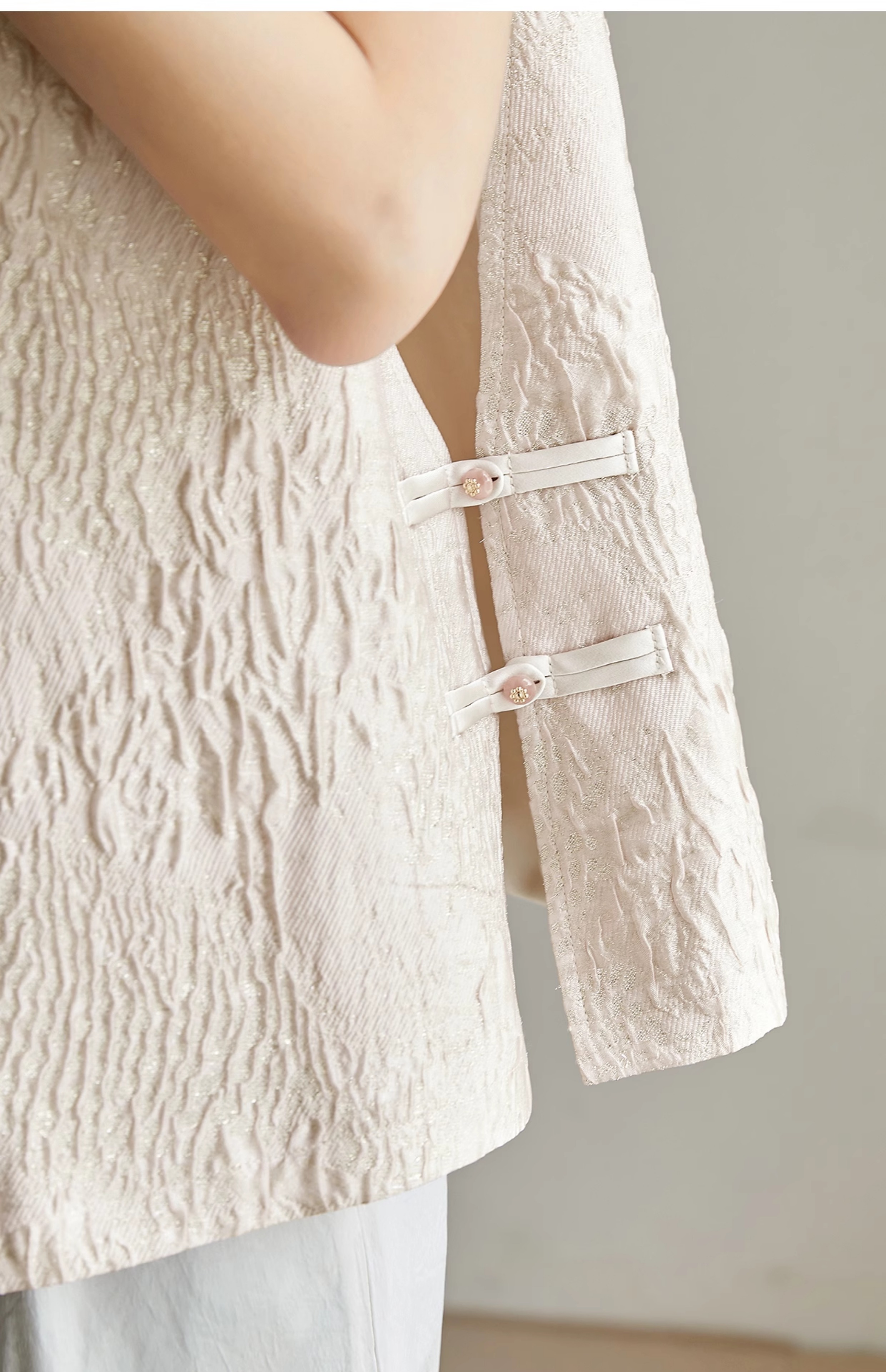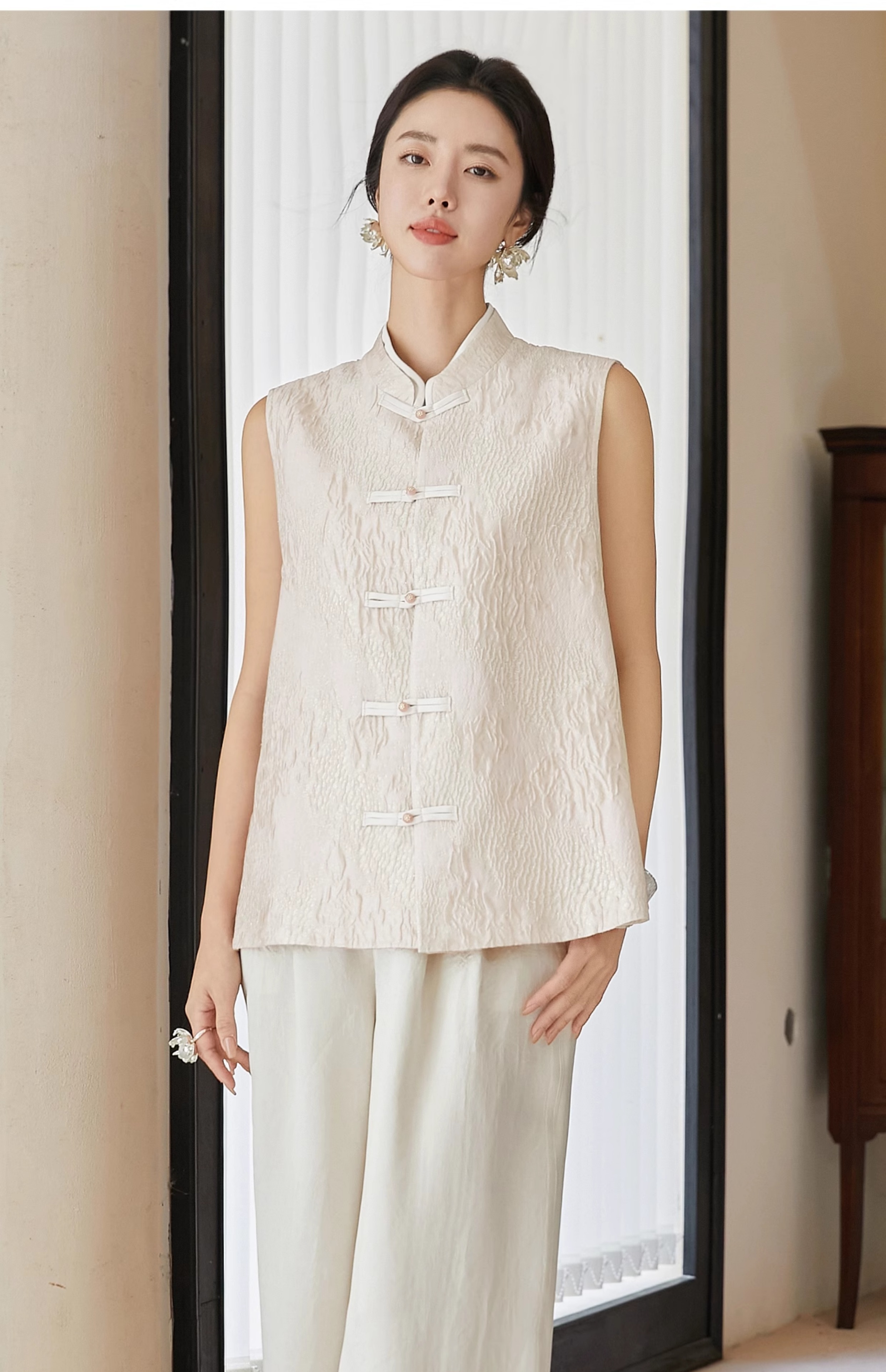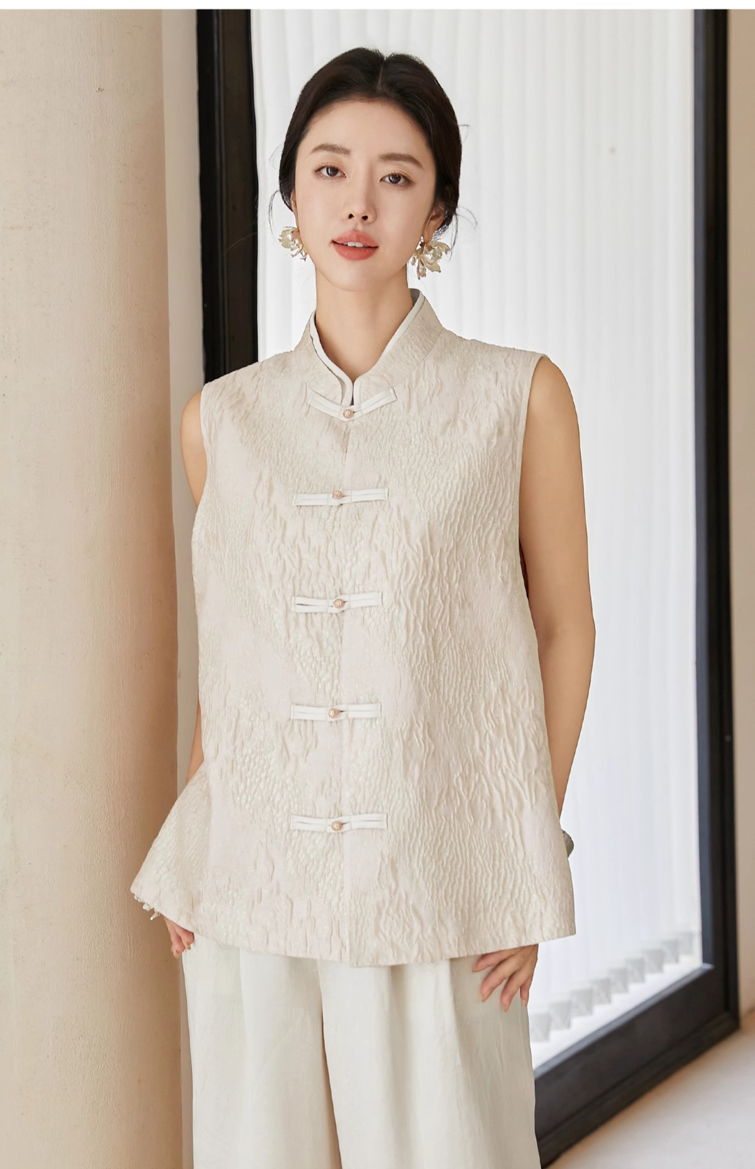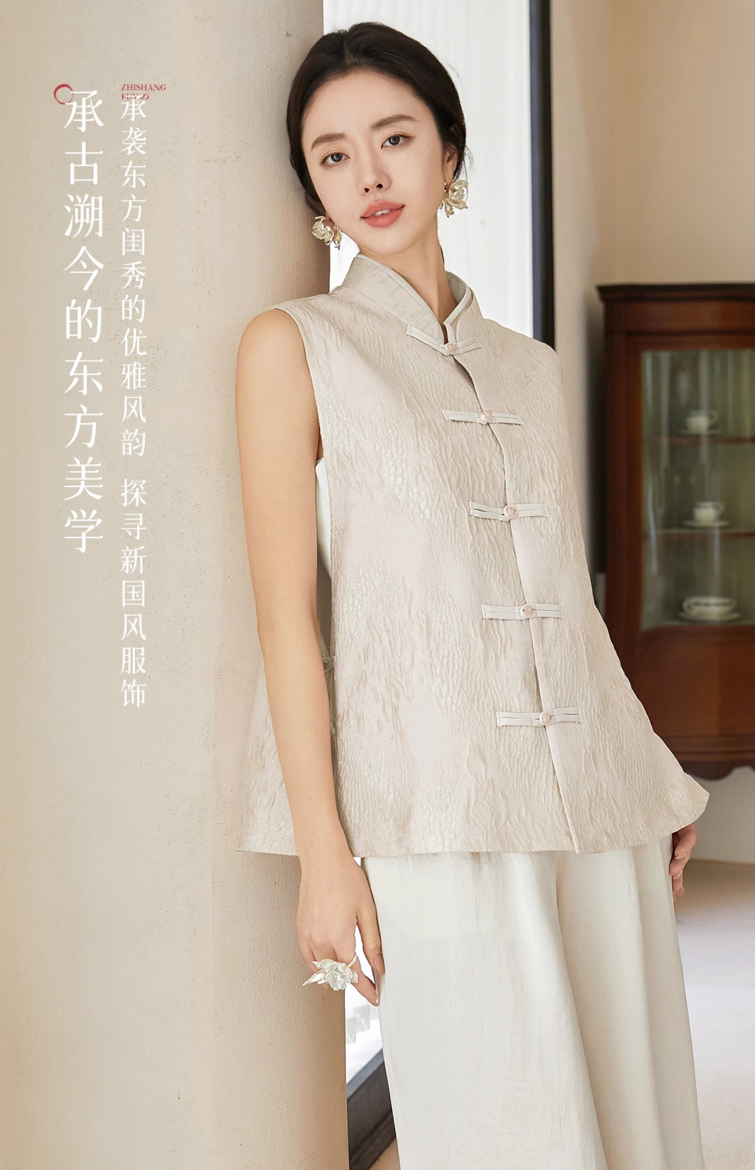 FUYAO扶摇 复古盘扣马甲女重工提花气质上衣新中式国风对襟开衫夏