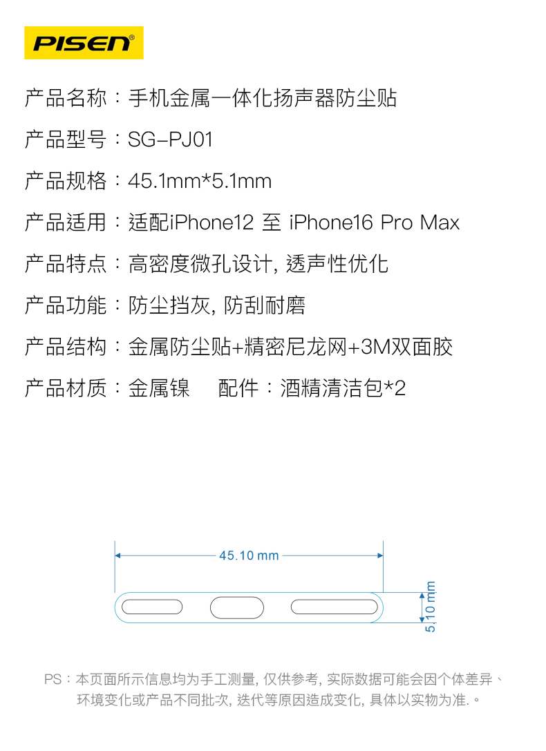 品胜 手机金属一体化扬声器防尘贴I系列/防尘网/金属喇叭/防灰尘手机塞