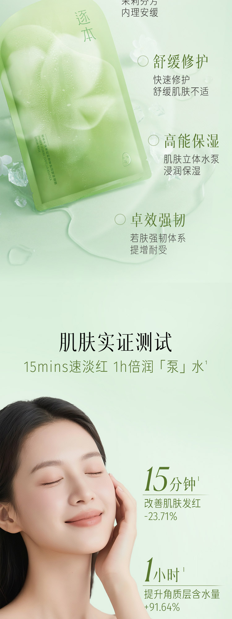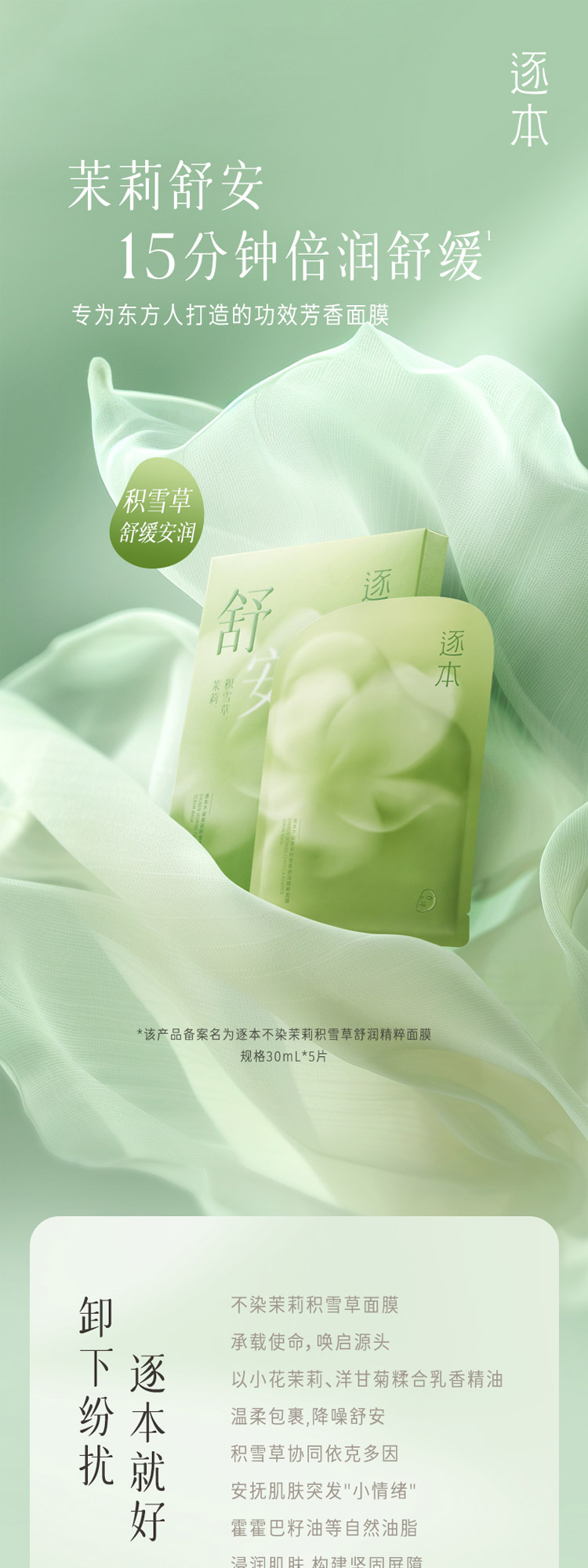 逐本不染茉莉积雪草舒润精粹面膜(5片/盒)