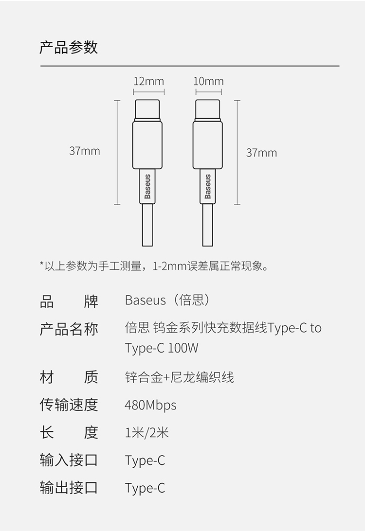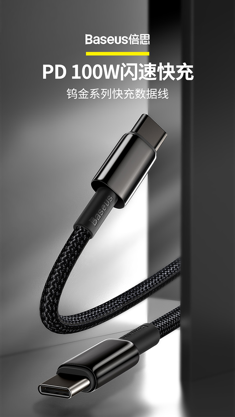 倍思 钨金系列快充数据线Type-C to Type-C 100W