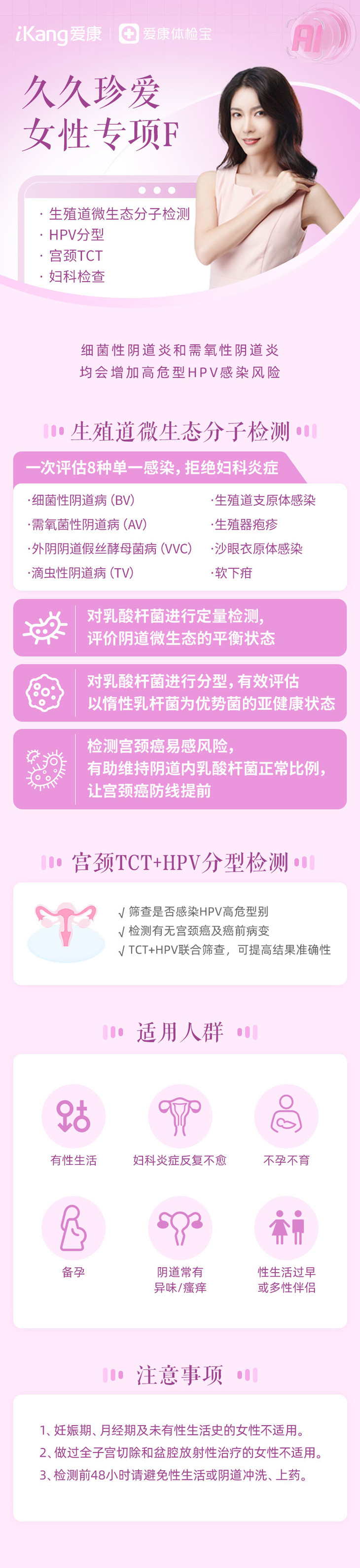【含生殖道微生态+HPV分型+宫颈TCT】爱康 久久珍爱女性专项F
